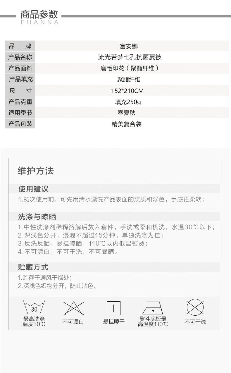 商品名称:富安娜 流光若梦七孔印花夏被 152*210cm