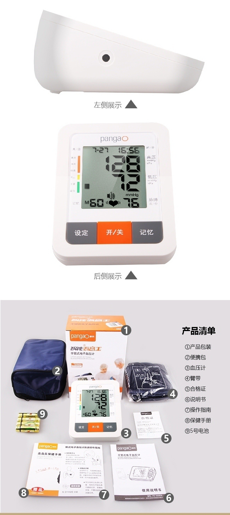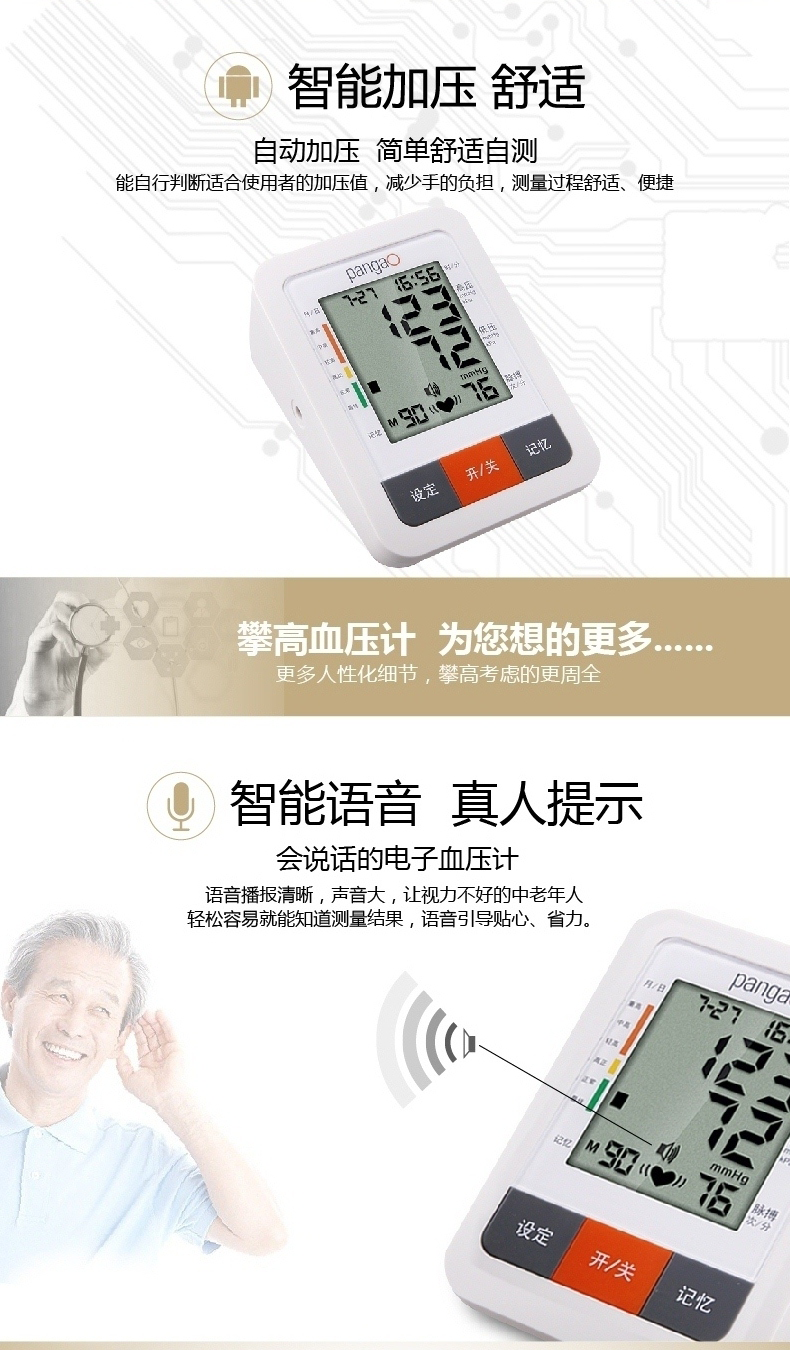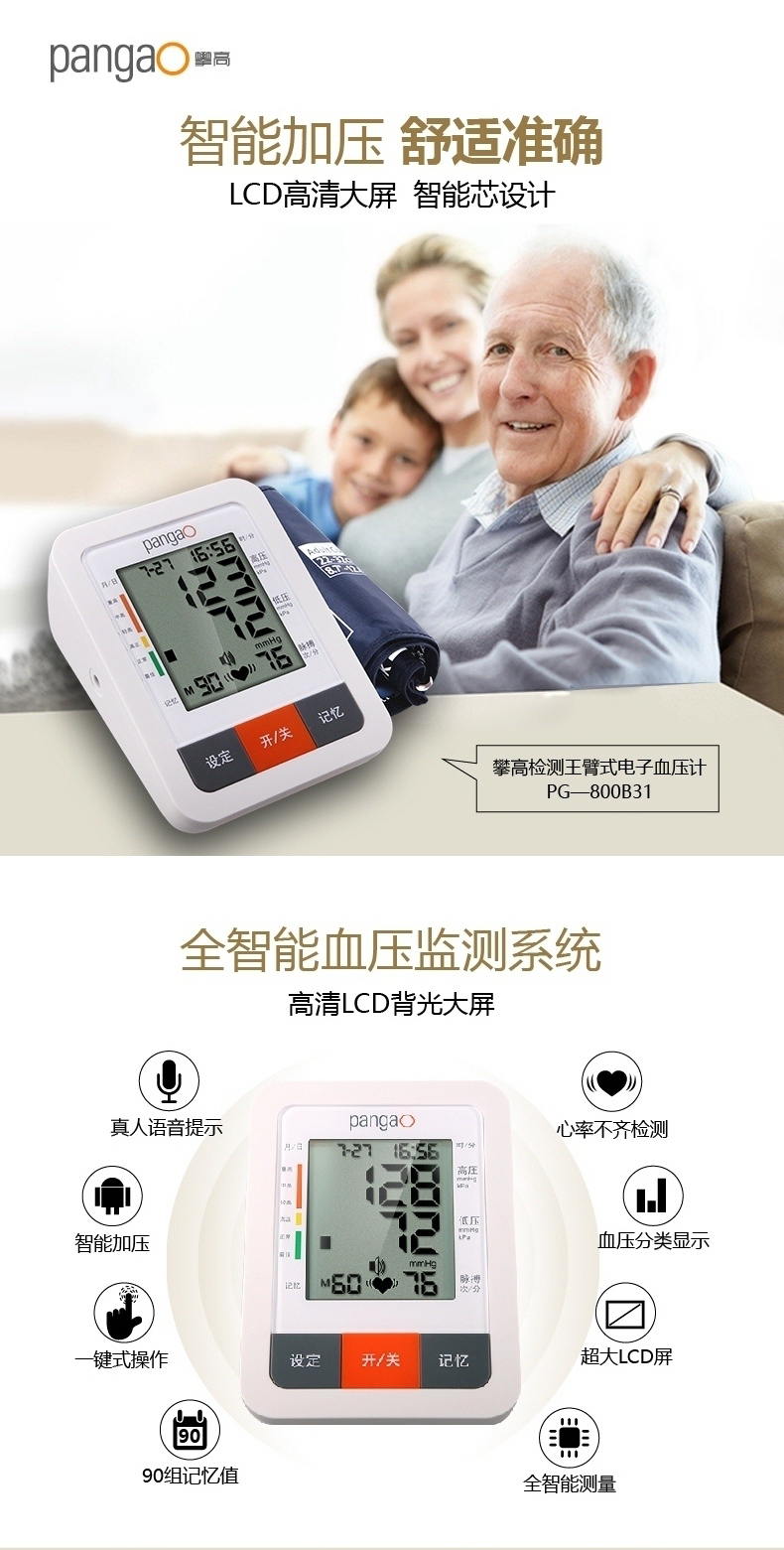 商品名称:攀高(PANGAO)血压计家用智能 电子血压仪 PG-800B31