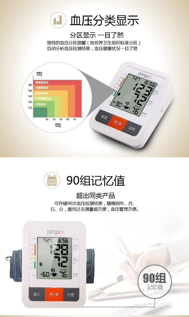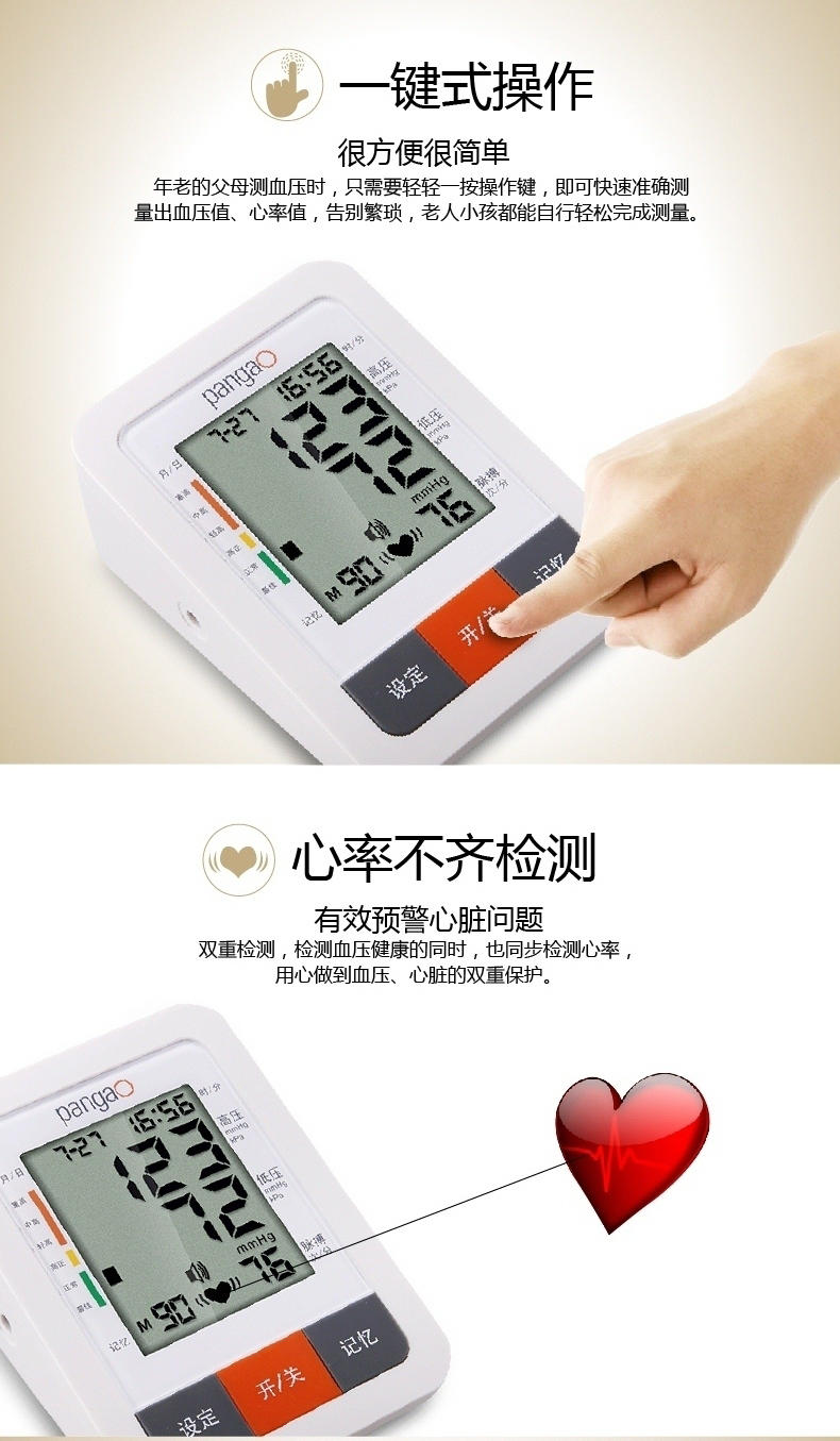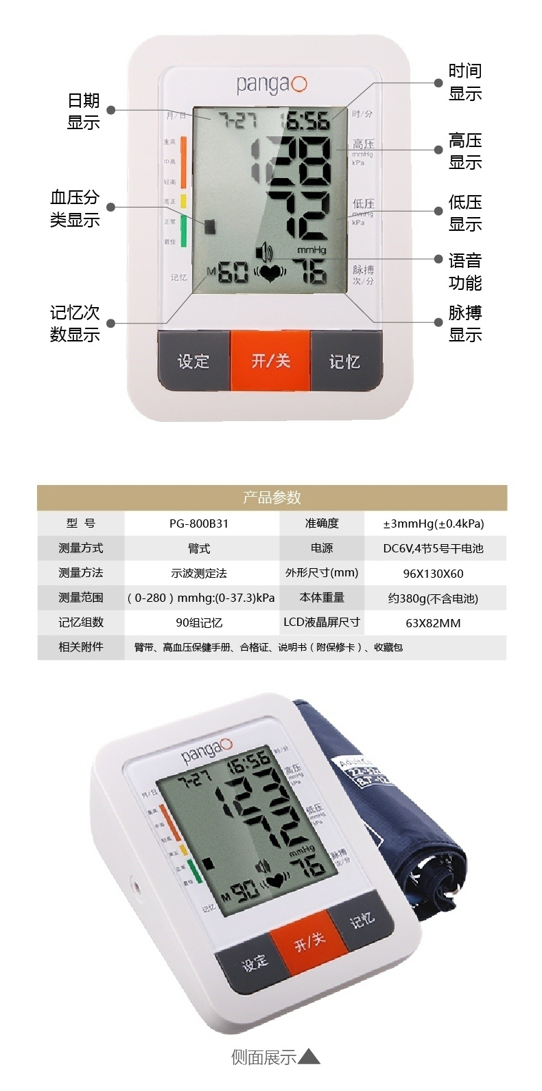 商品名称:攀高(PANGAO)血压计家用智能 电子血压仪 PG-800B31