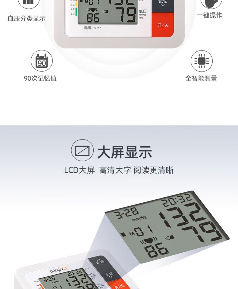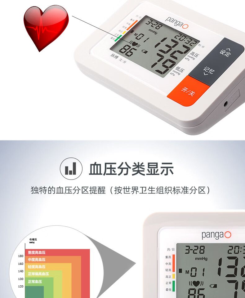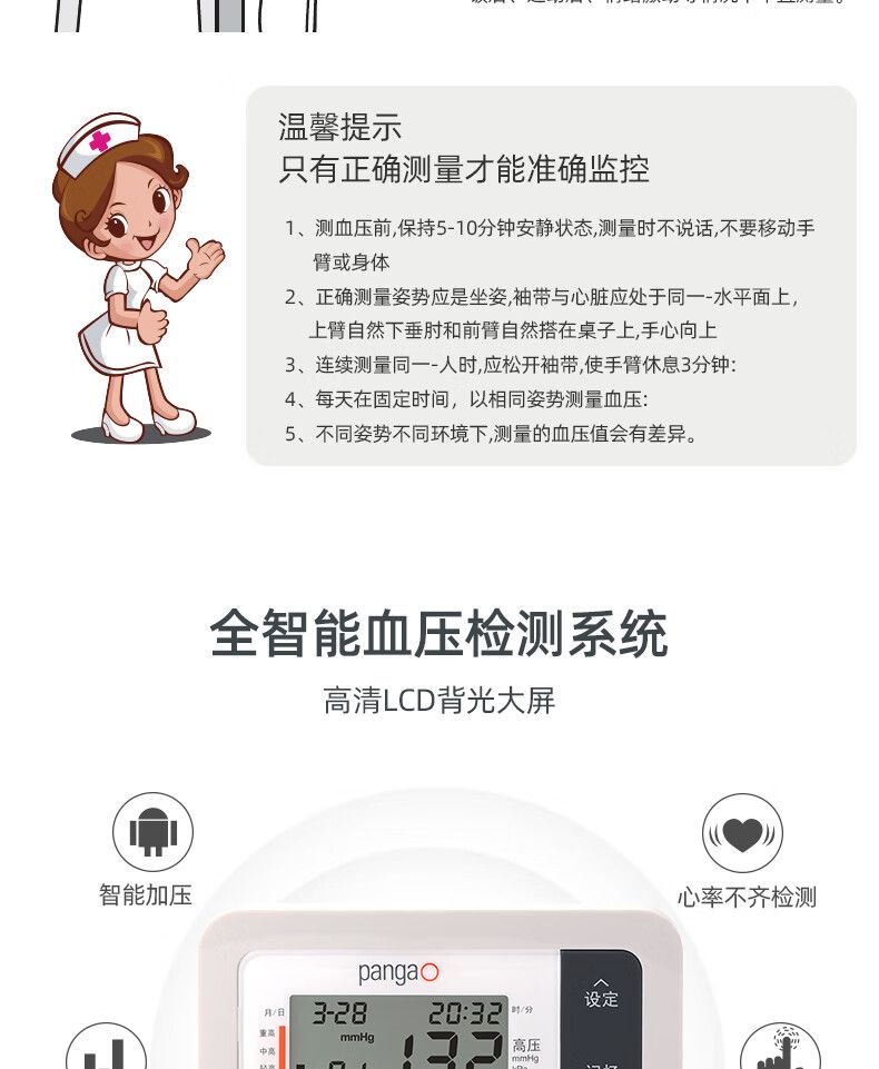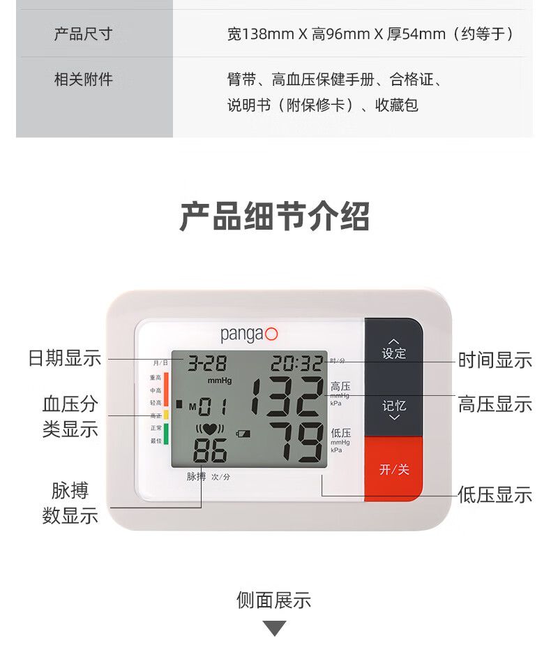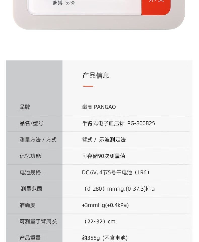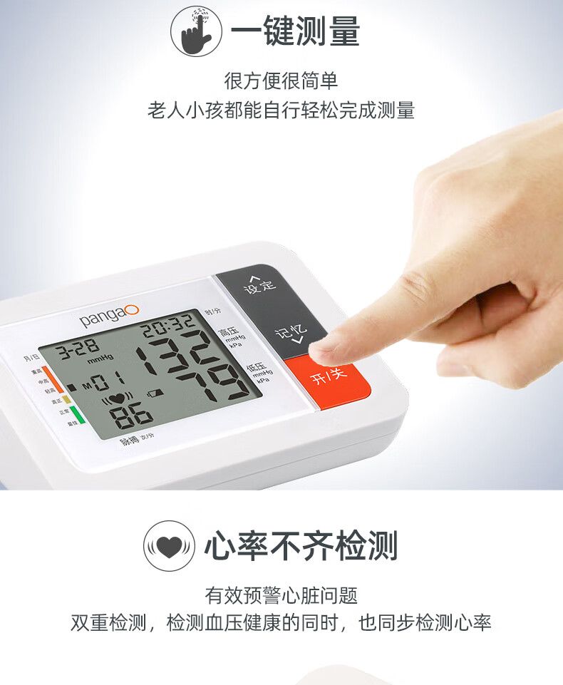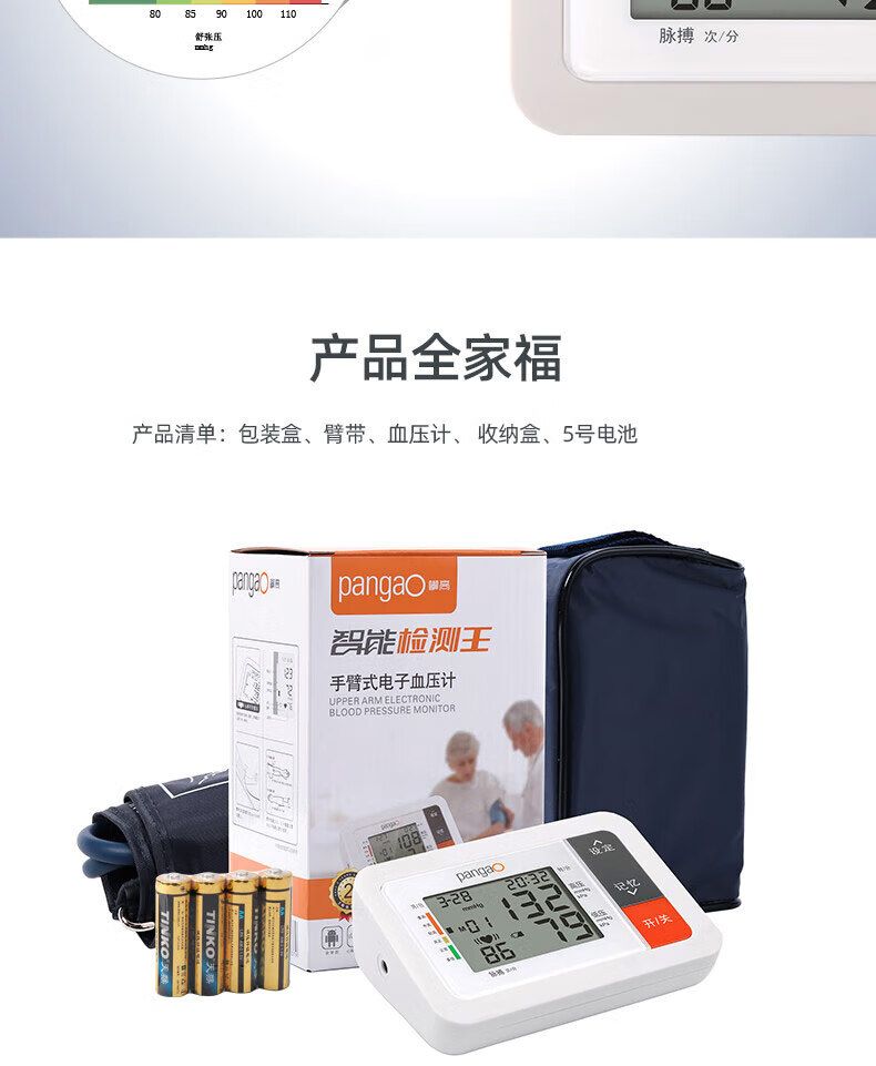 商品名称:攀高(PANGAO)电子血压计上臂式血压仪家用测血压仪器送老人礼物 PG-800B25