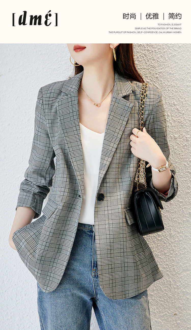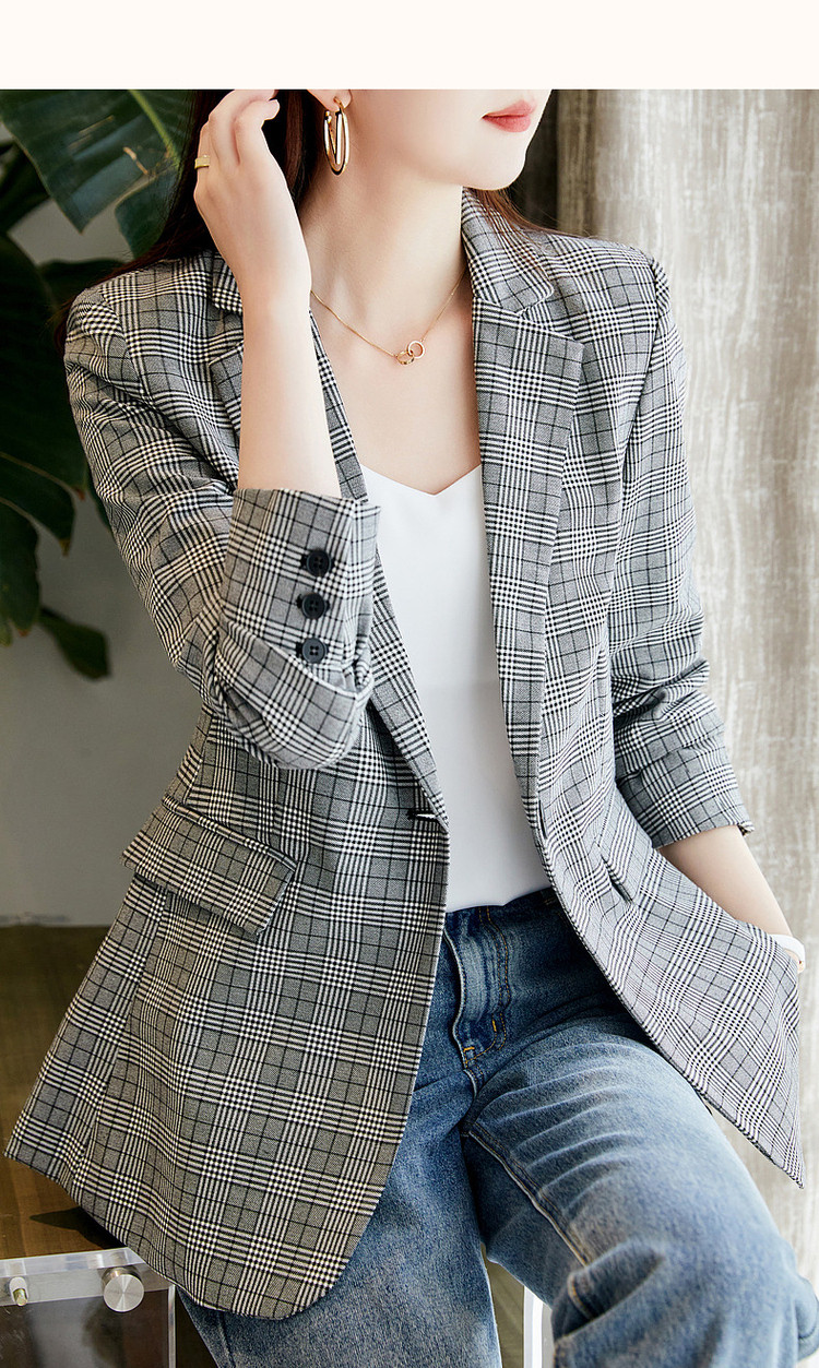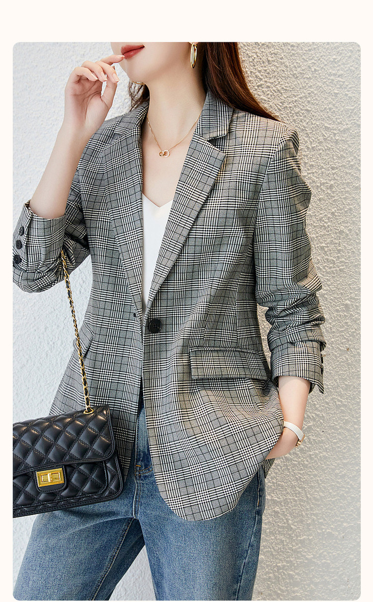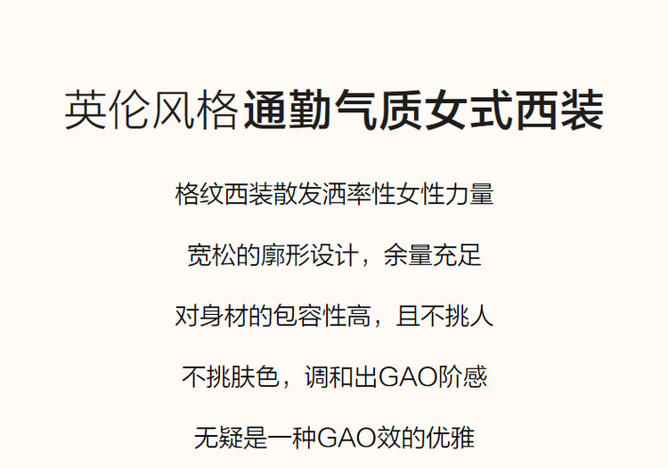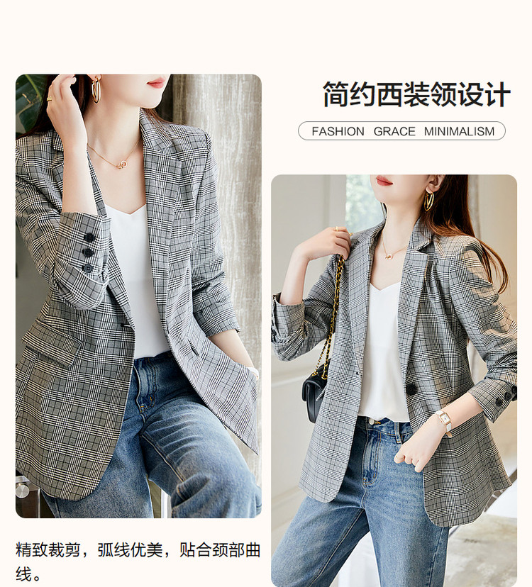 商品名称:【英伦风格纹西装】春秋通勤西装领西服外套女中长款 286721