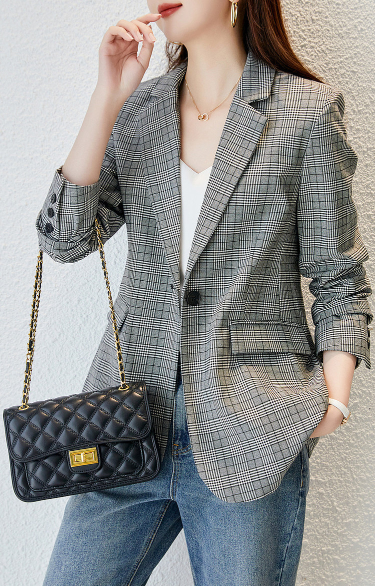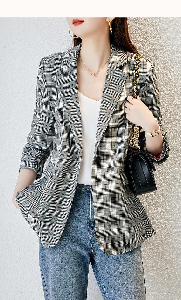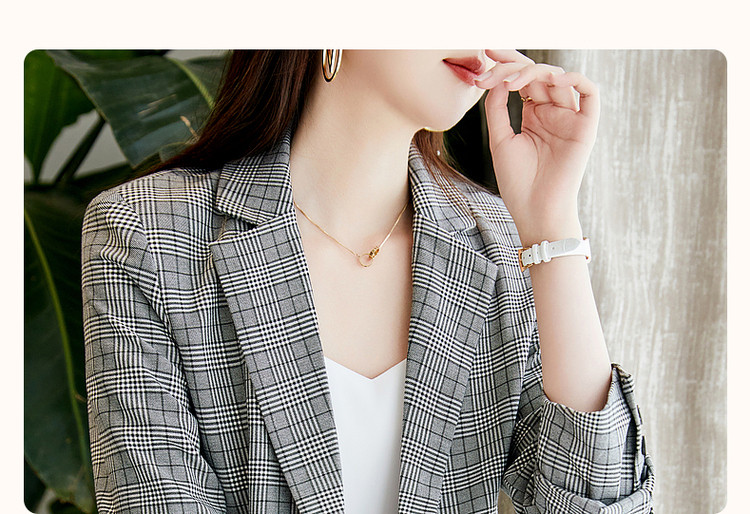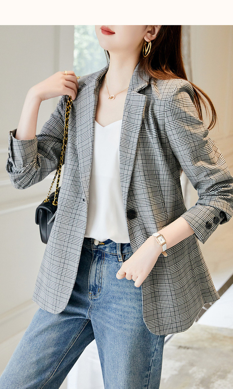 商品名称:【英伦风格纹西装】春秋通勤西装领西服外套女中长款 286721