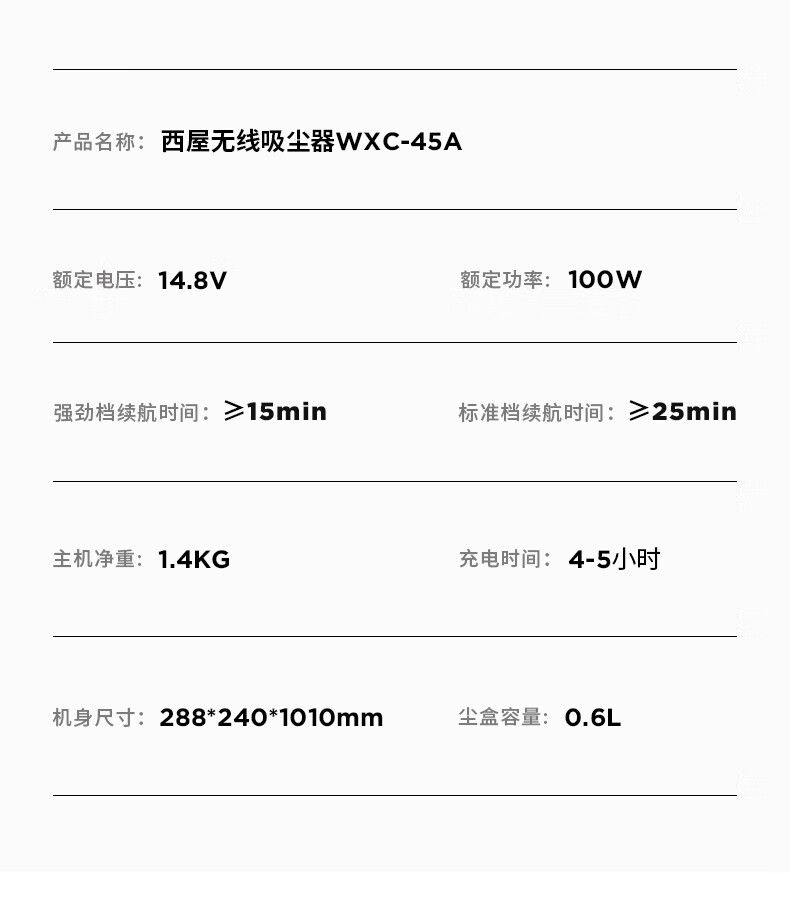 商品名称:西屋无线吸尘器WXC-45A