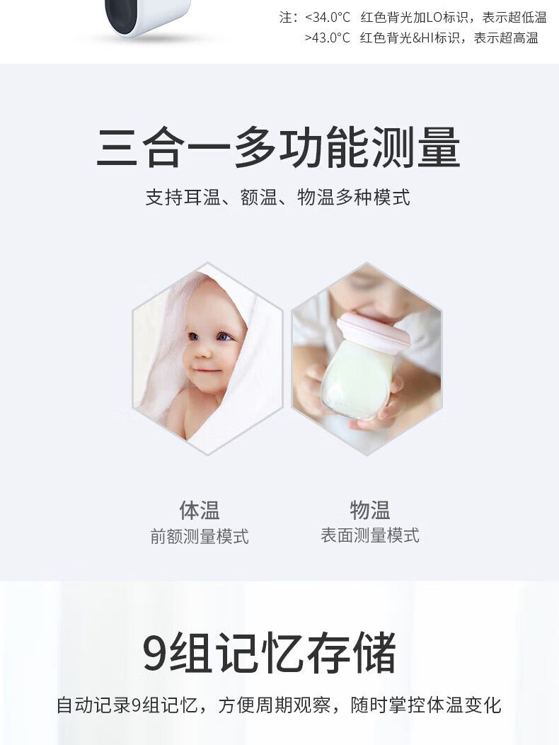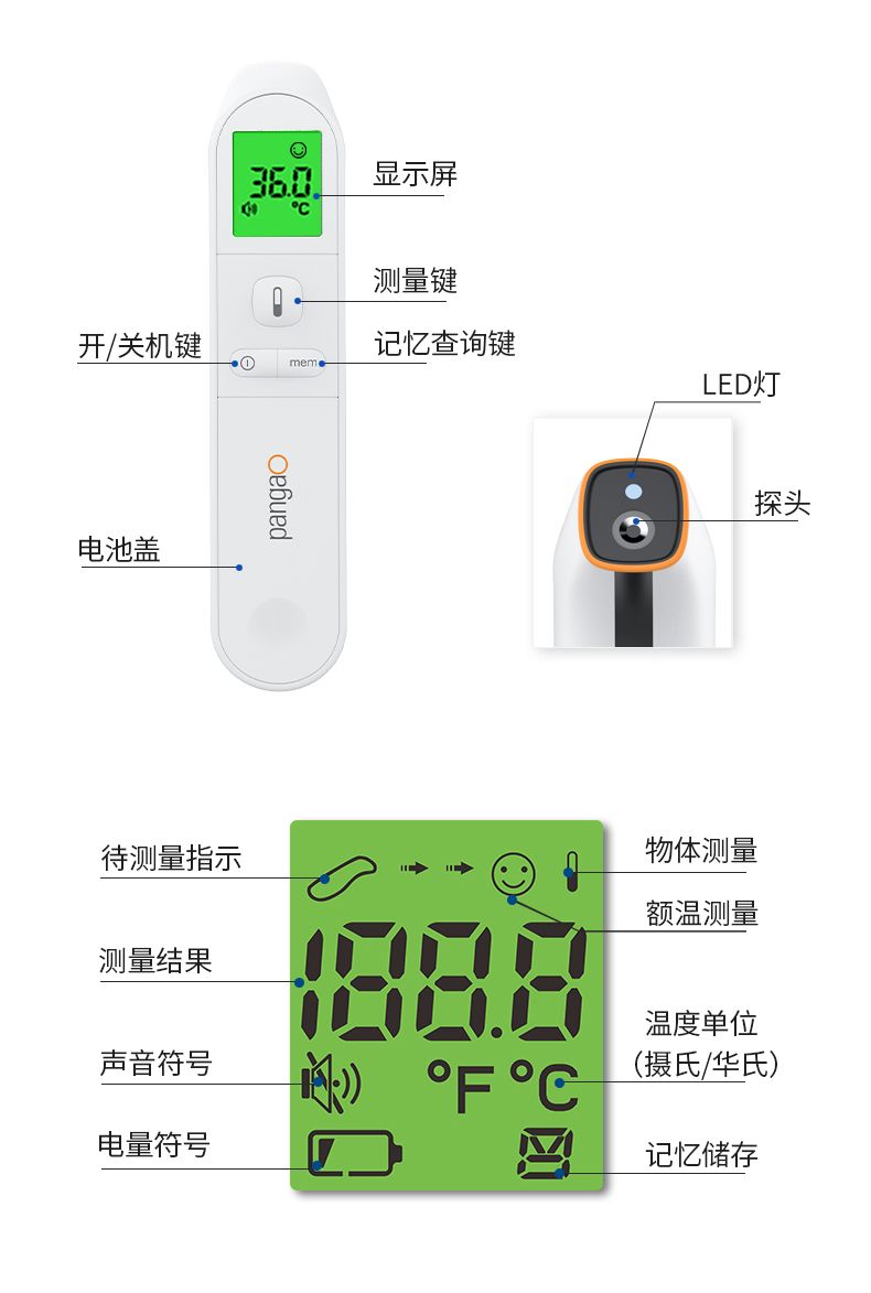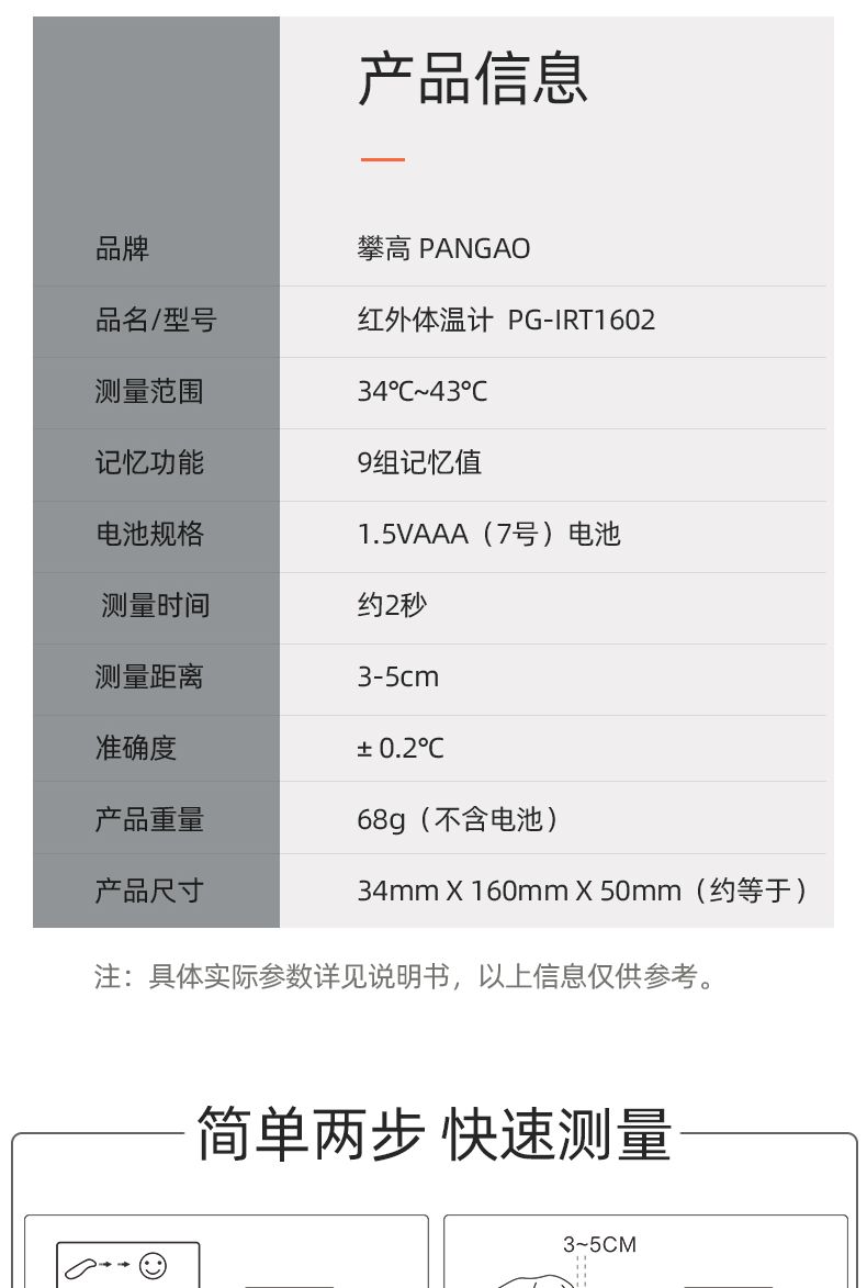 商品名称:攀高(PANGAO) 红外线电子体温计 PG-IRT1602 儿童婴儿成人家用温度计三色背光额温枪测温仪