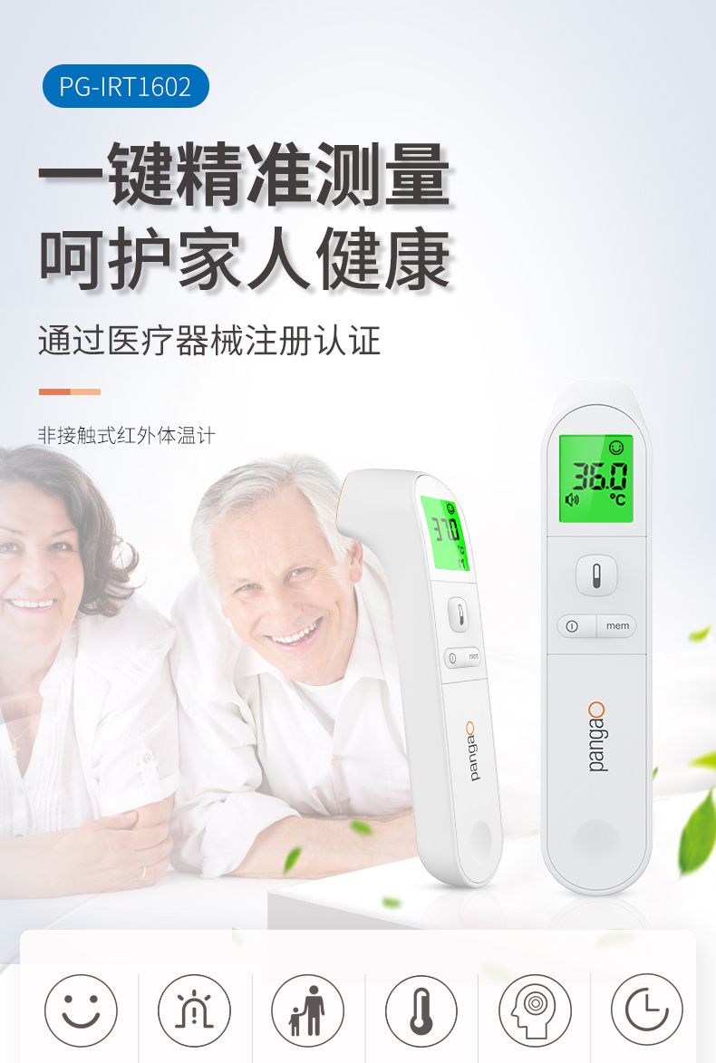 攀高(PANGAO) 红外线电子体温计 PG-IRT1602 儿童婴儿成人家用温度计三色背光额温枪测温仪