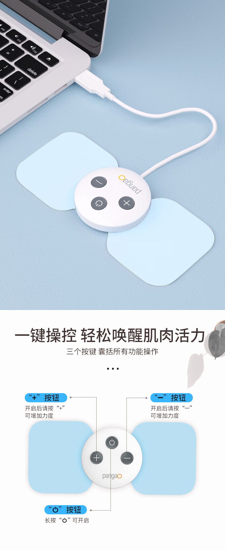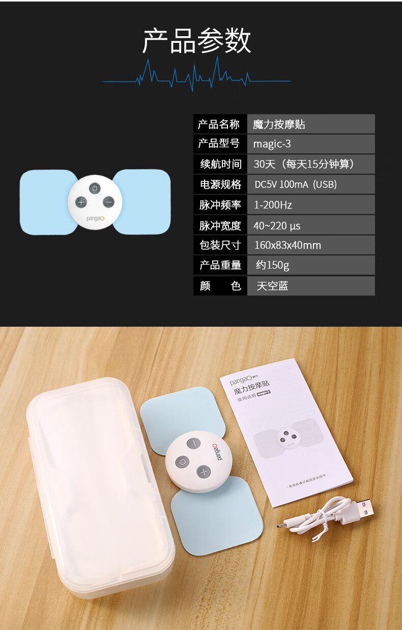 商品名称:攀高(PANGAO)魔力按摩贴蓝色低频脉冲5种手法16档强度magic-3