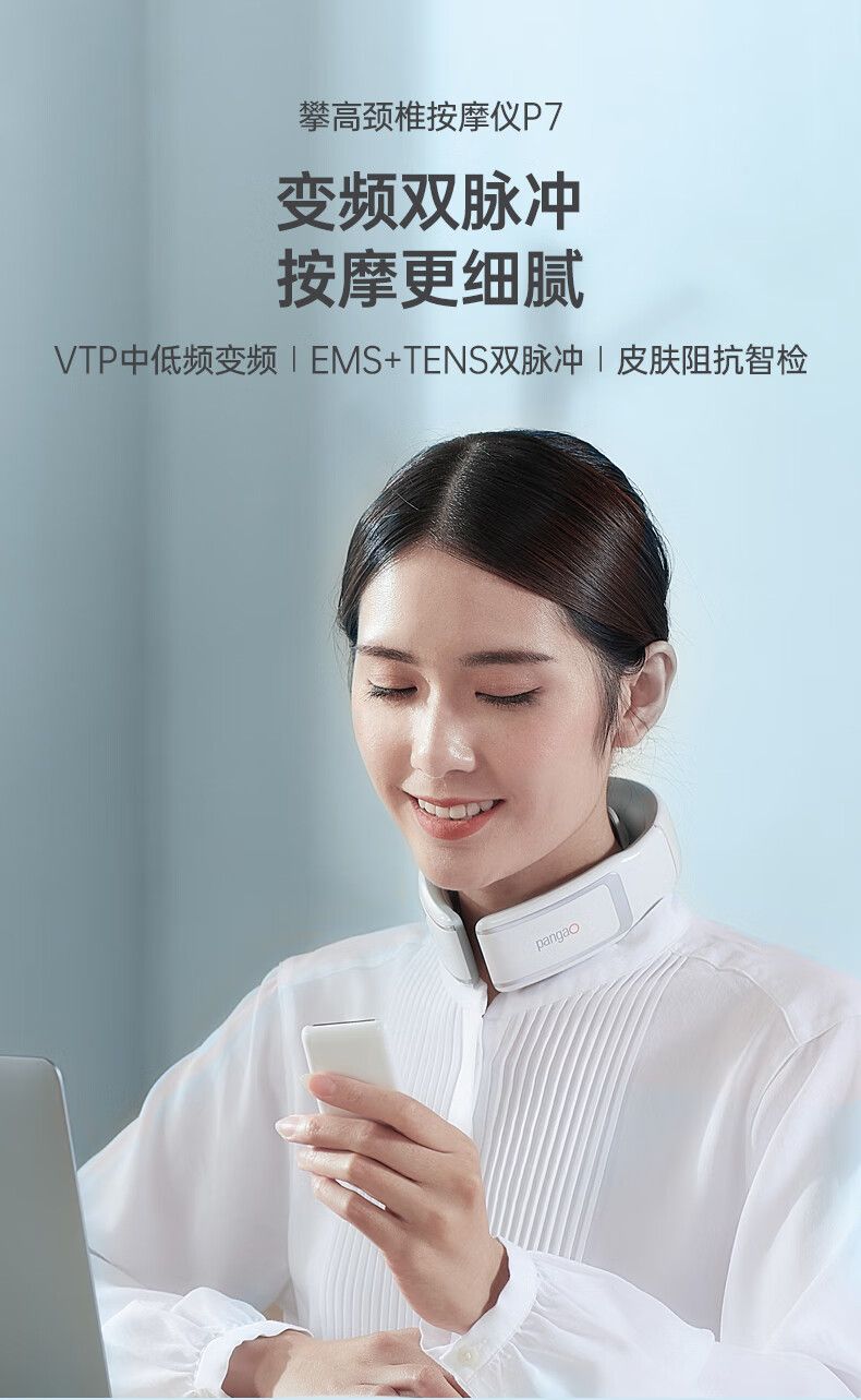 攀高(PANGAO)颈椎按摩器P7颈部按摩仪 肩颈热敷 中频脉冲 贝母白 520情人节礼物 生日礼物 实用暖心健康礼