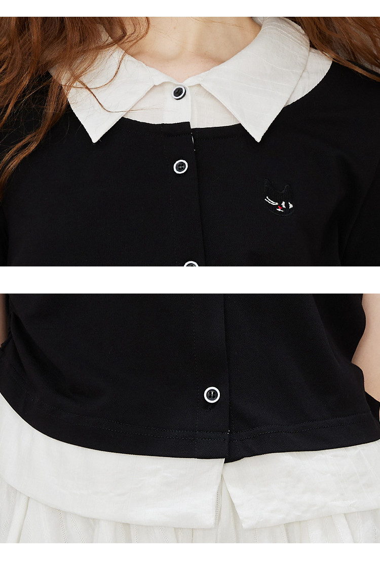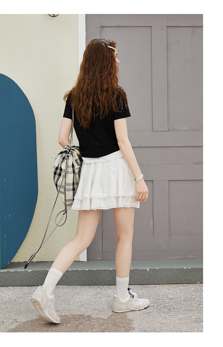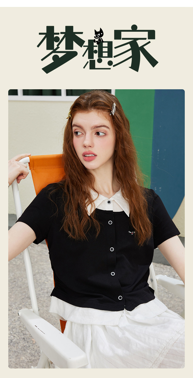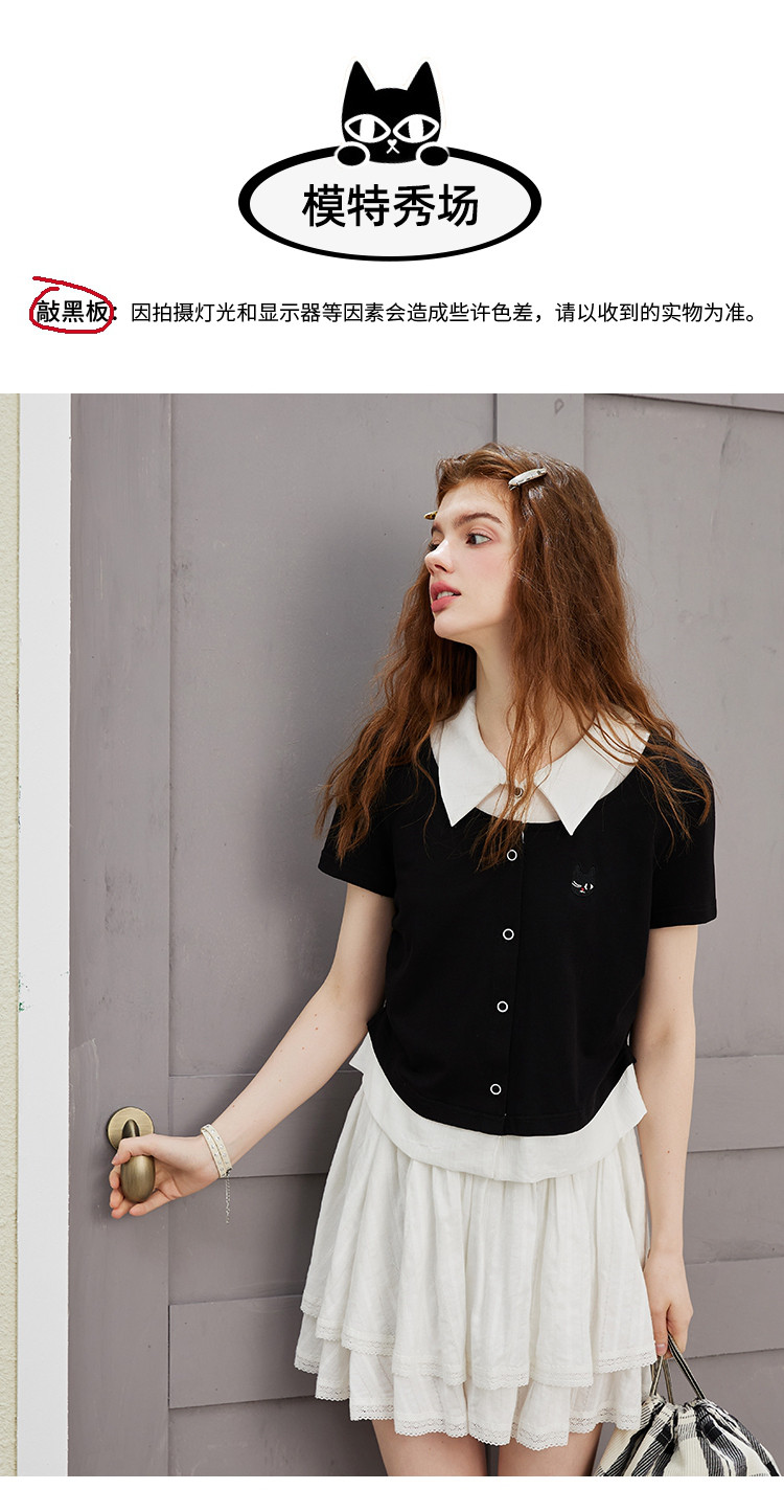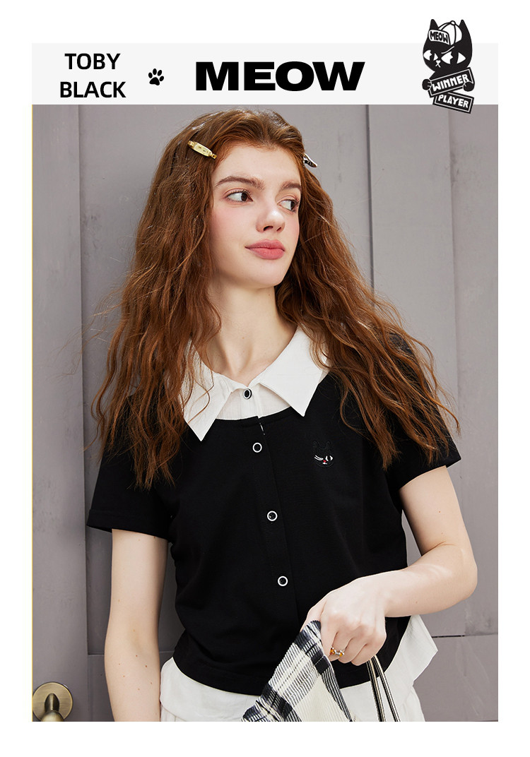 商品名称:撞色假两件设计感休闲女式T恤夏季减龄收腰百搭短袖上衣 372061