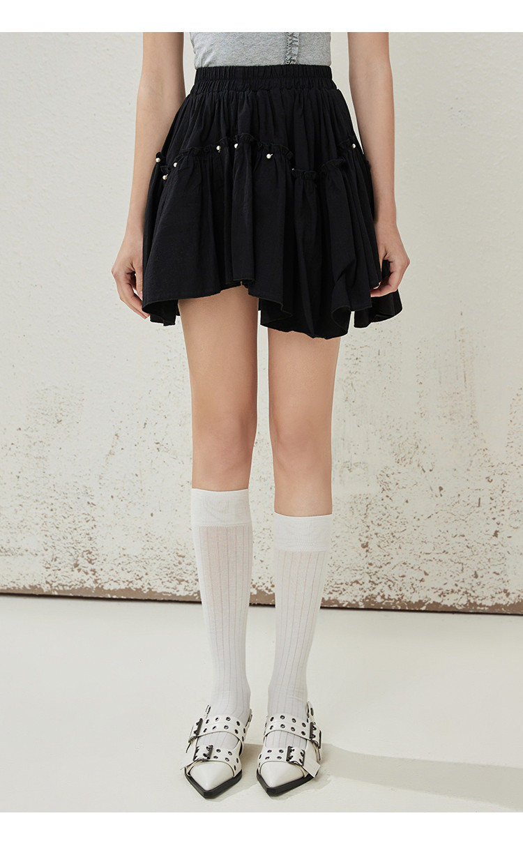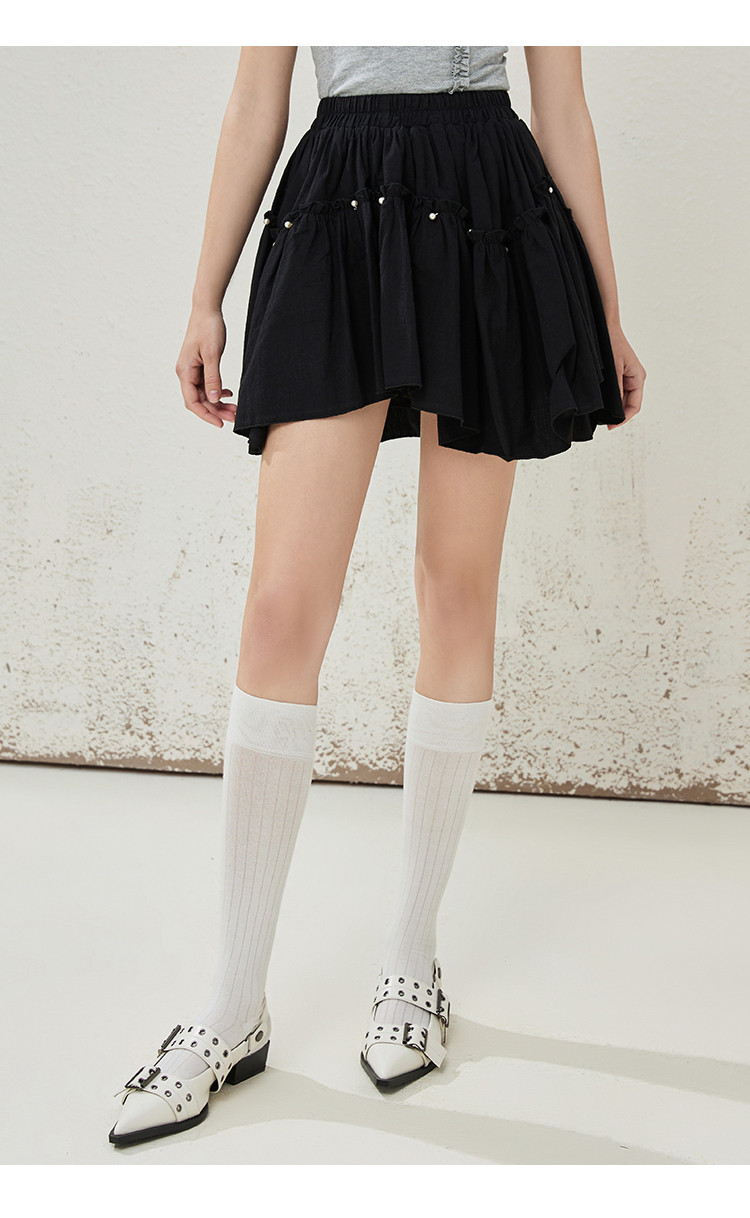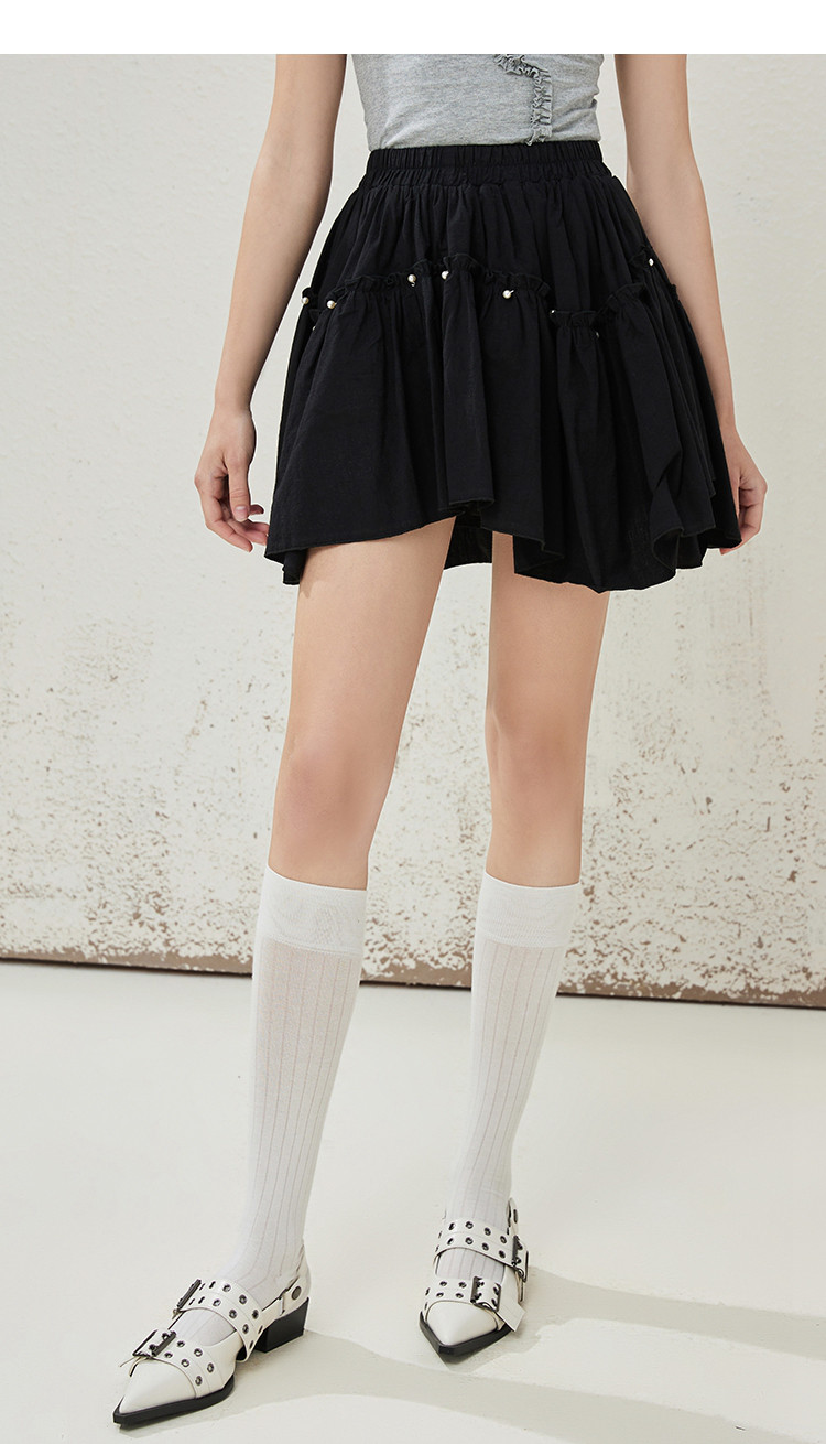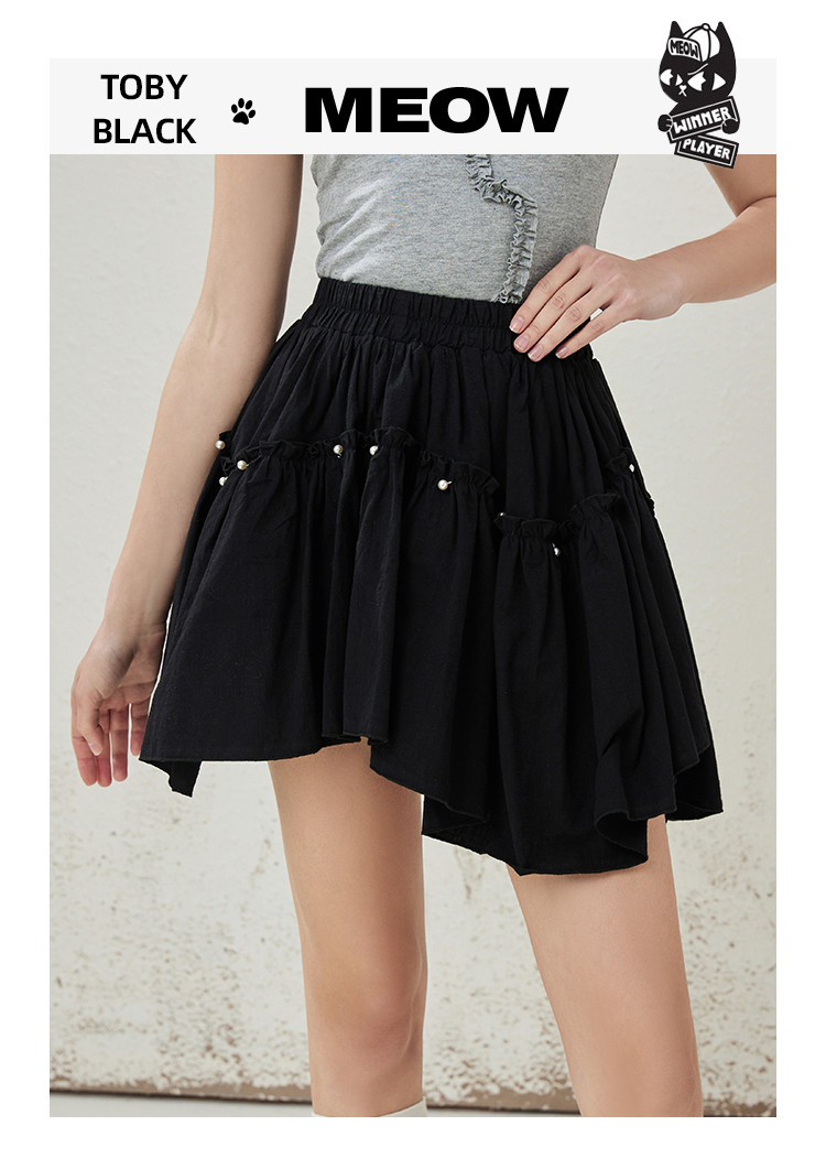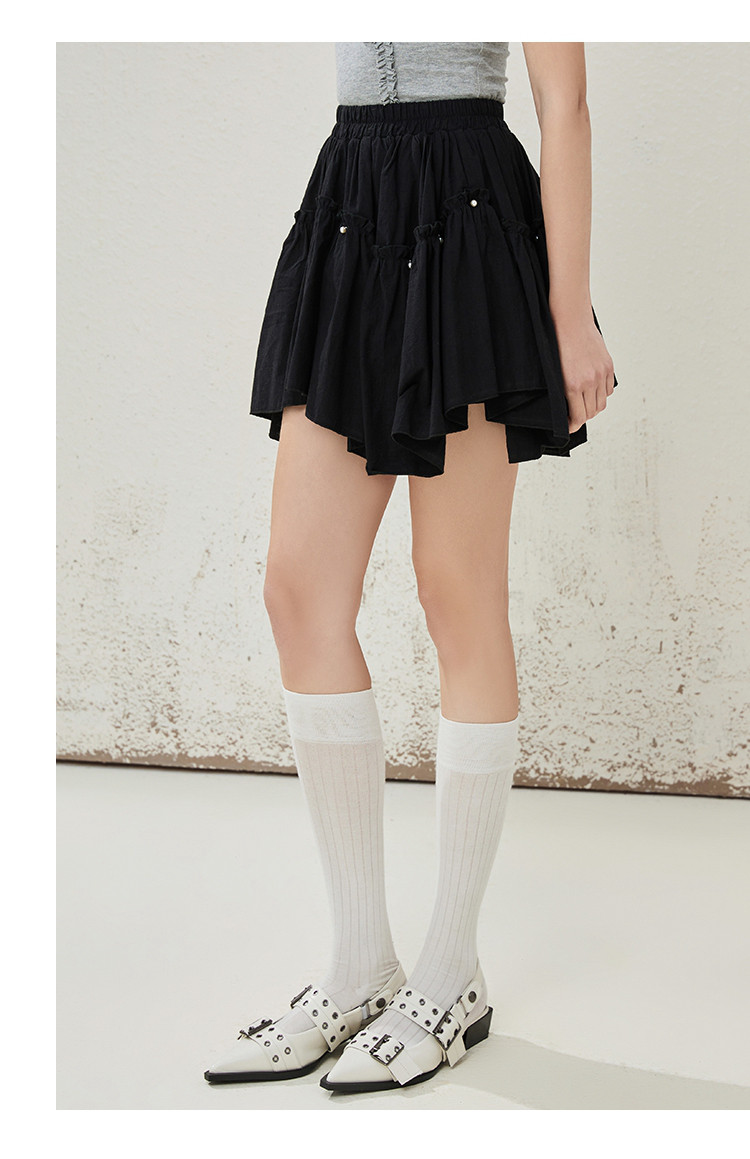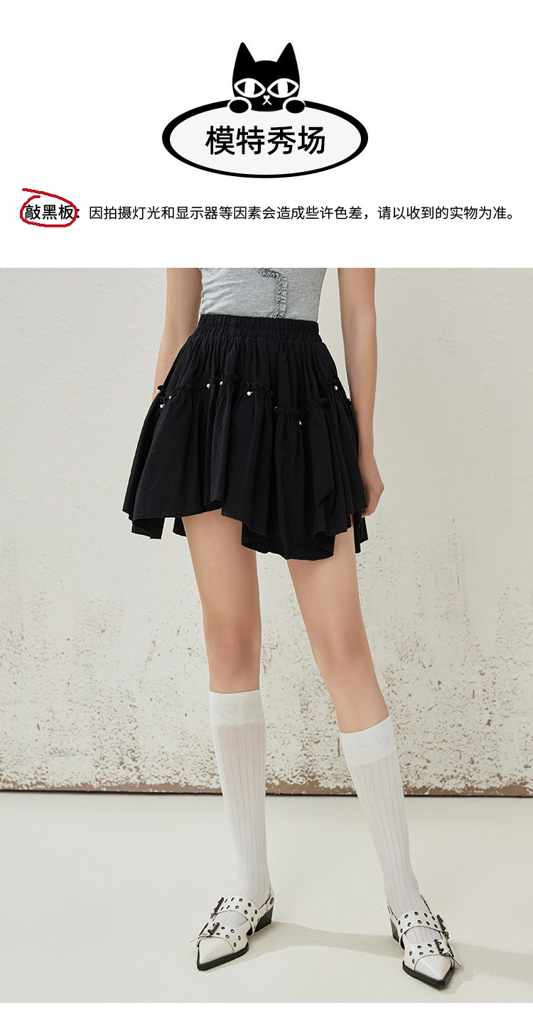 商品名称:个性钉珠设计感防走光不规则棉感半身裙夏季休闲半截裙 145245