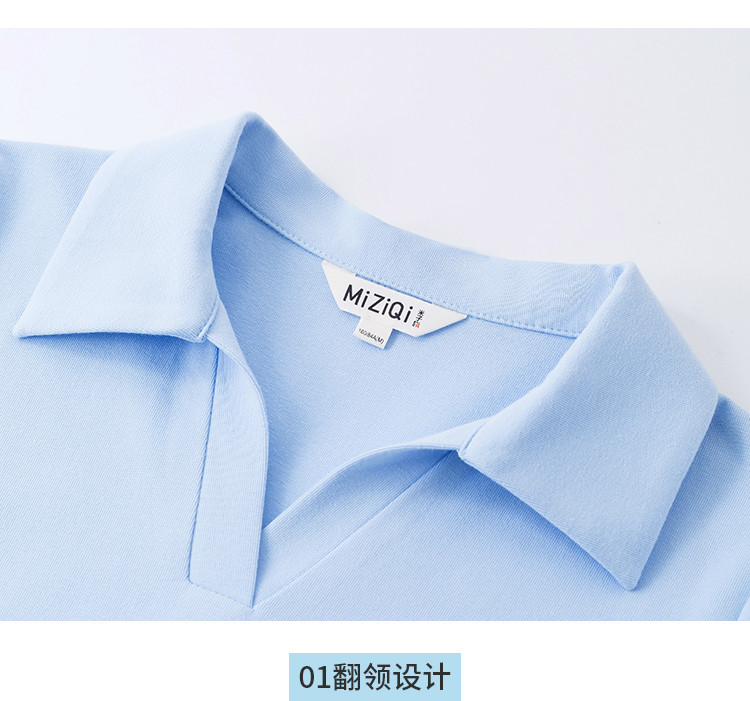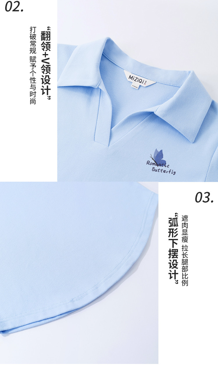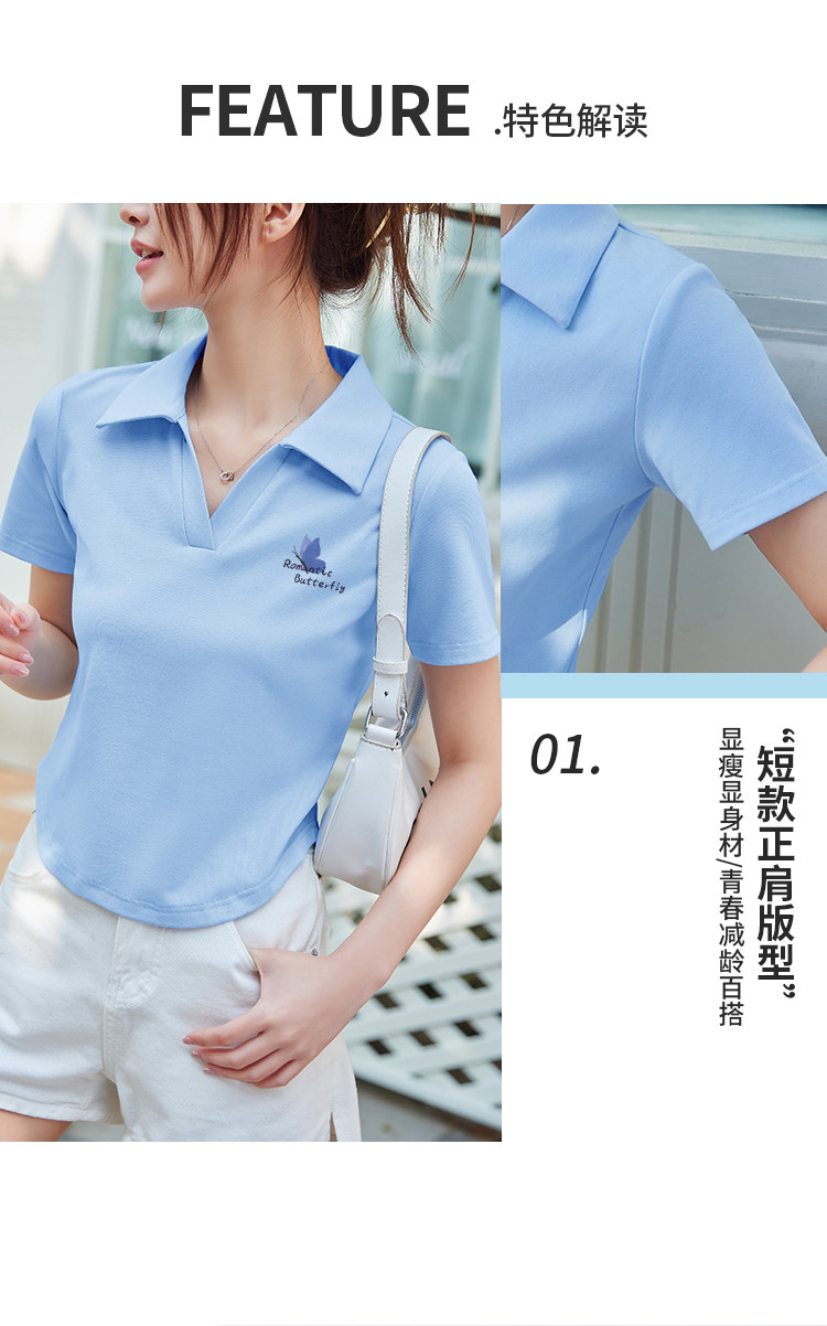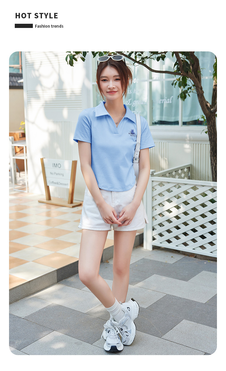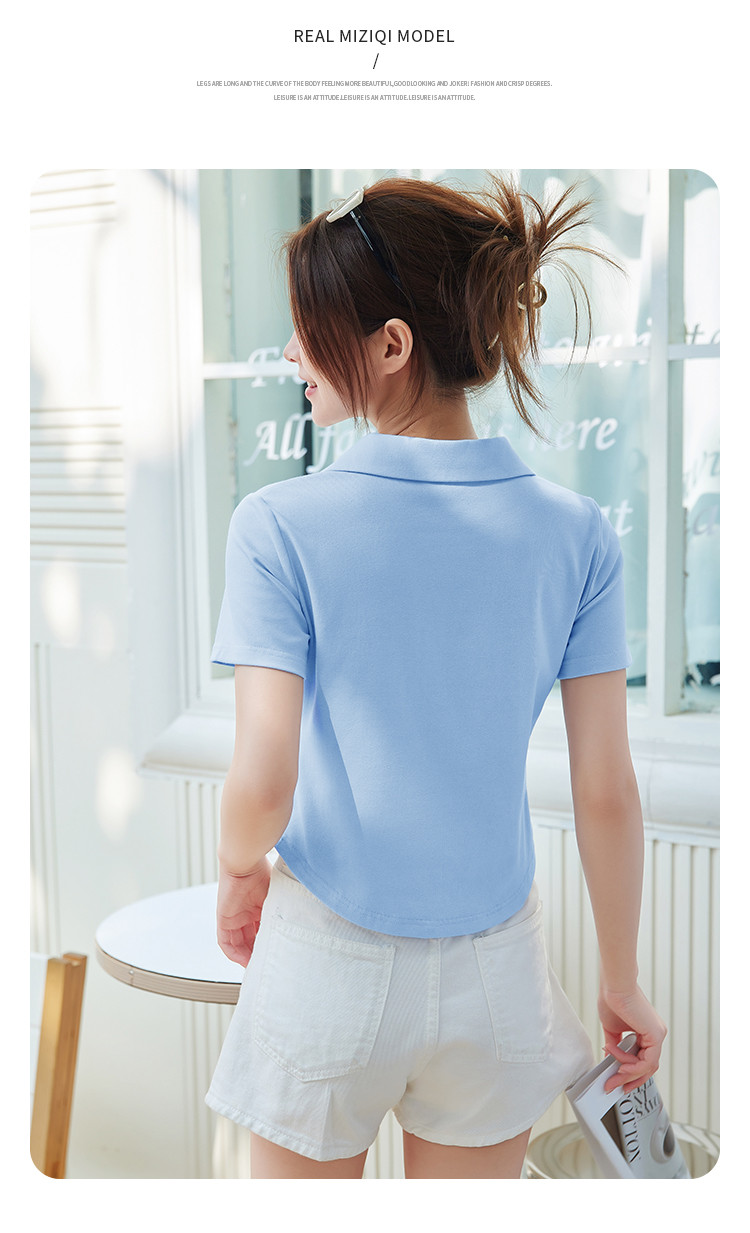 商品名称:米子旗夏季女印花翻领T恤短款修身简约舒适显瘦短袖上衣 453466