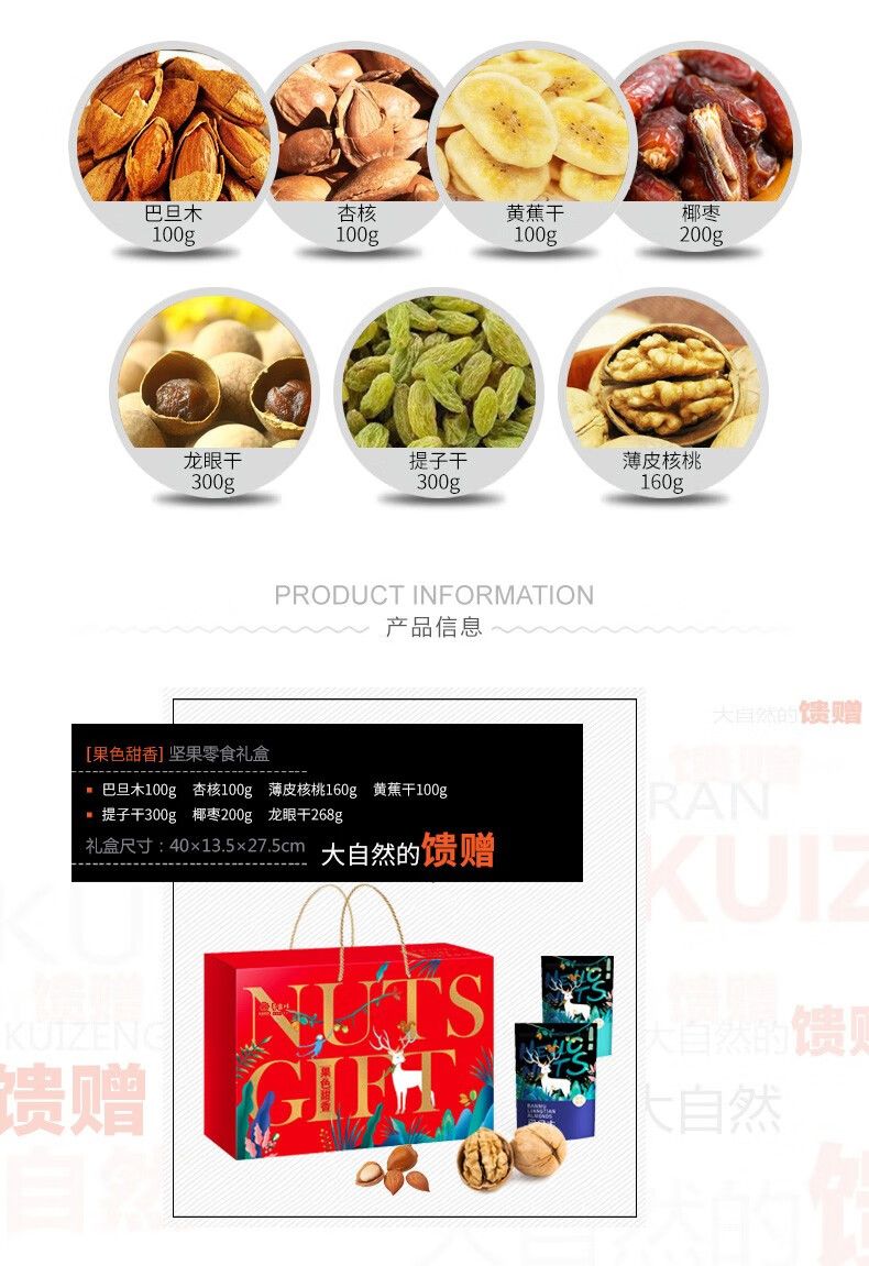 商品名称:半亩川(BANMUCHUAN)半亩良田 果色甜香1228g干果礼盒 坚果零食组合