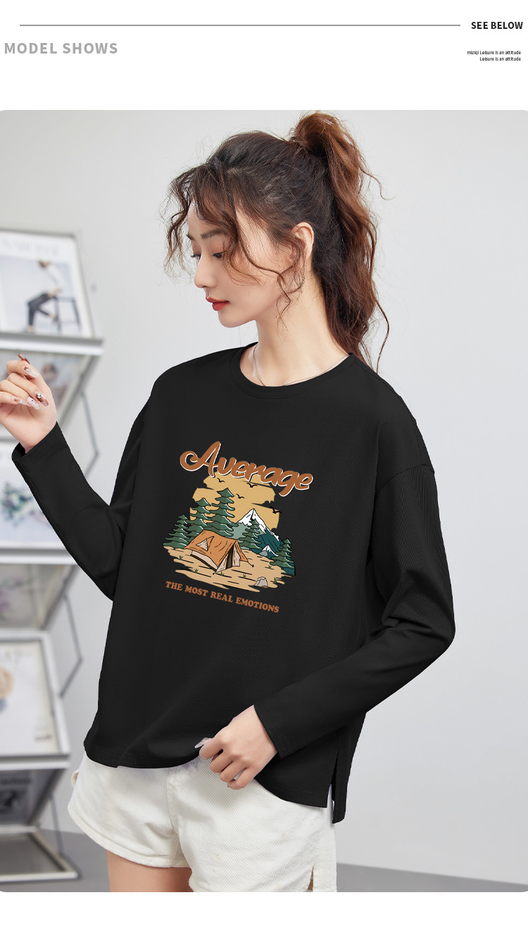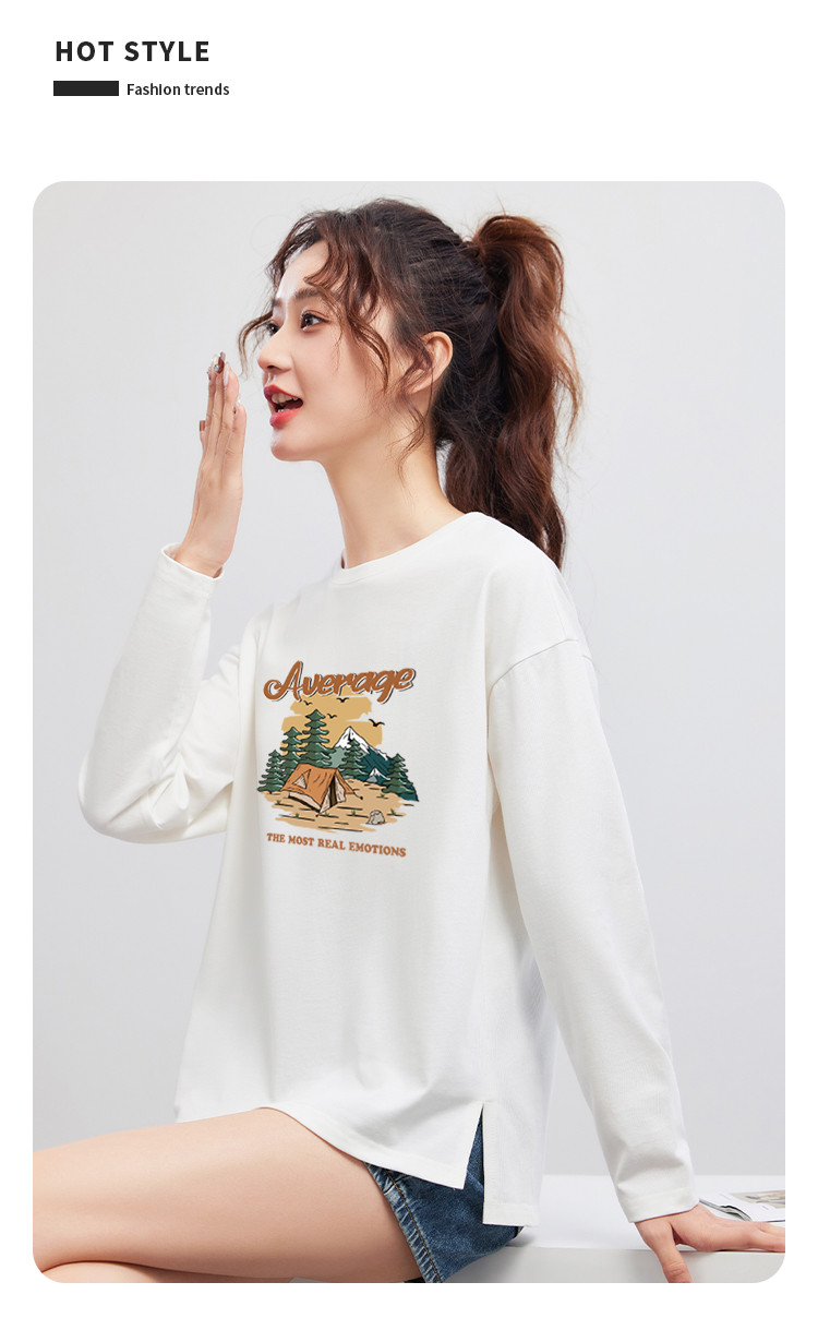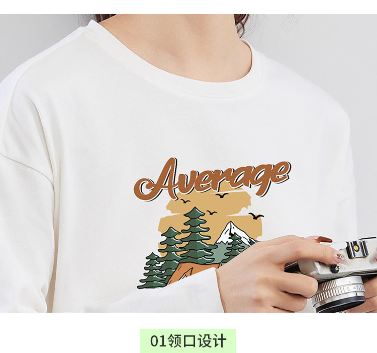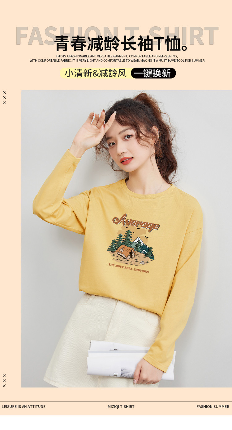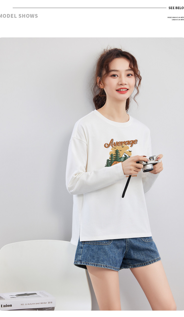 商品名称:米子旗春夏季圆领创意印花女式T恤宽松休闲长袖上衣 091418