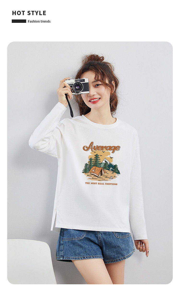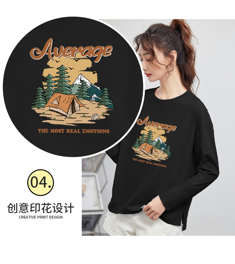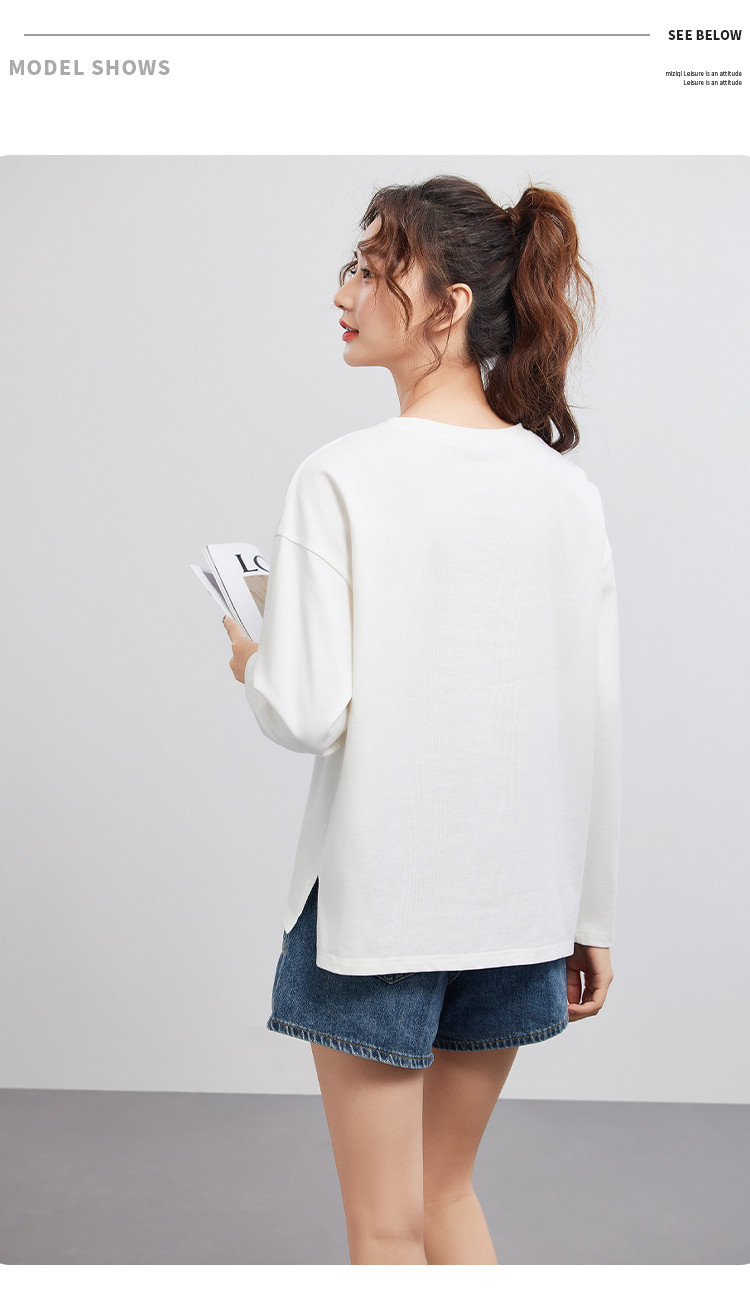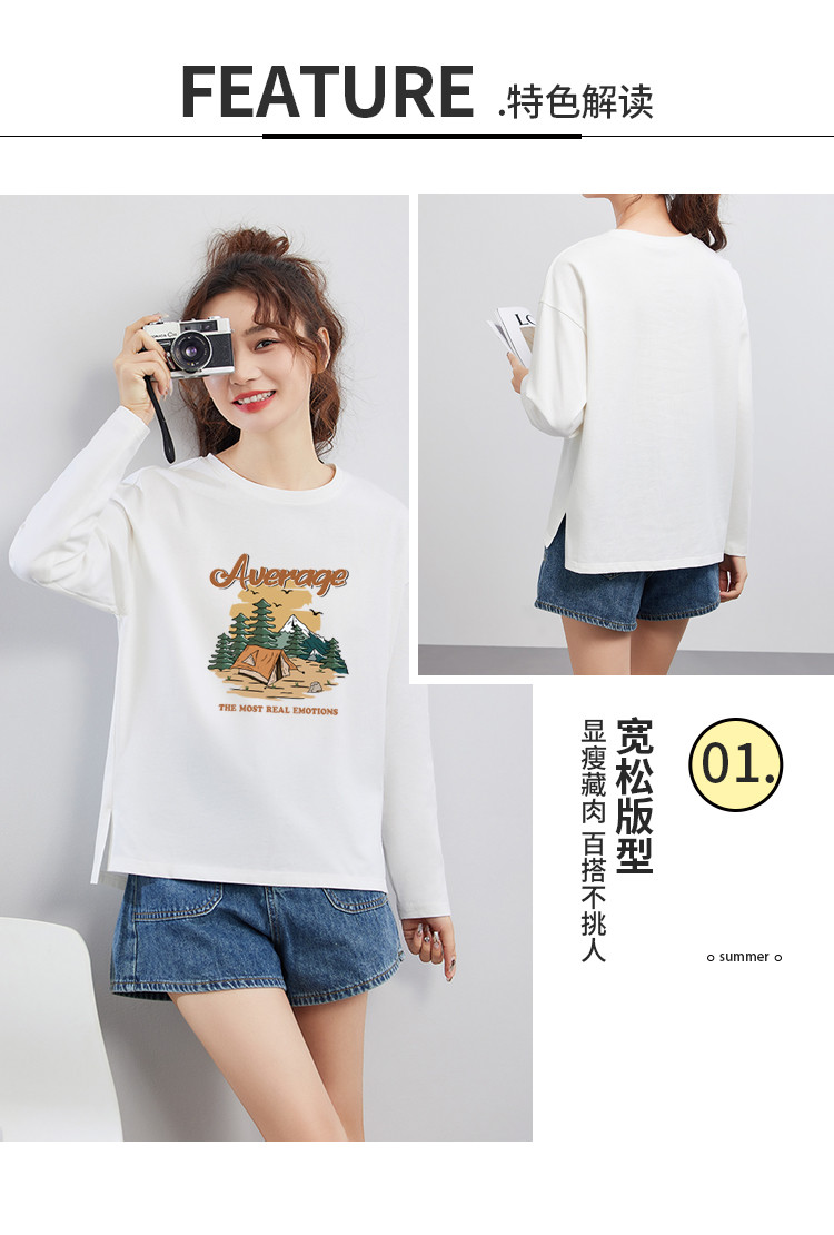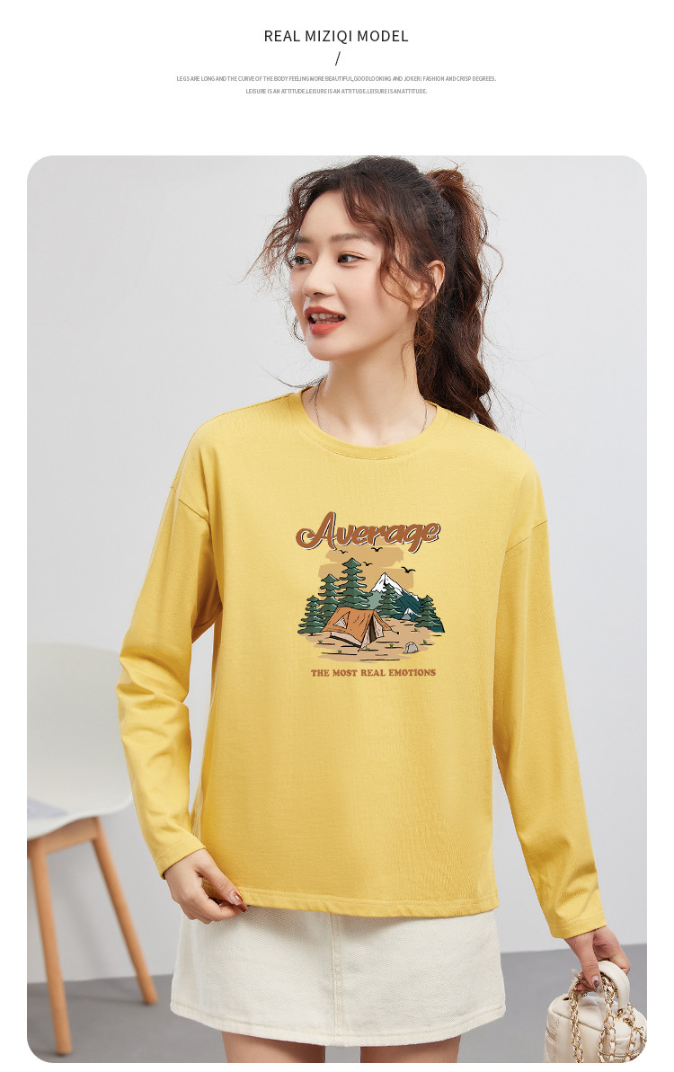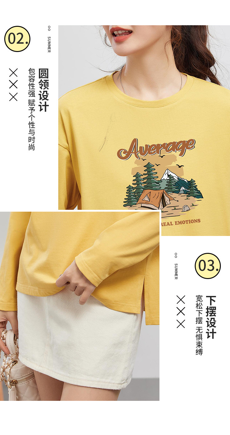 商品名称:米子旗春夏季圆领创意印花女式T恤宽松休闲长袖上衣 091418