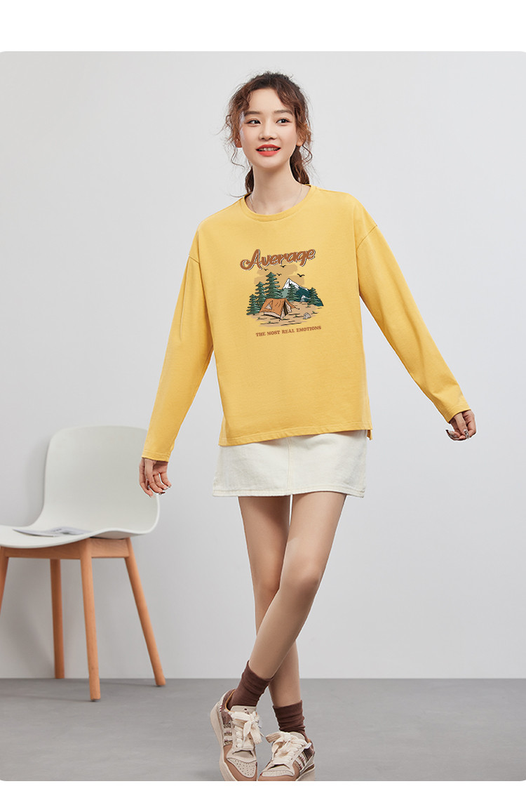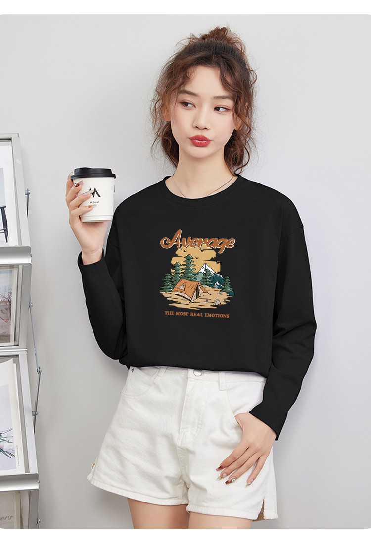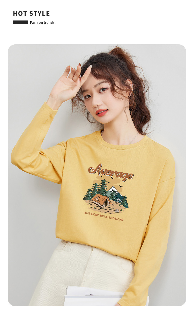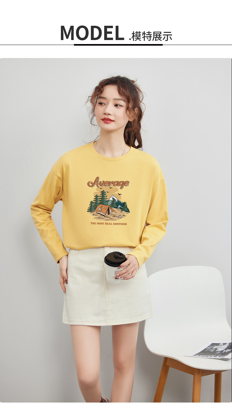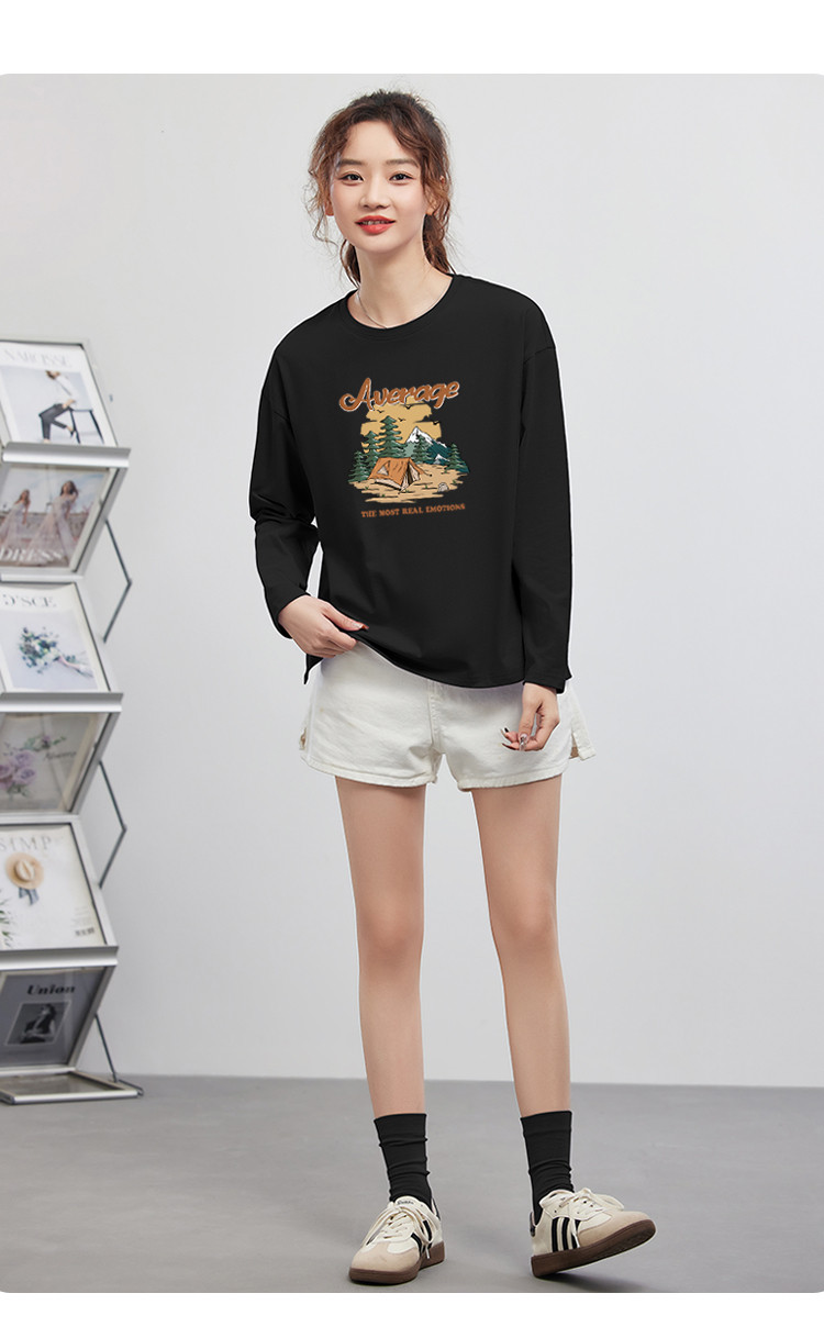 商品名称:米子旗春夏季圆领创意印花女式T恤宽松休闲长袖上衣 091418