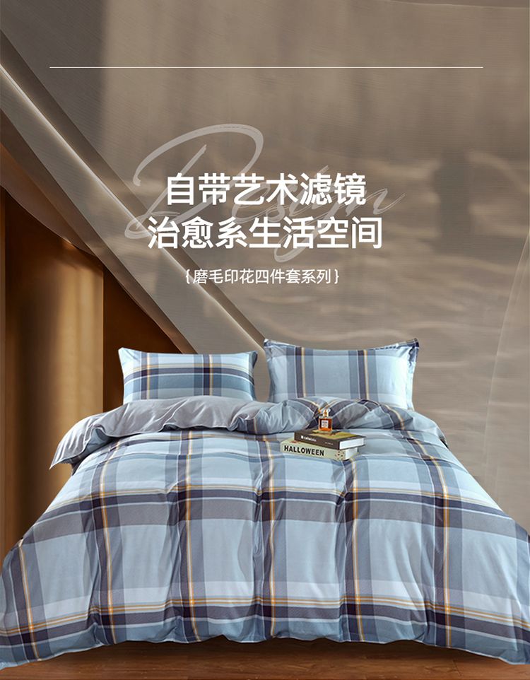 雅鹿生态长棉绒四件套系列被套 200*230cm 床单 230*250cm枕套 48*74cm*2