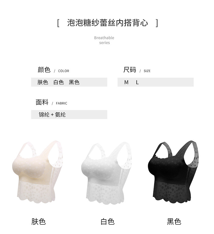 商品名称:【女神内搭神器】春夏轻薄带胸垫打底蕾丝女士打底背心女士吊带 340446