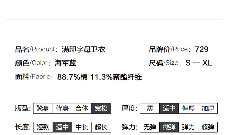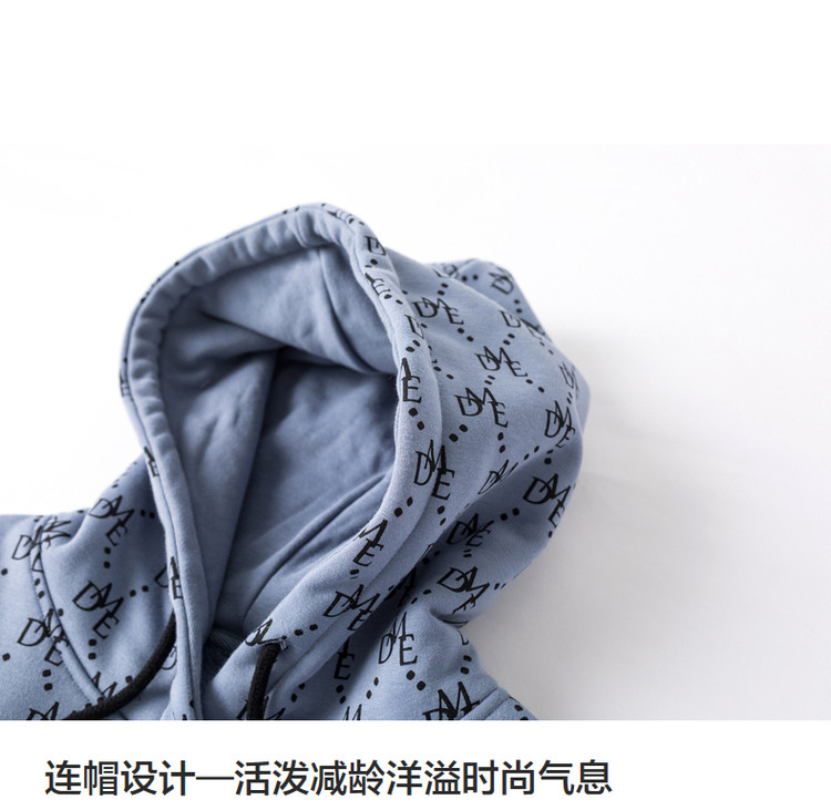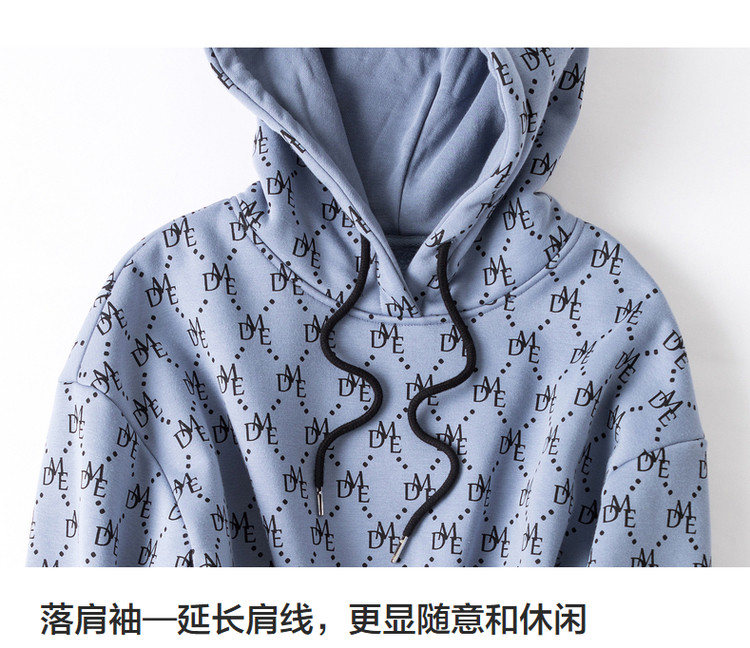 商品名称:【字母印花】春秋连帽含棉宽松落肩微弹抽绳长袖卫衣女 701377