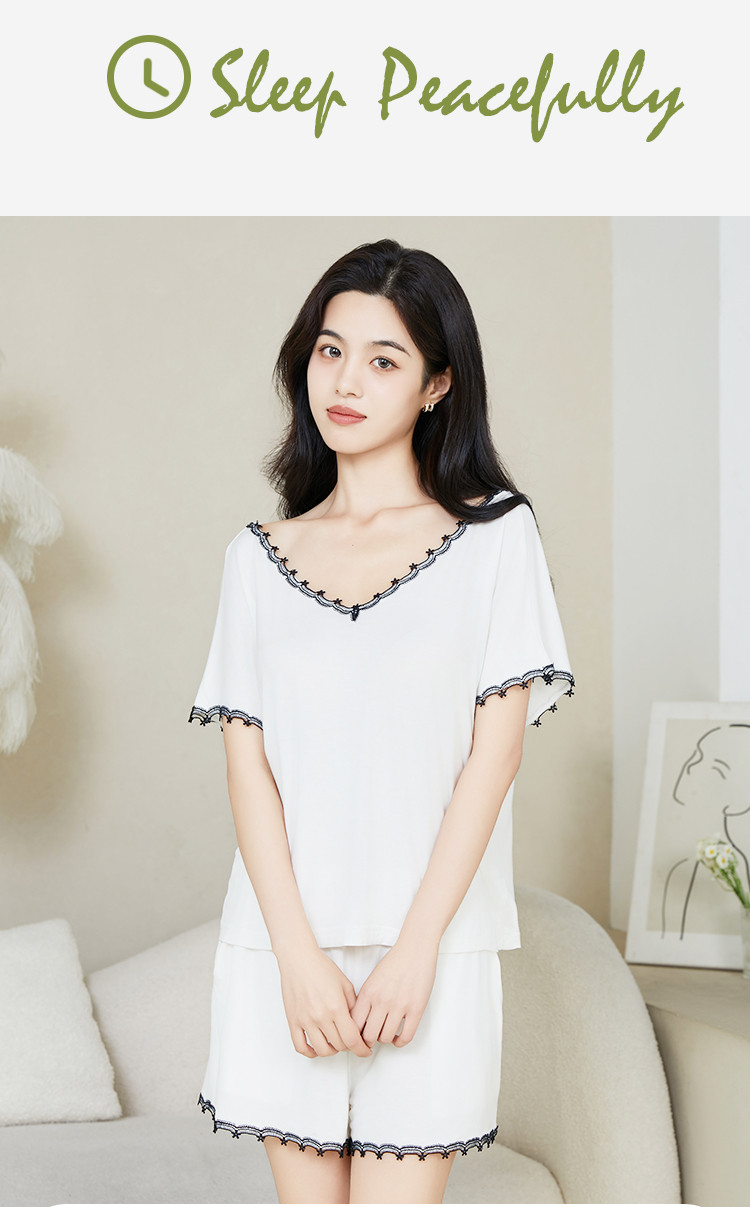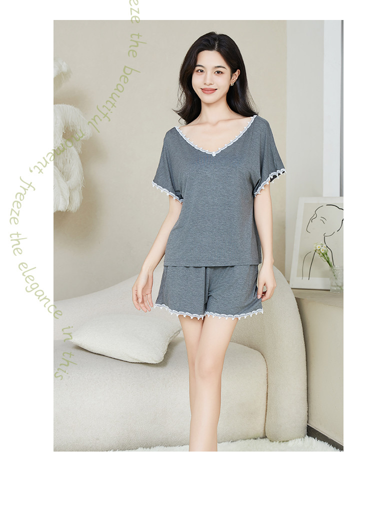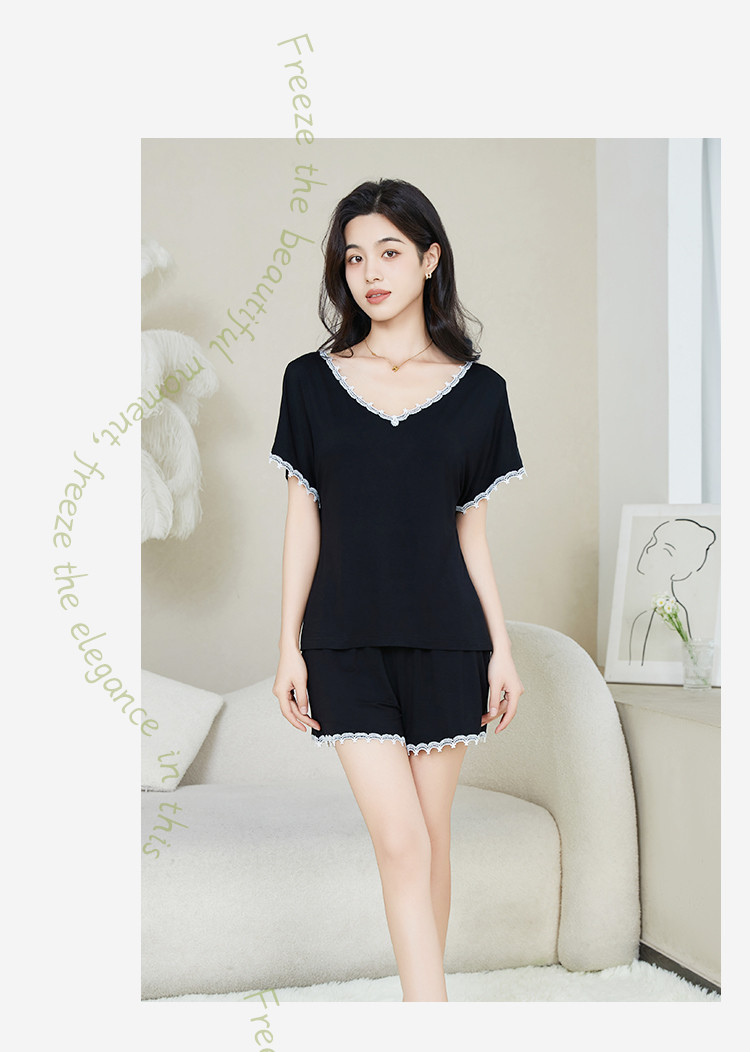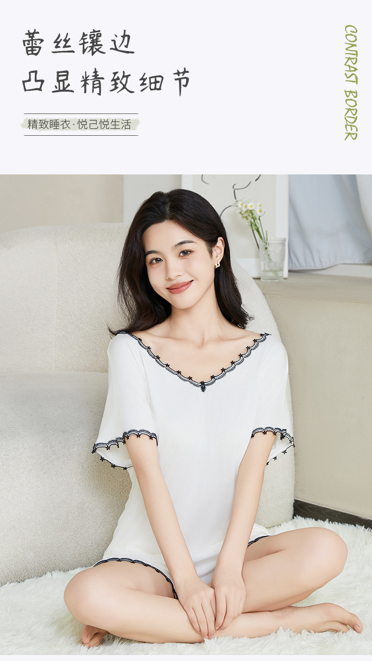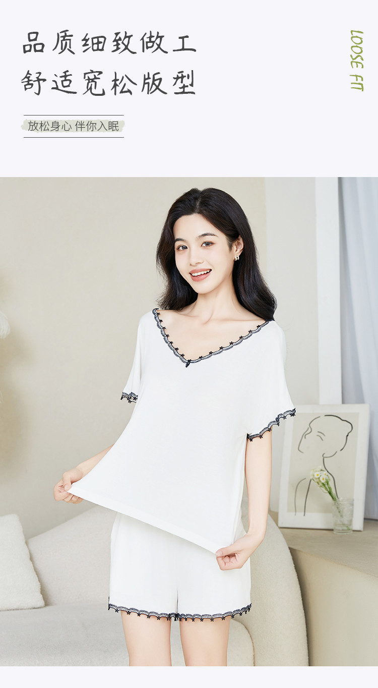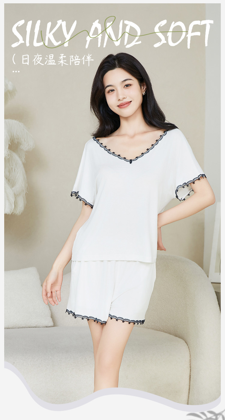 商品名称:【性感深V美背】莫代尔女士睡衣女夏季薄款套装外穿家居服高级感 499659