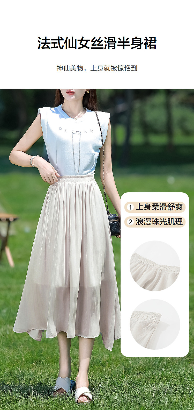 商品名称:【珠光人鱼姬】夏法式仙女丝滑细腻松紧腰半身裙女中长款 555457