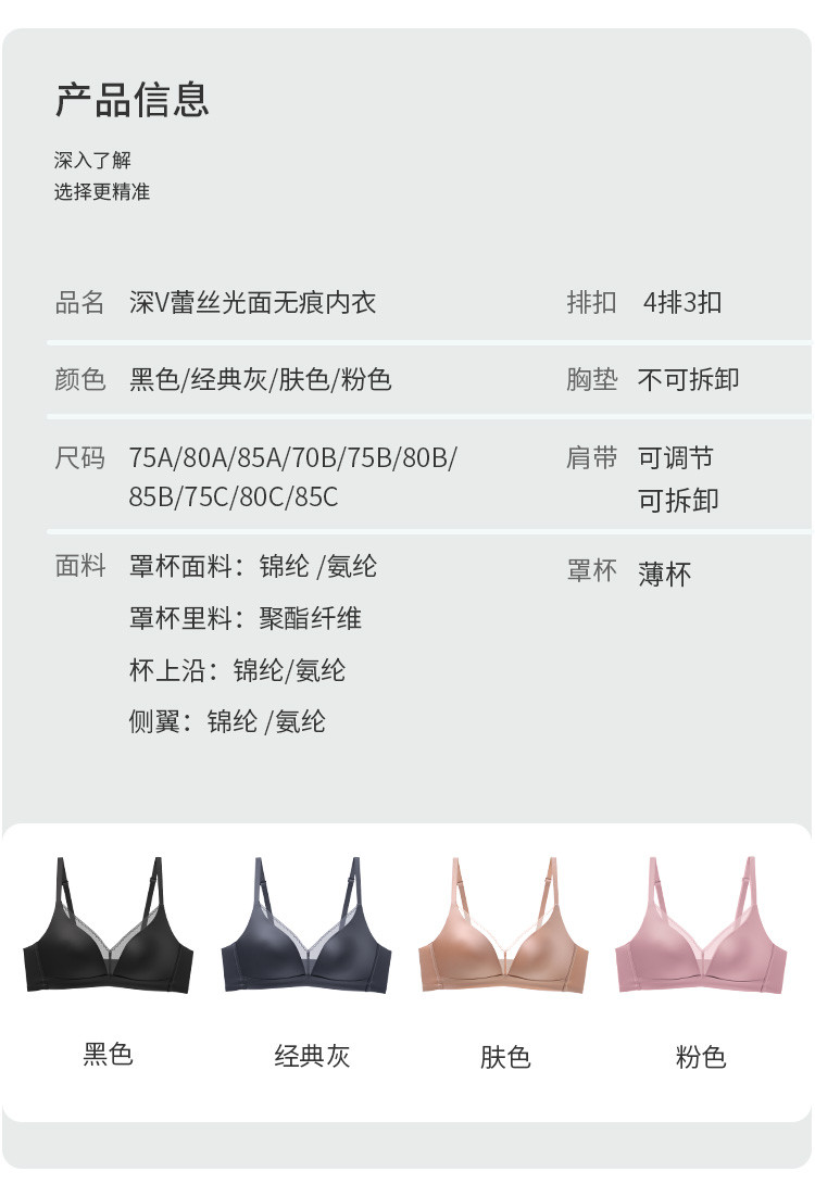 商品名称:【光面无痕 性感蕾丝】大胸显小胸聚拢提拉无钢圈内衣女士文胸罩 252894