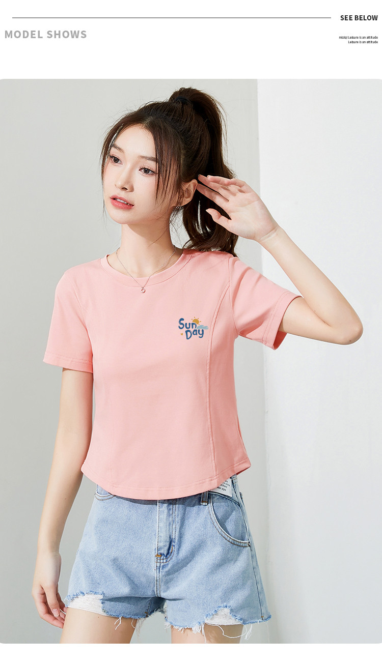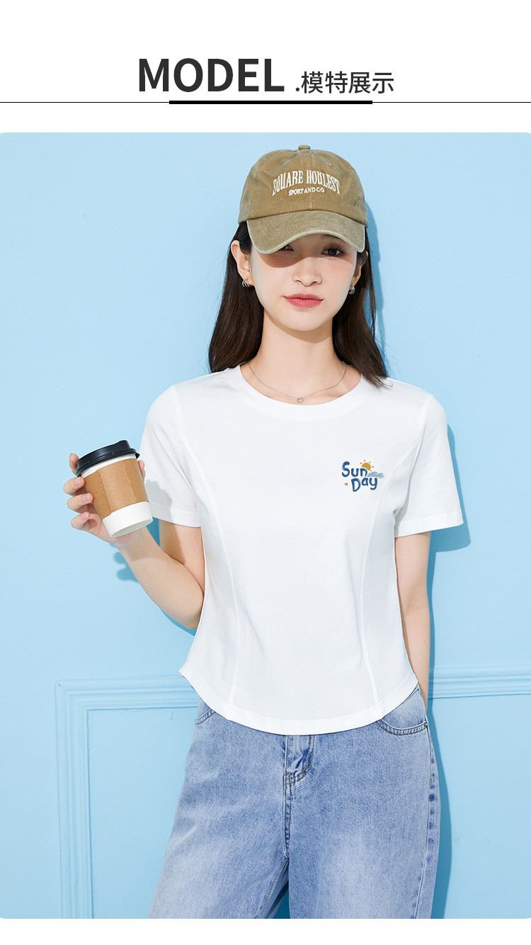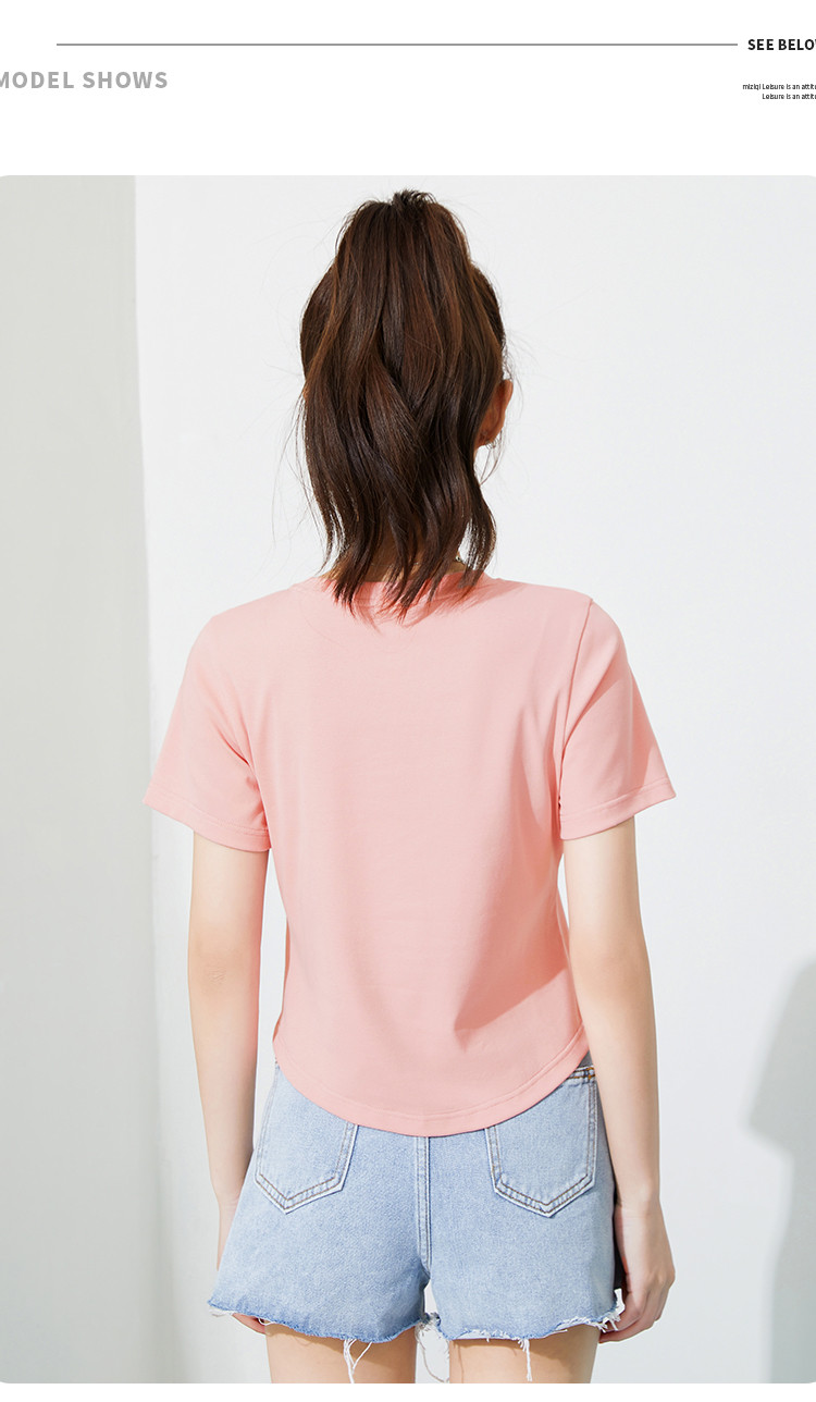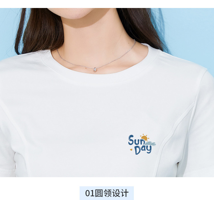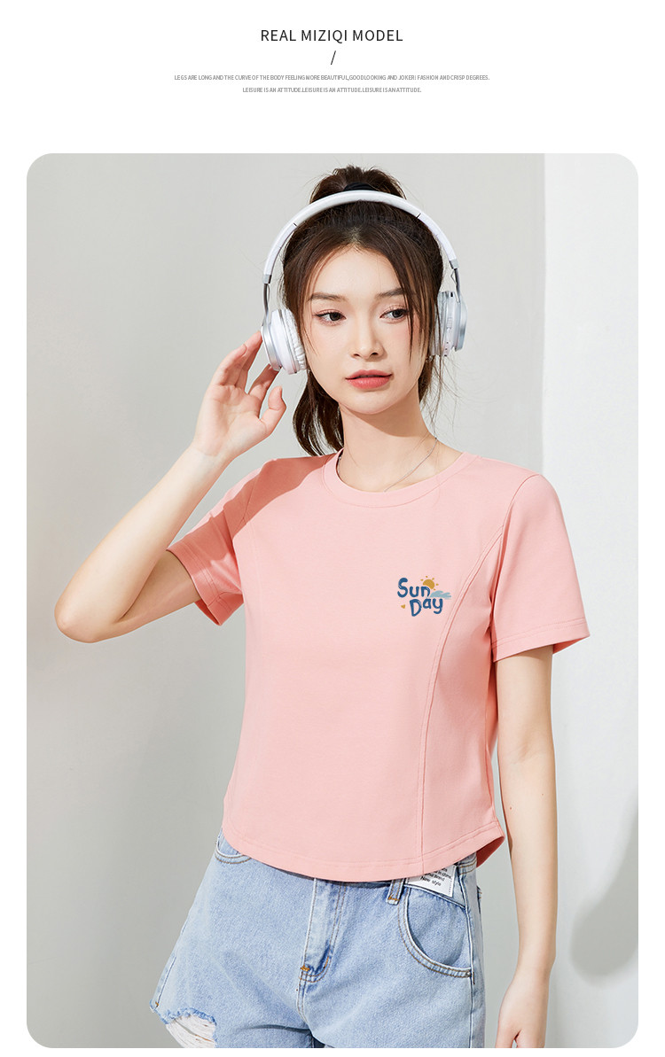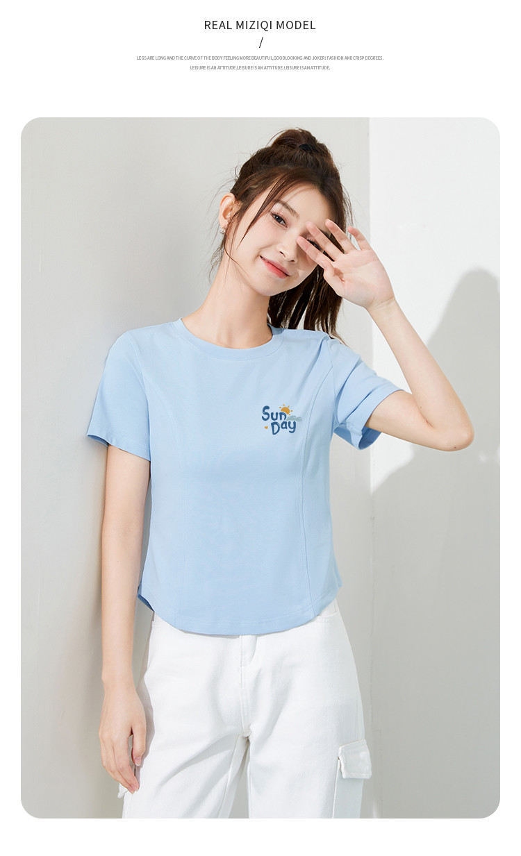 商品名称:米子旗夏季女字母印花圆领T恤弧形下摆显瘦舒适短袖上衣 394522