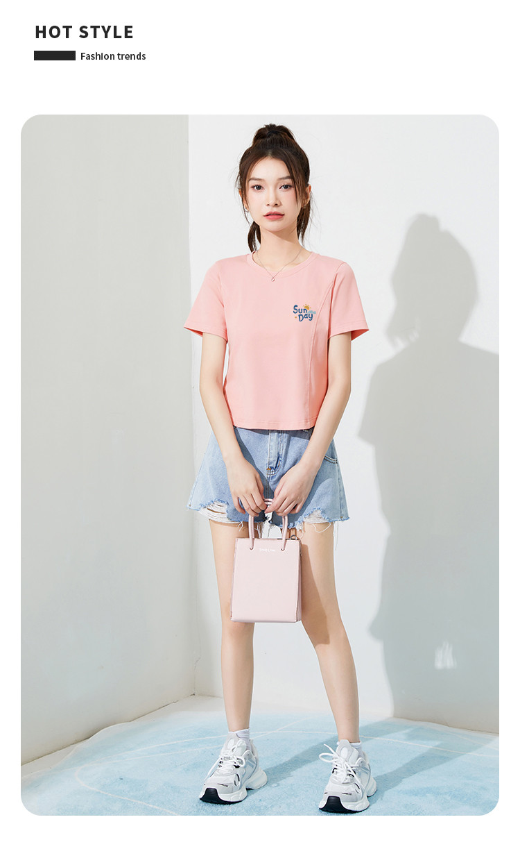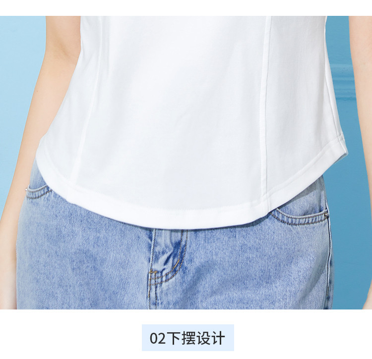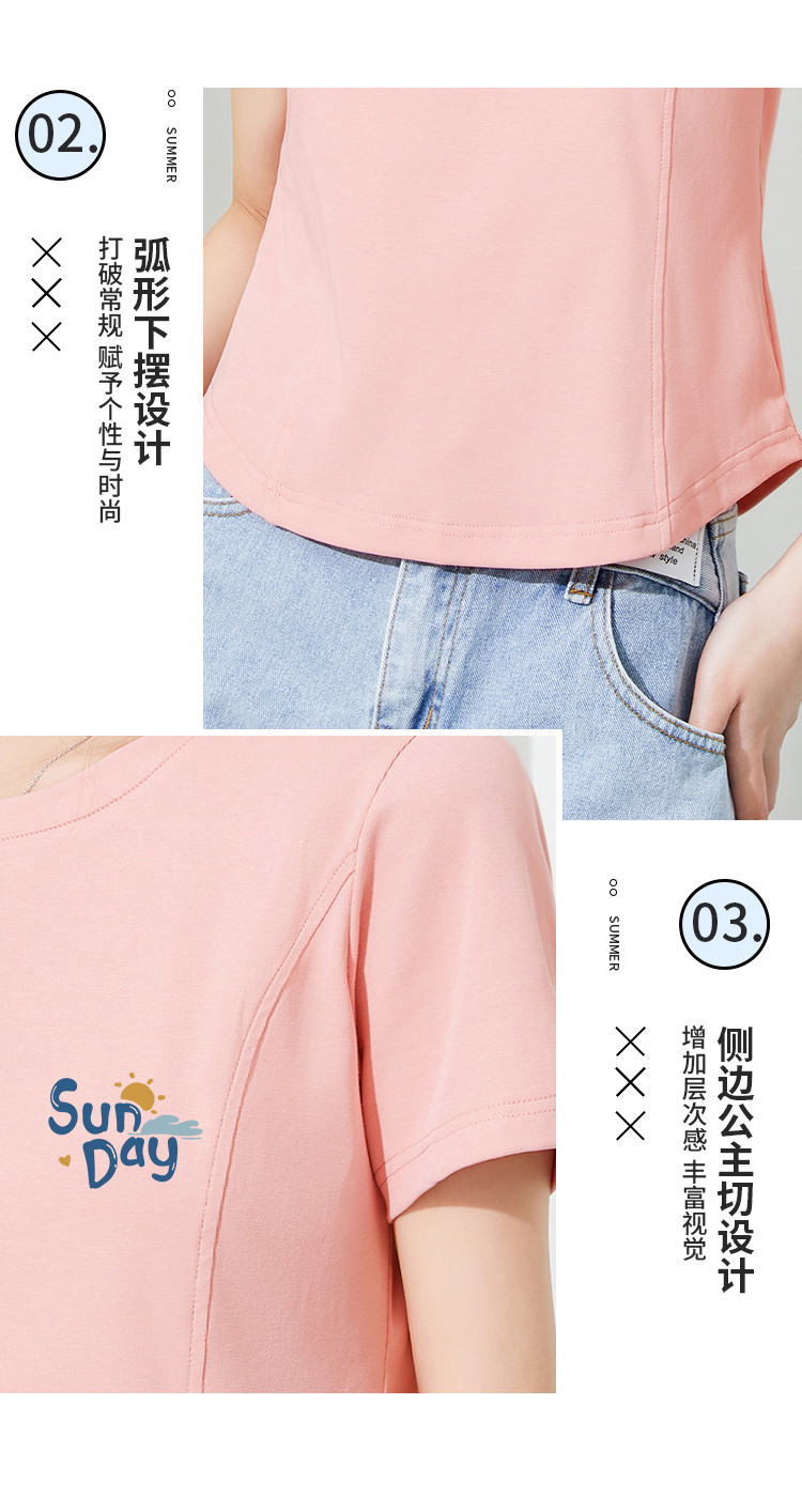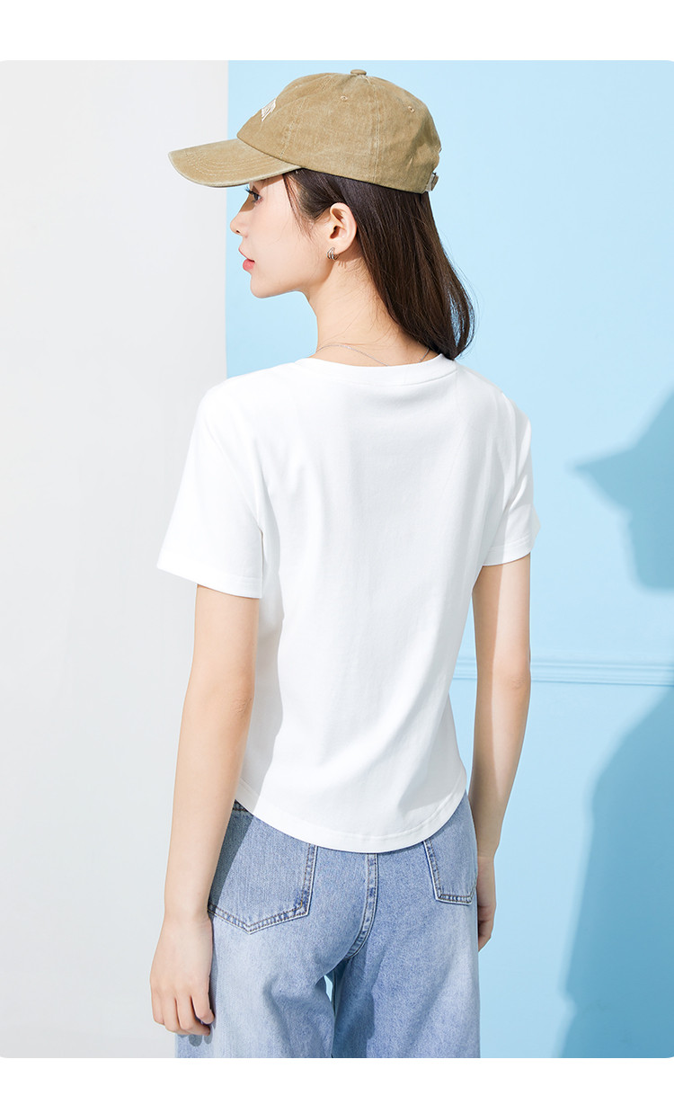 米子旗夏季女字母印花圆领T恤弧形下摆显瘦舒适短袖上衣 394522