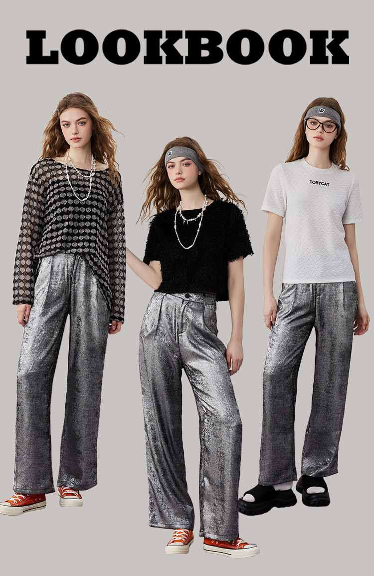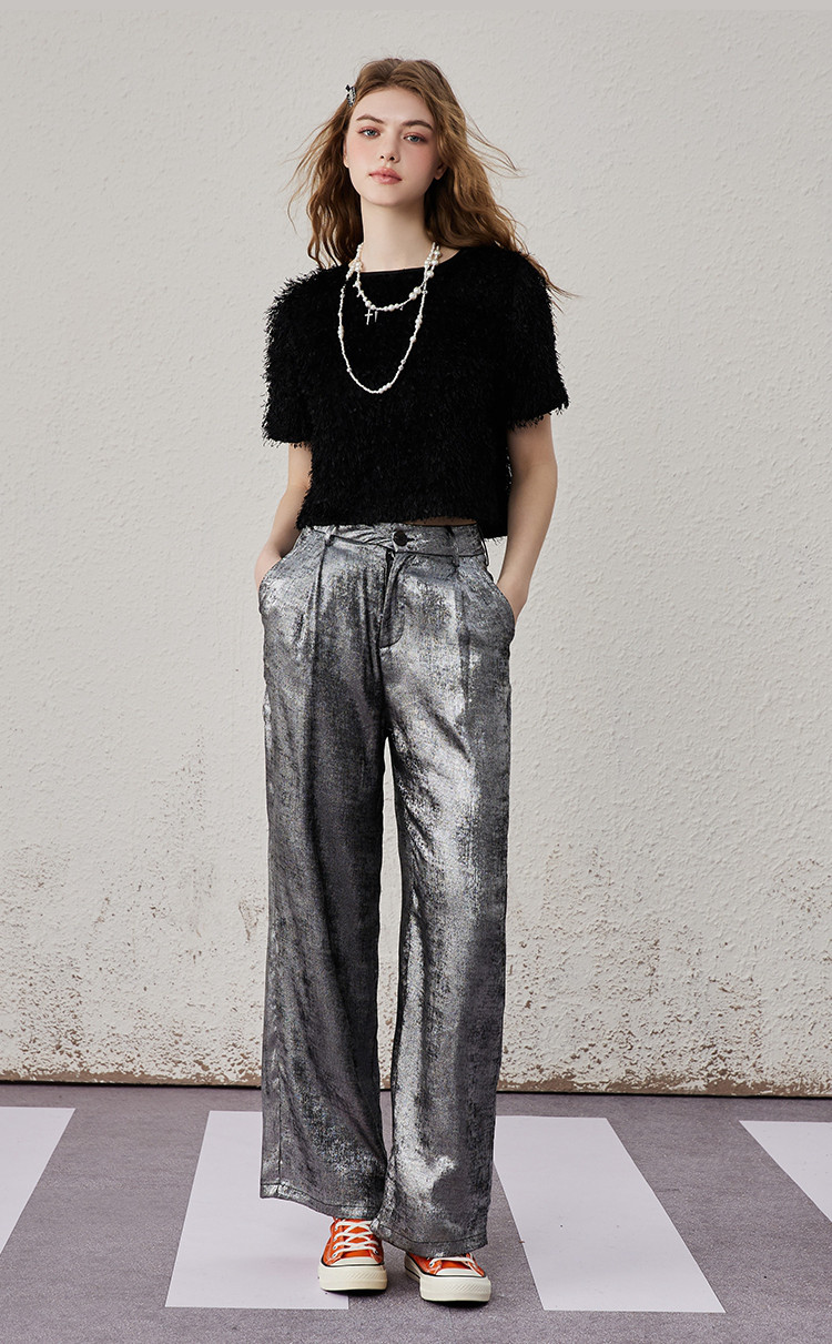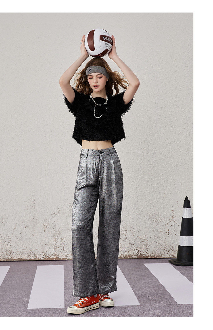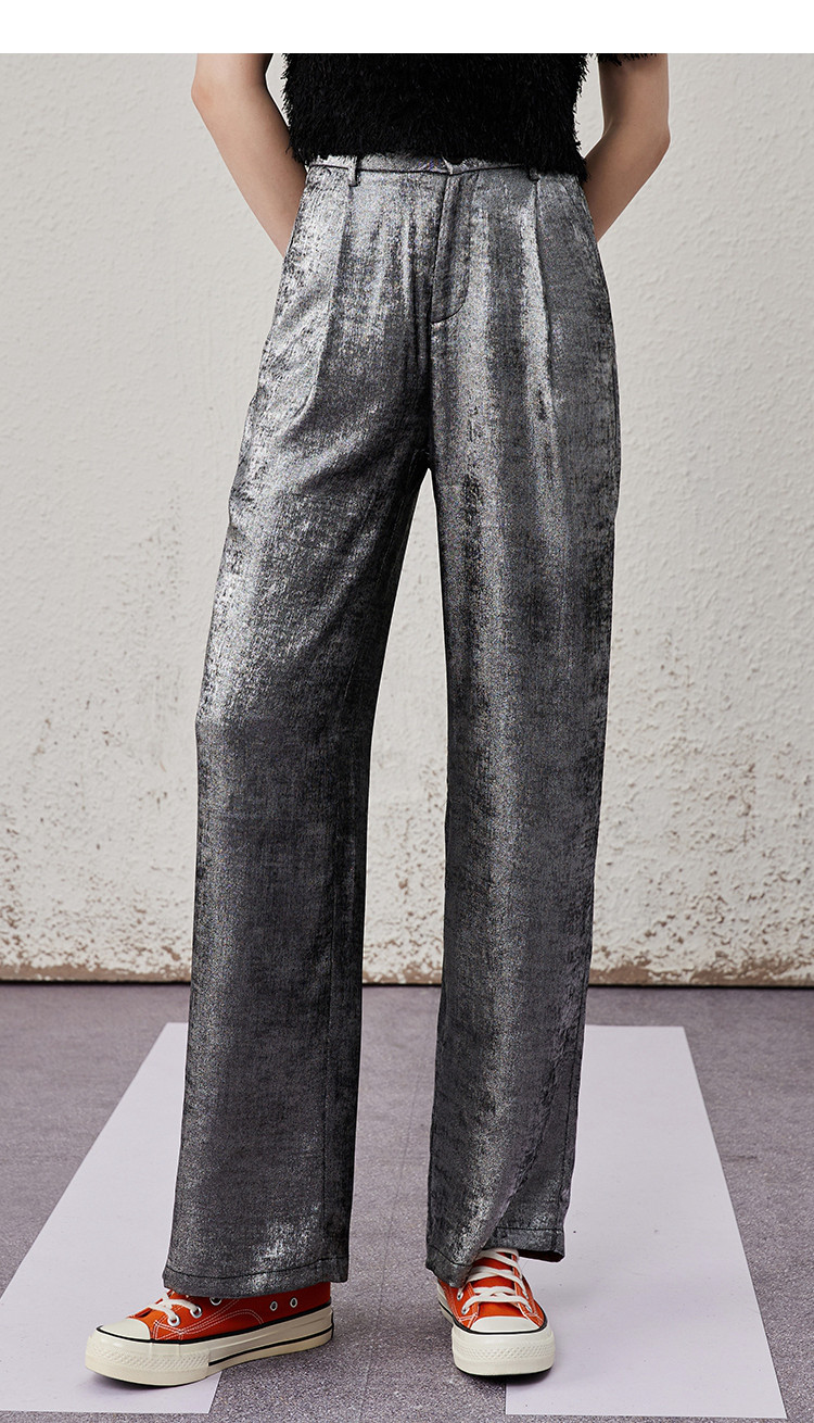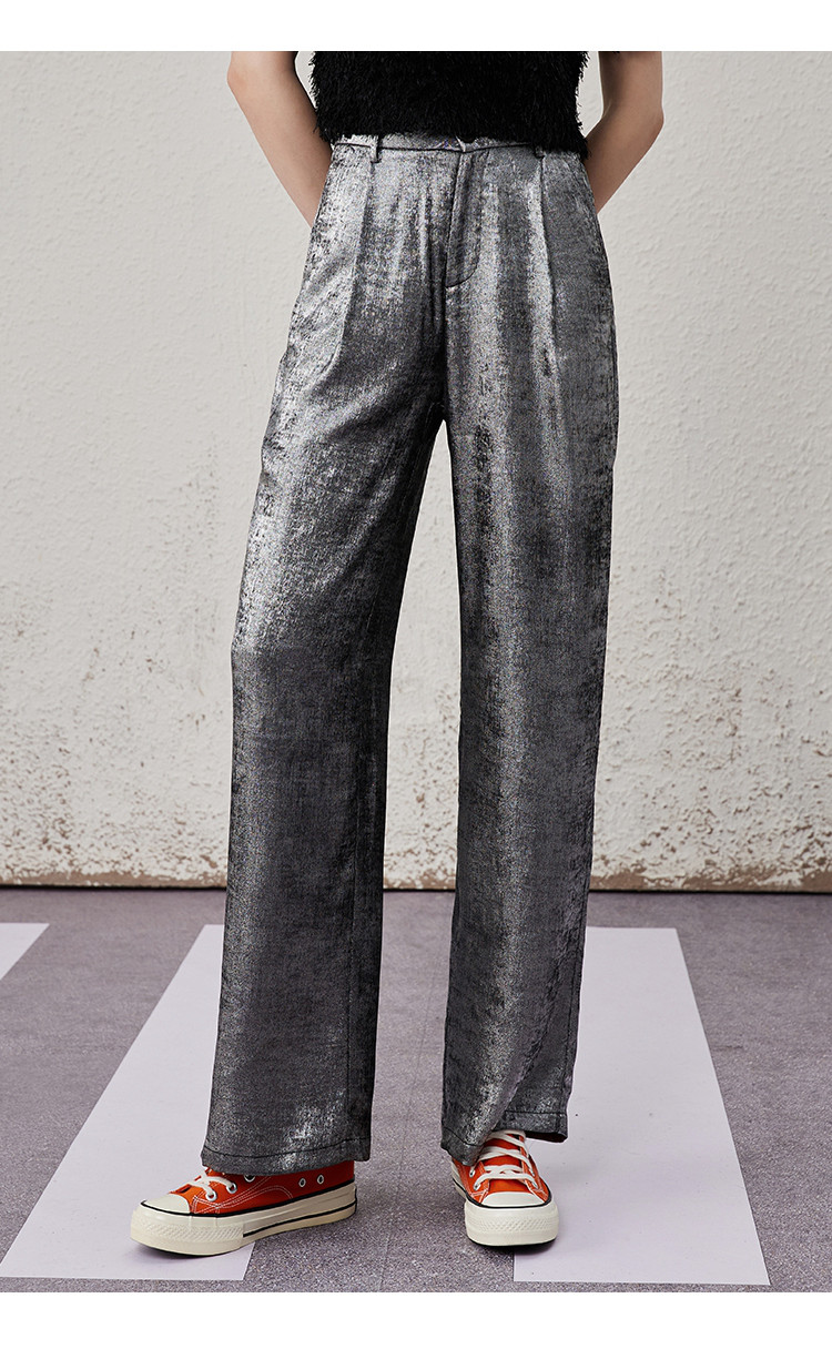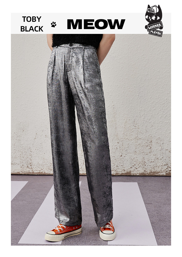 个性街头风小众涂层设计感高腰直筒裤夏季闪亮女式休闲裤 699549