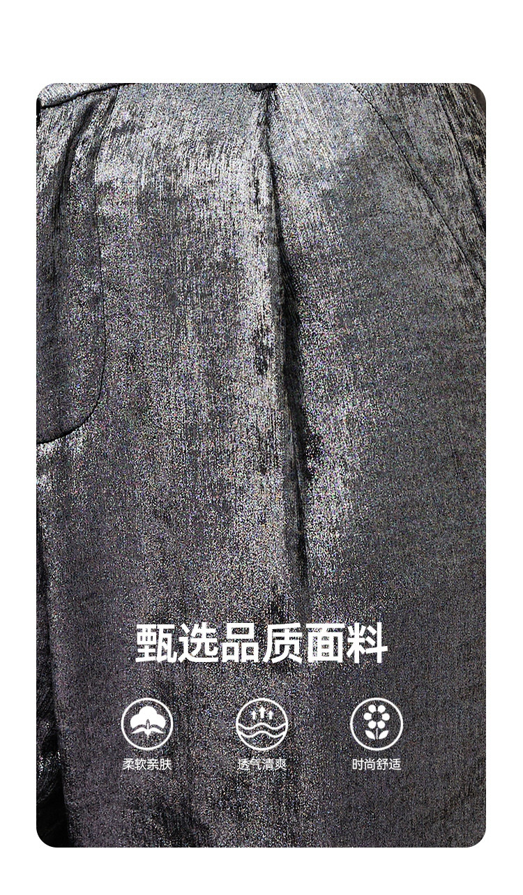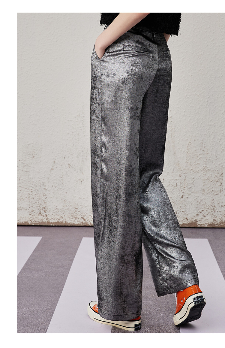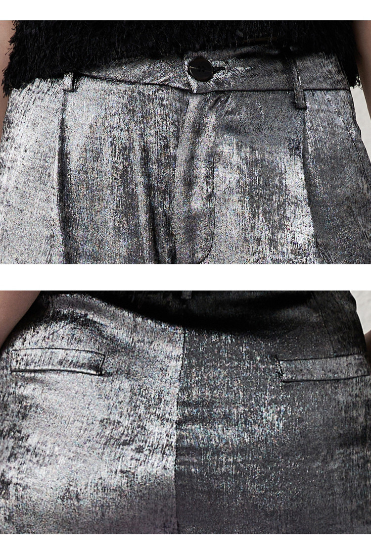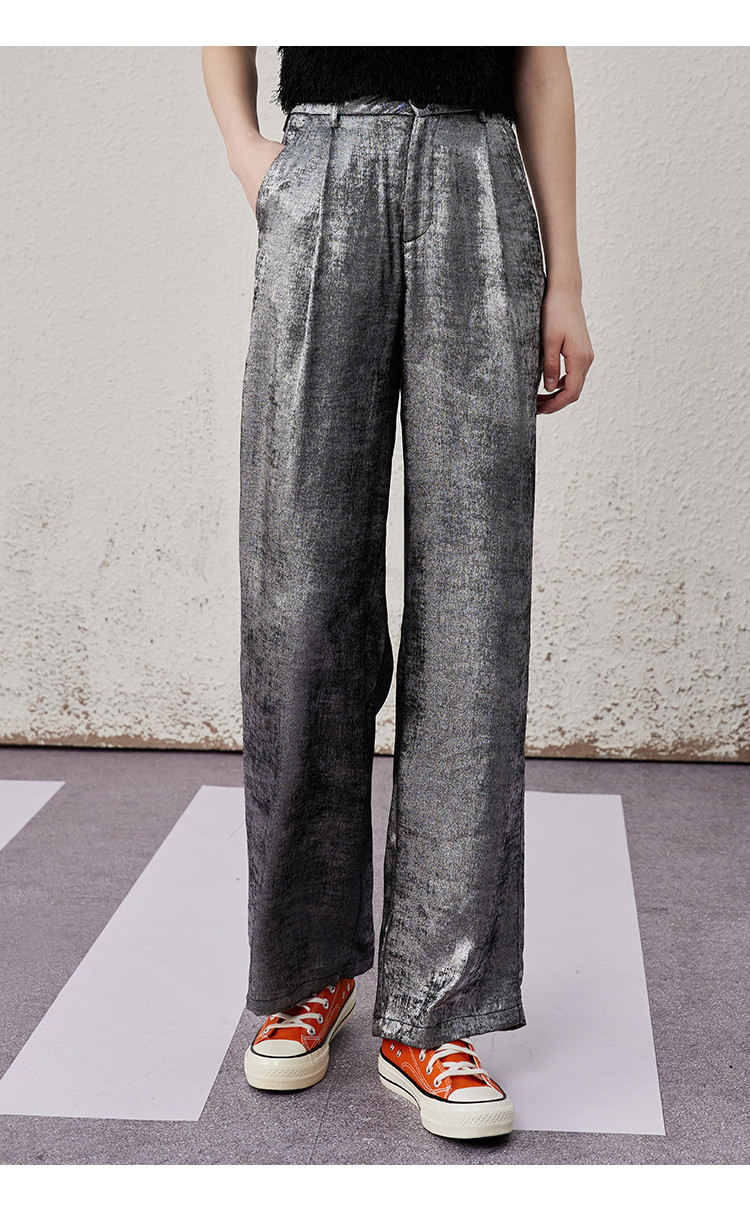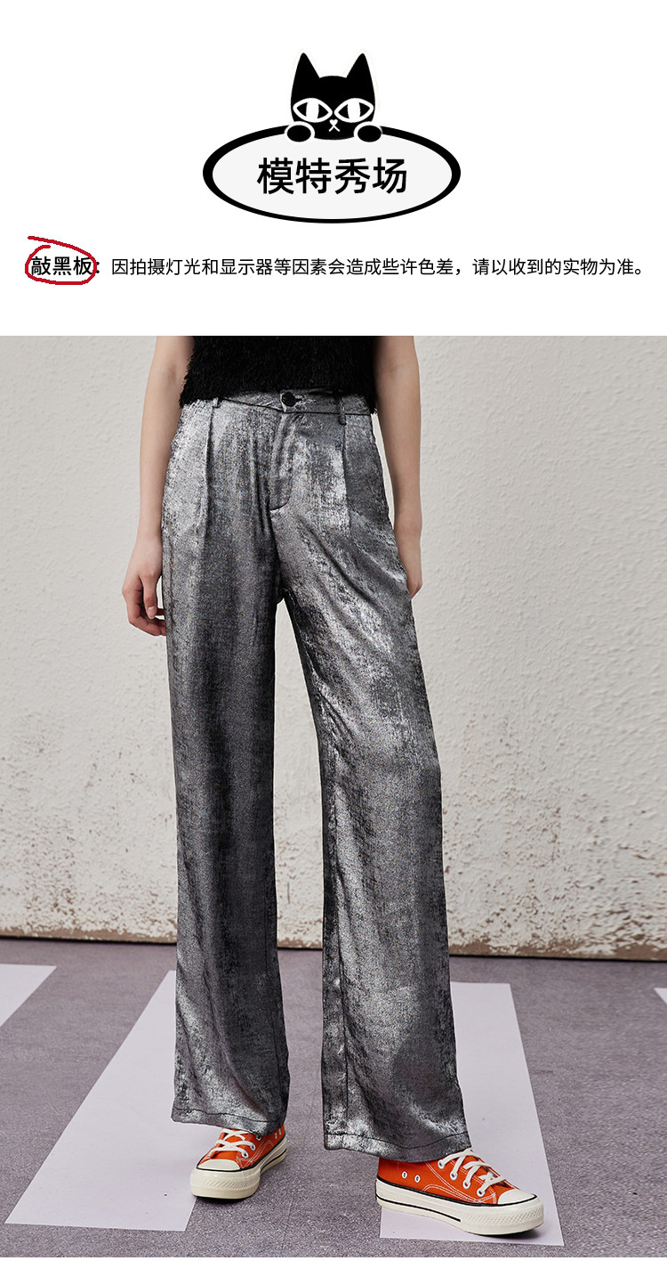 商品名称:个性街头风小众涂层设计感高腰直筒裤夏季闪亮女式休闲裤 699549