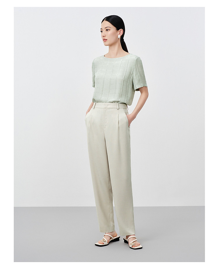 商品名称:玖姿旗下安娜蔻系列简约风压褶哈伦裤休闲裤女夏季 158028