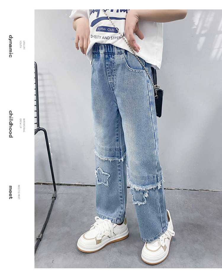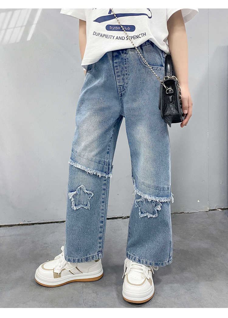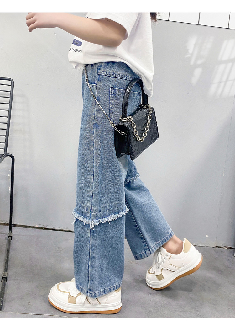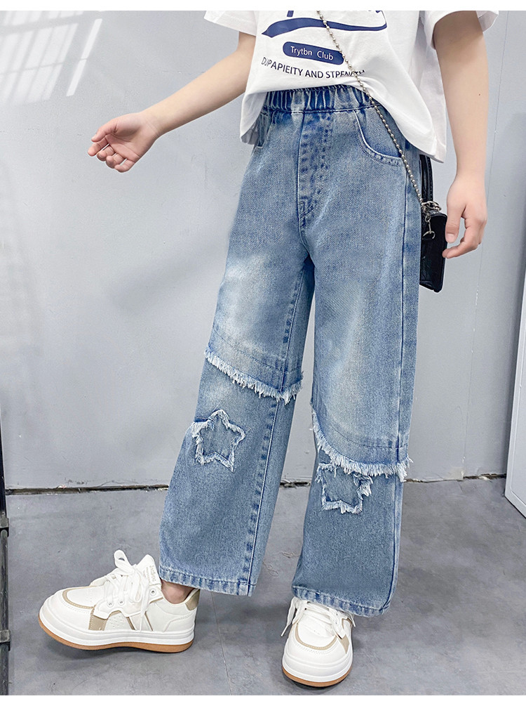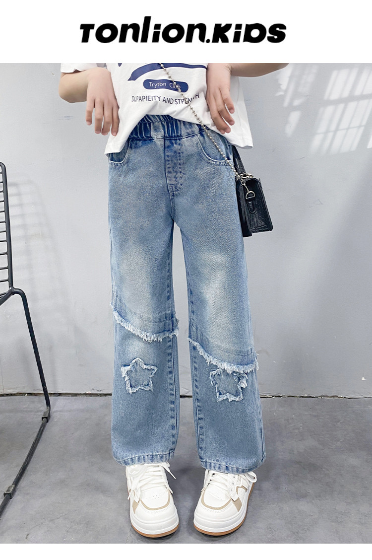 商品名称:女童中大童裤子春季2025儿童松紧腰直筒牛仔裤休闲长裤 943183
