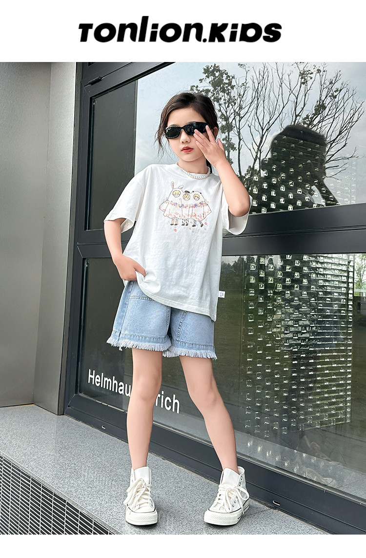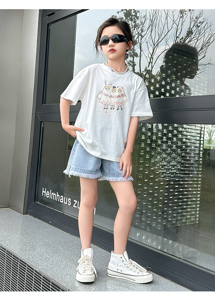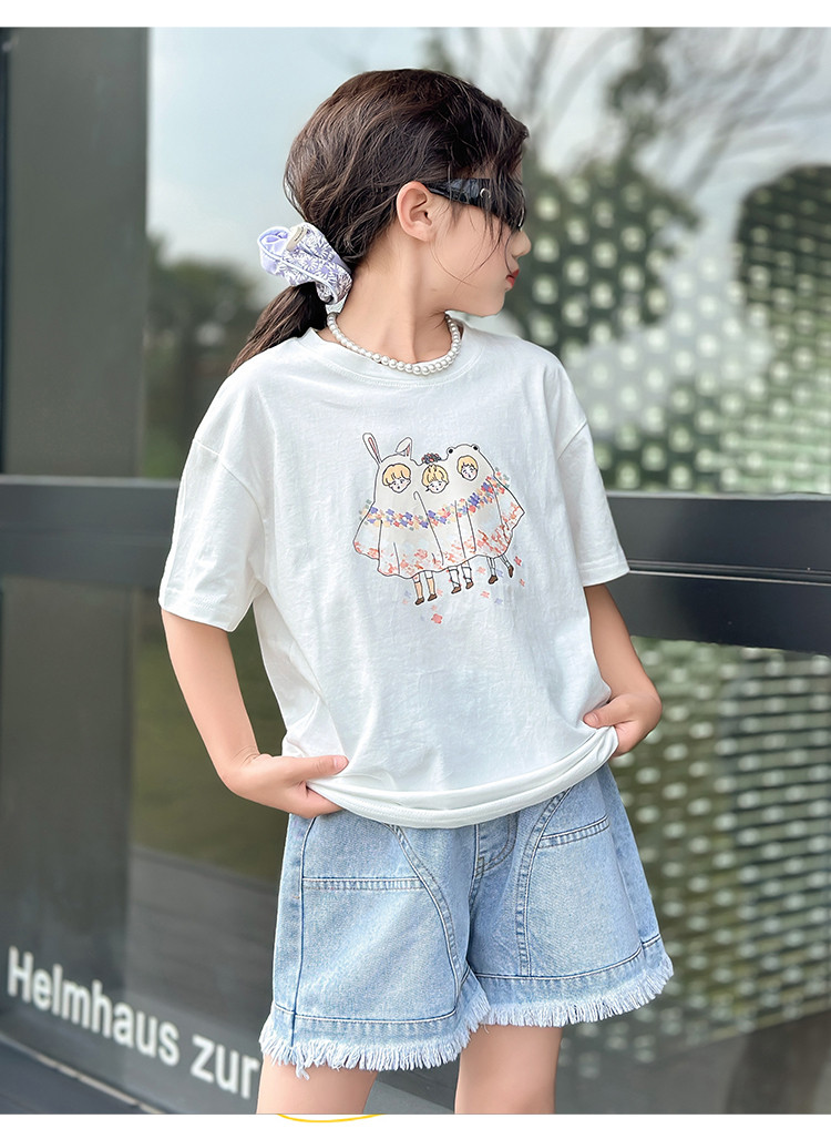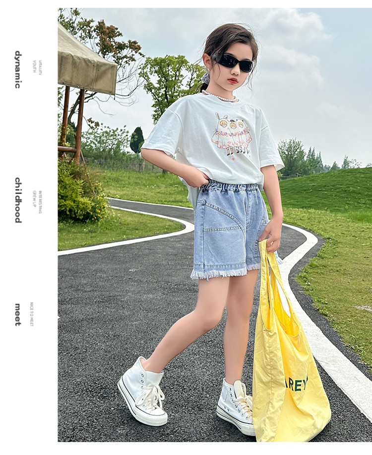 商品名称:女童套装夏季2024儿童短袖两件套休闲透气中大童女孩衣服童装 427087