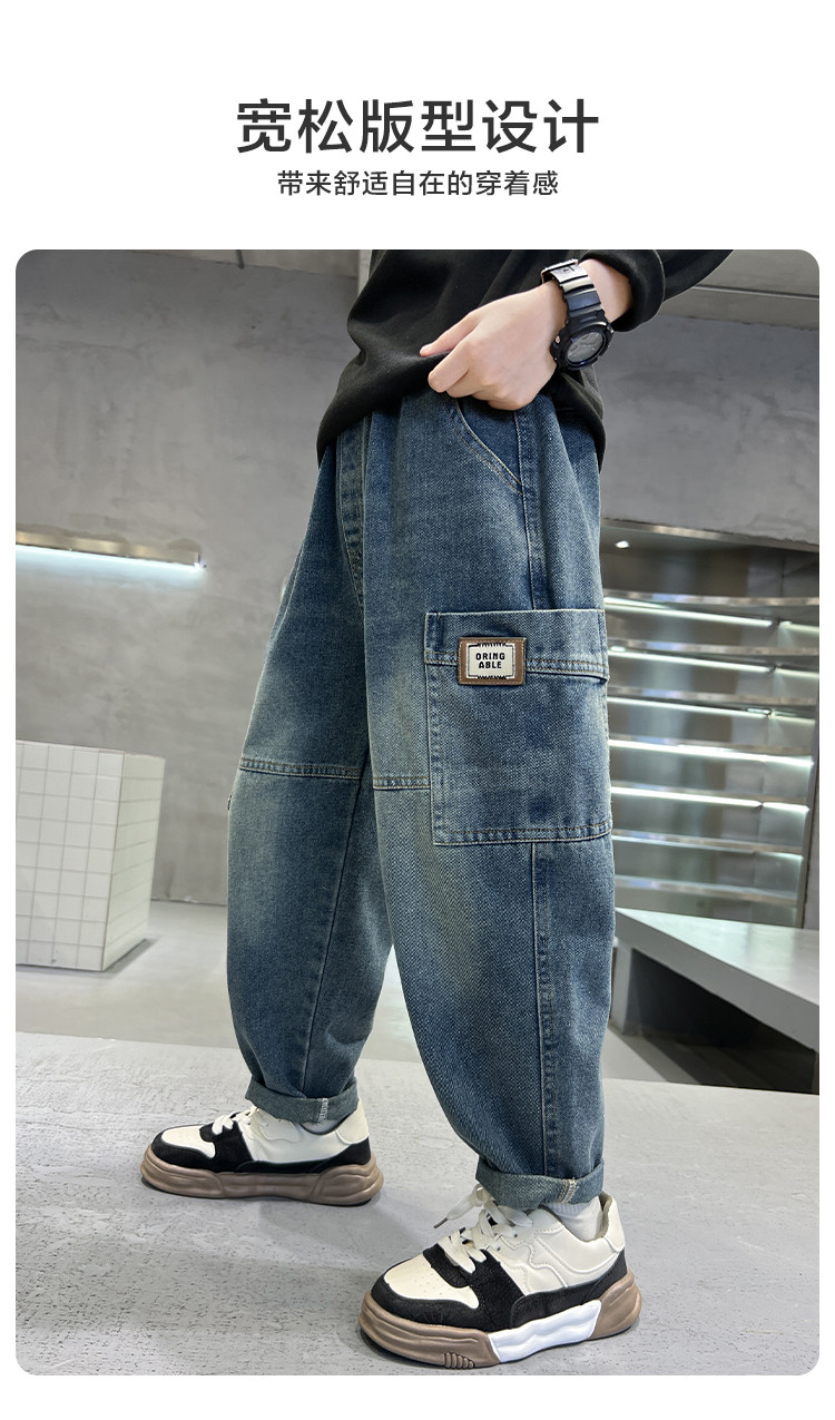 商品名称:儿童裤子2025男童春裤子中大童春款男孩宽松复古牛仔裤潮 407247