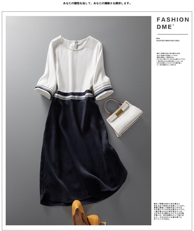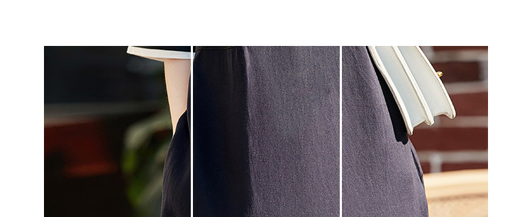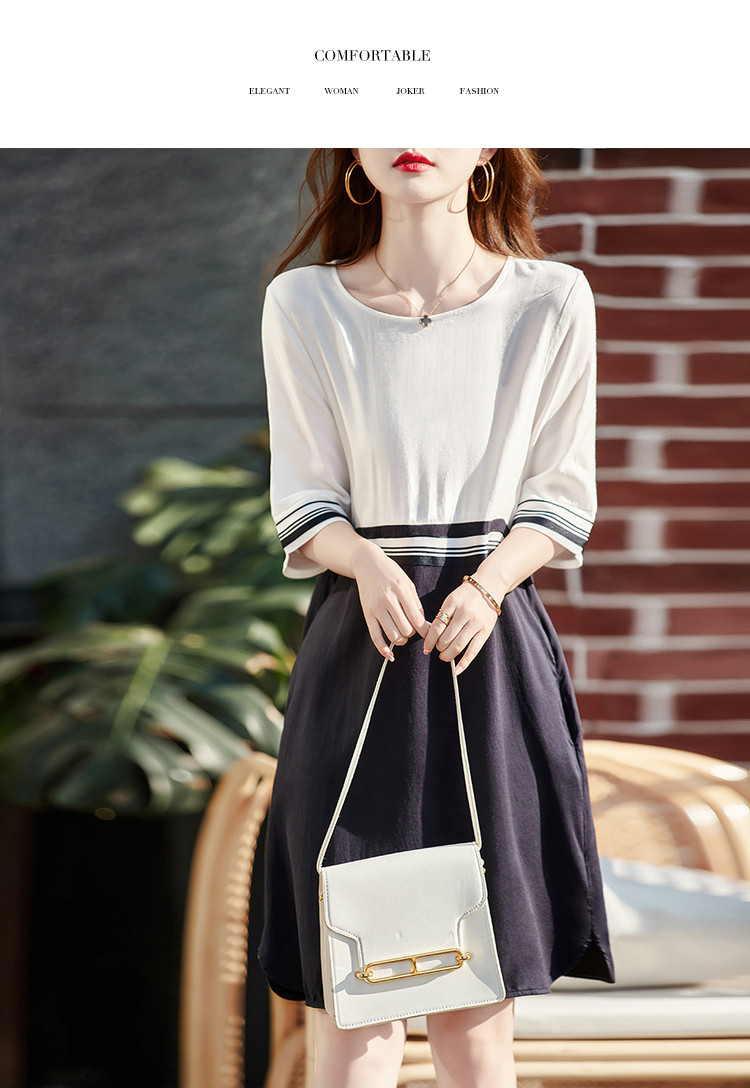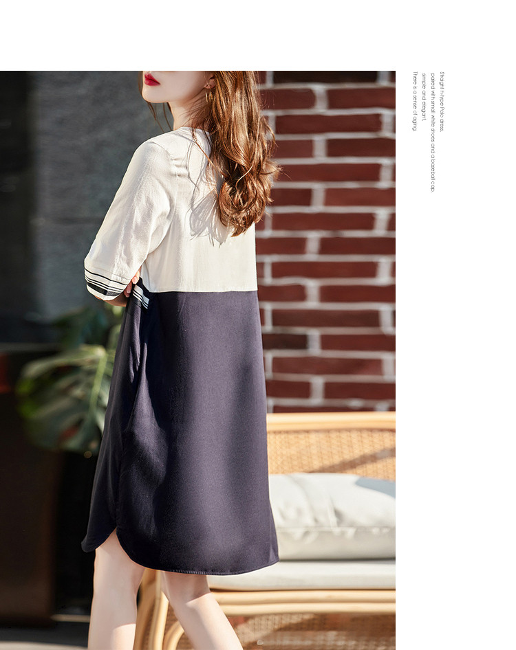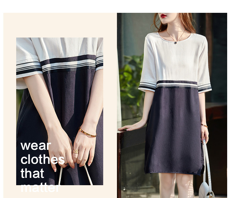 商品名称:【莱赛尔亚麻】夏季圆领宽松撞拼中袖裙子连衣裙女夏 594625