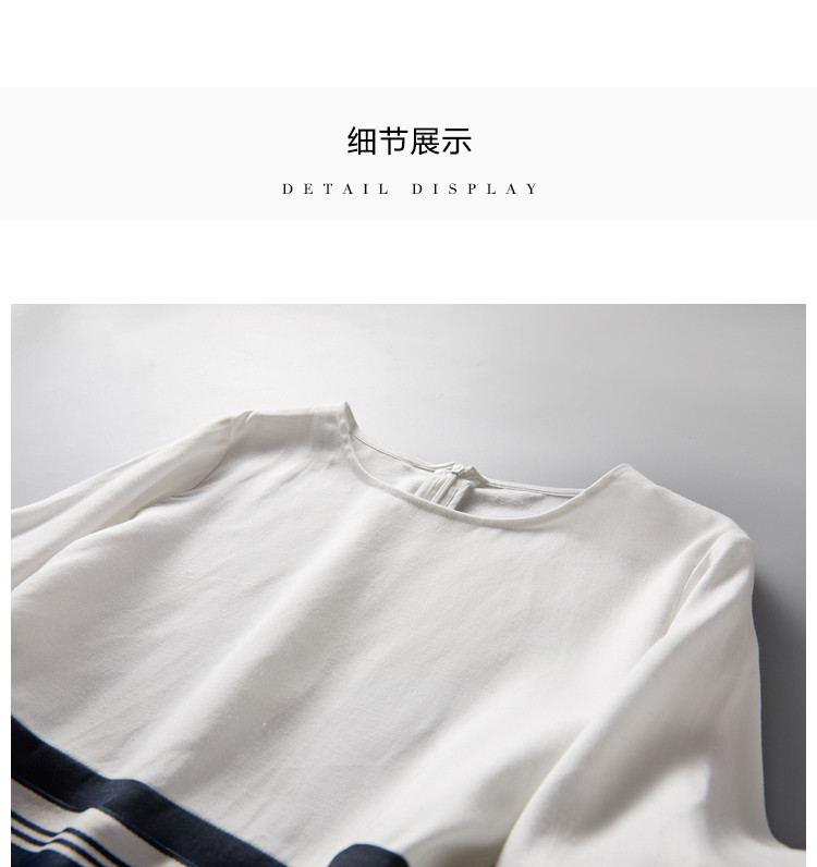 【条纹a字裙】春秋通勤立领宽松长袖连衣裙女中长款 921217
