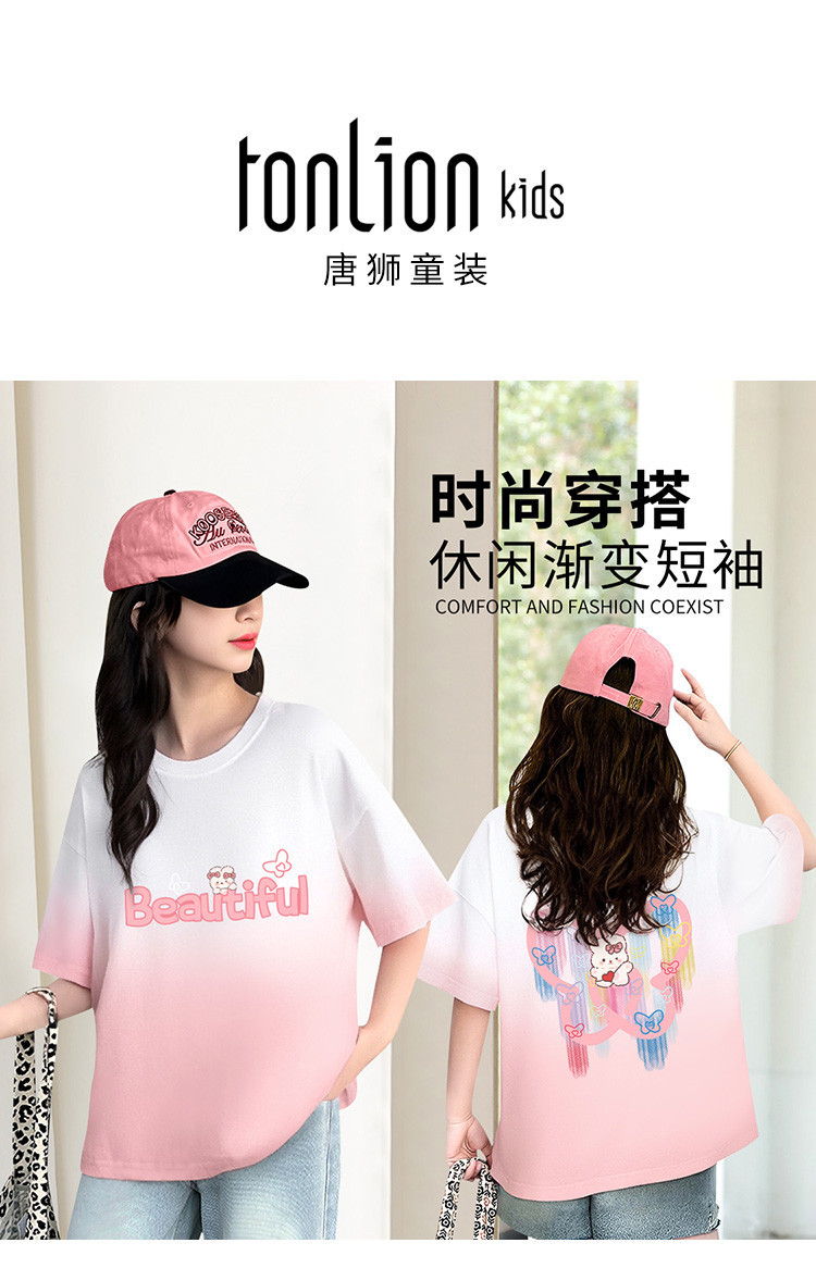 商品名称:女童渐变T恤夏季时尚卡通儿童短袖舒适亲肤中大童装 701135