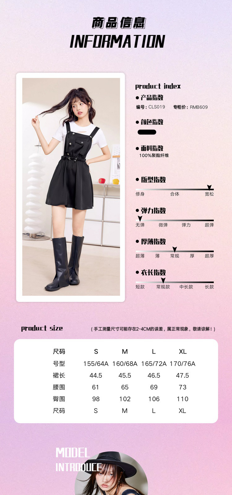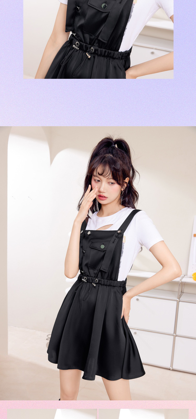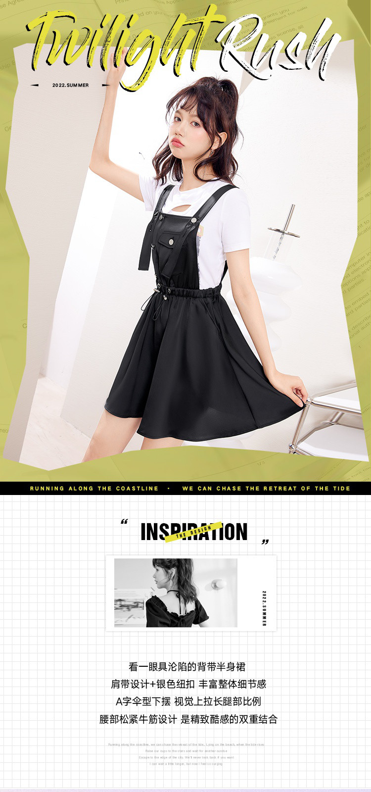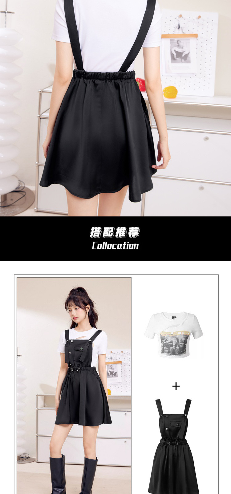 商品名称:夏装学院风黑色半身裙女设计感小众减龄收腰背带裙 198548