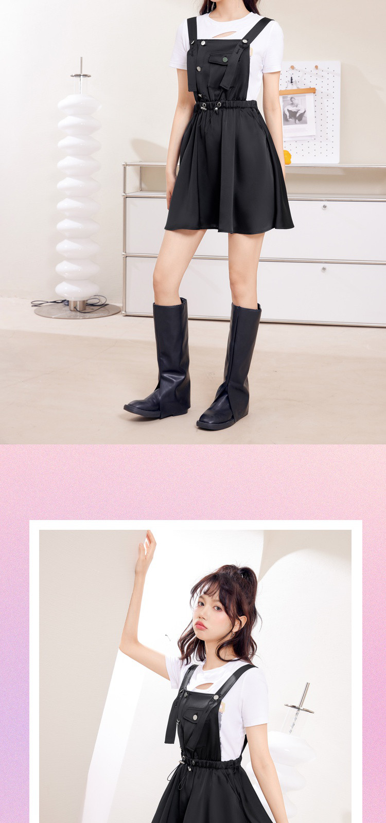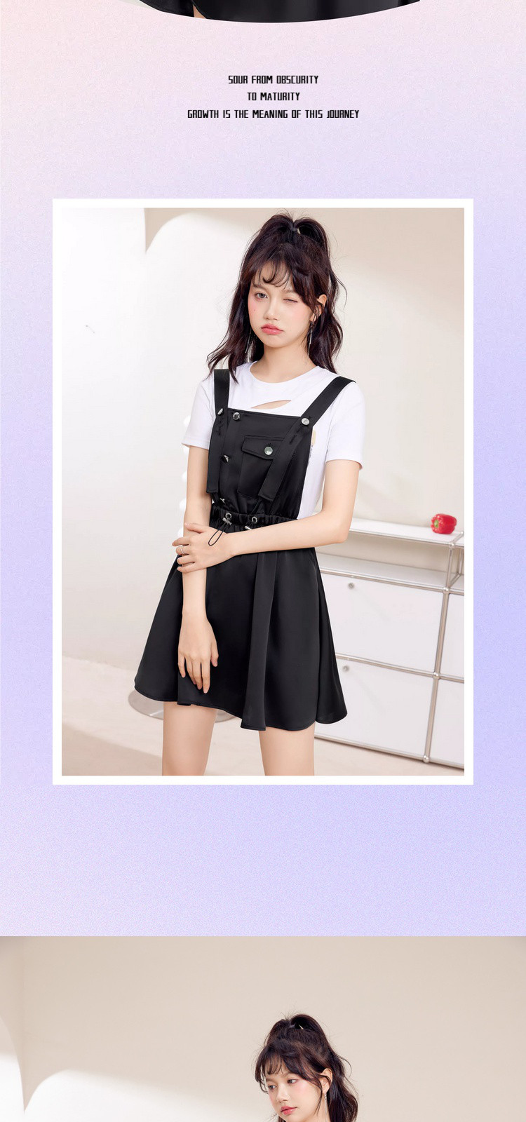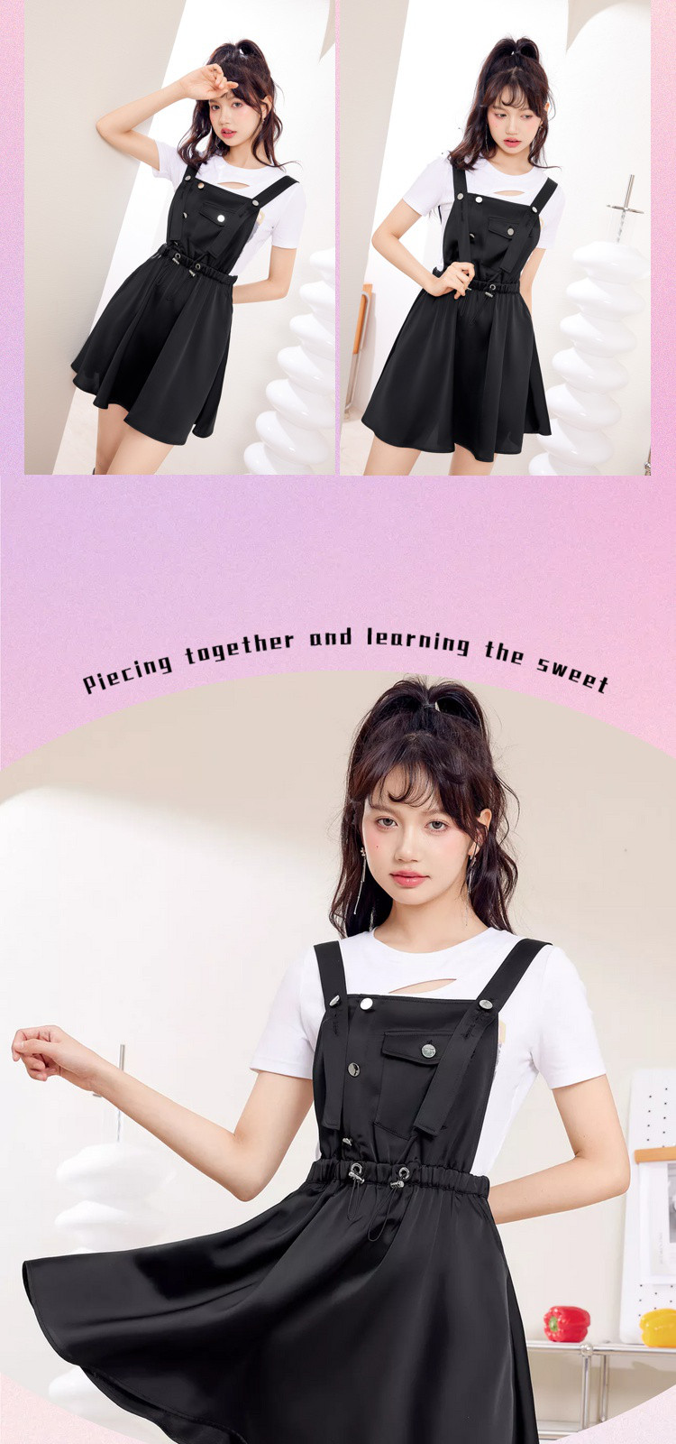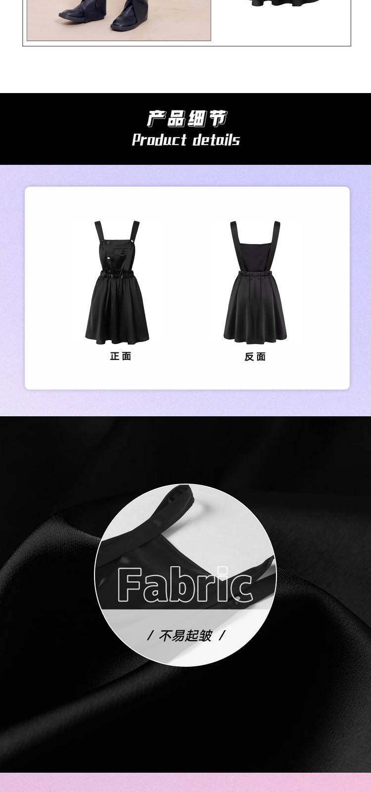 商品名称:夏装学院风黑色半身裙女设计感小众减龄收腰背带裙 198548