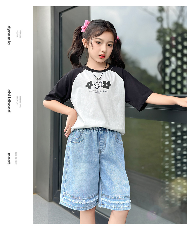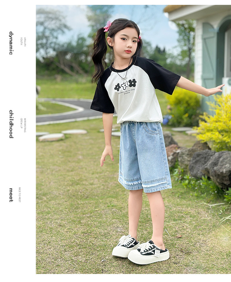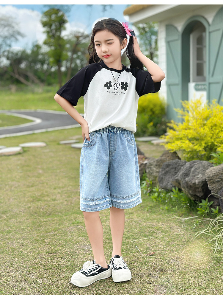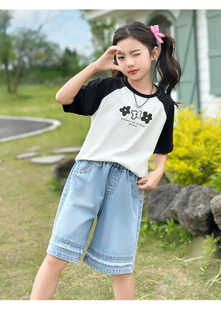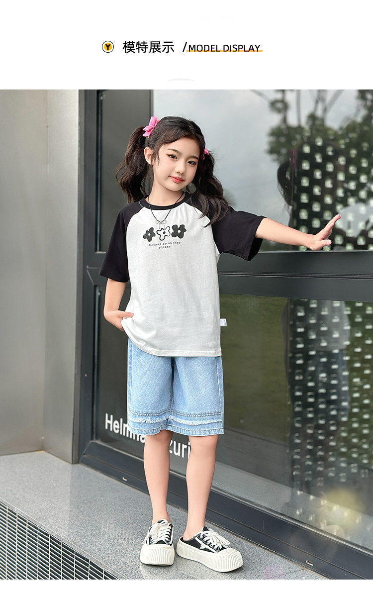 商品名称:女童套装2024夏季洋气中大童儿童薄款透气短袖T恤短裤两件套 370511