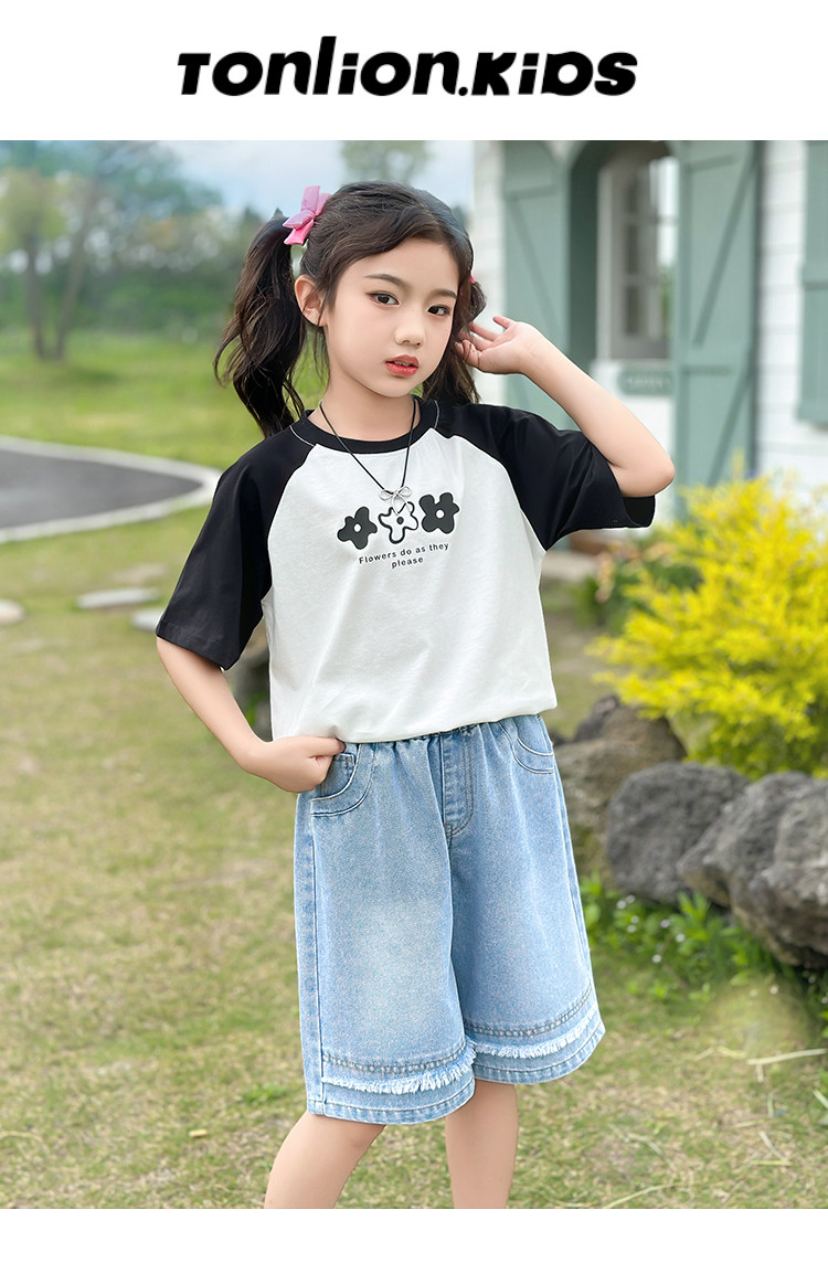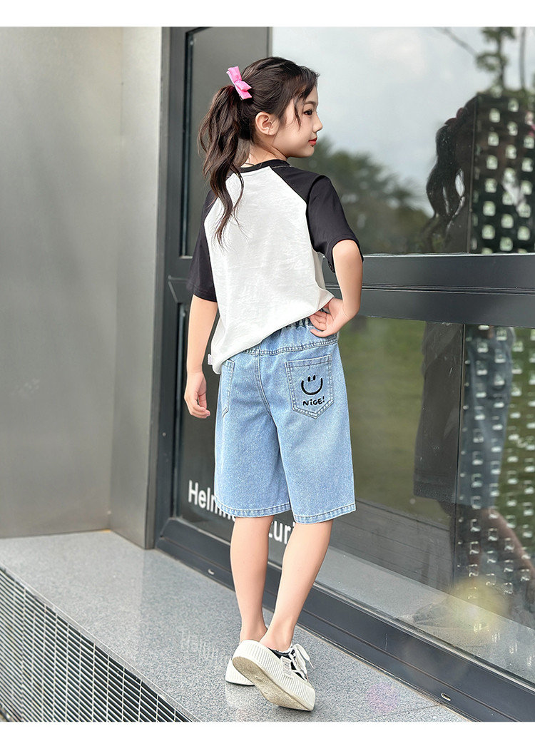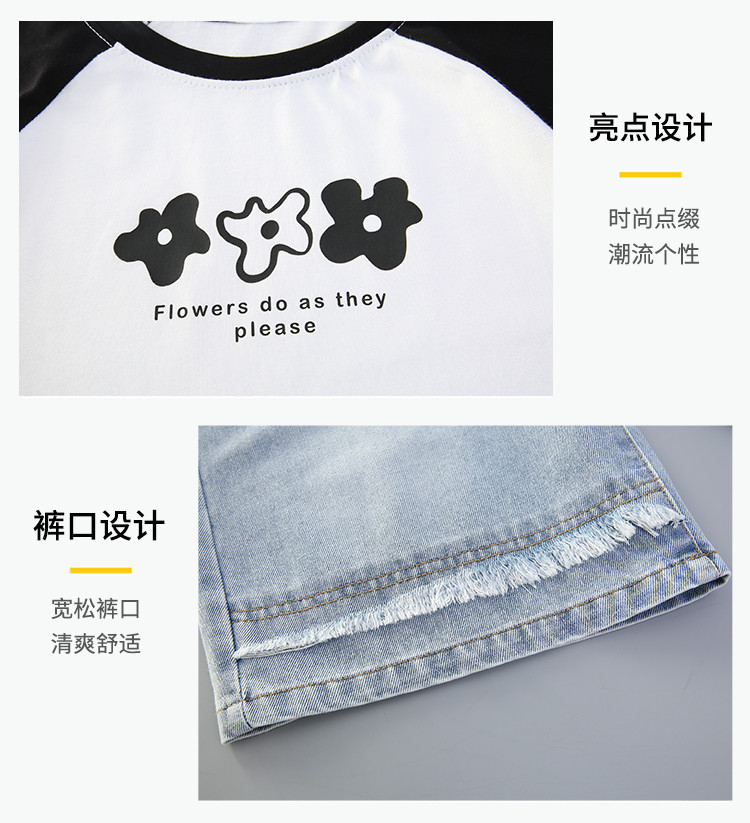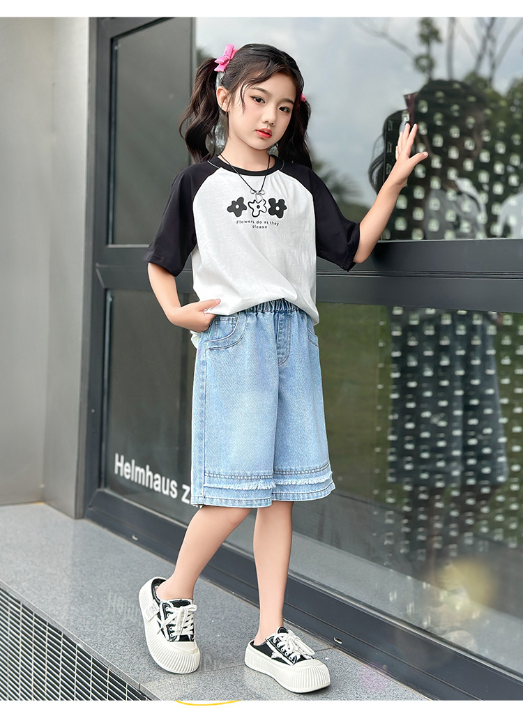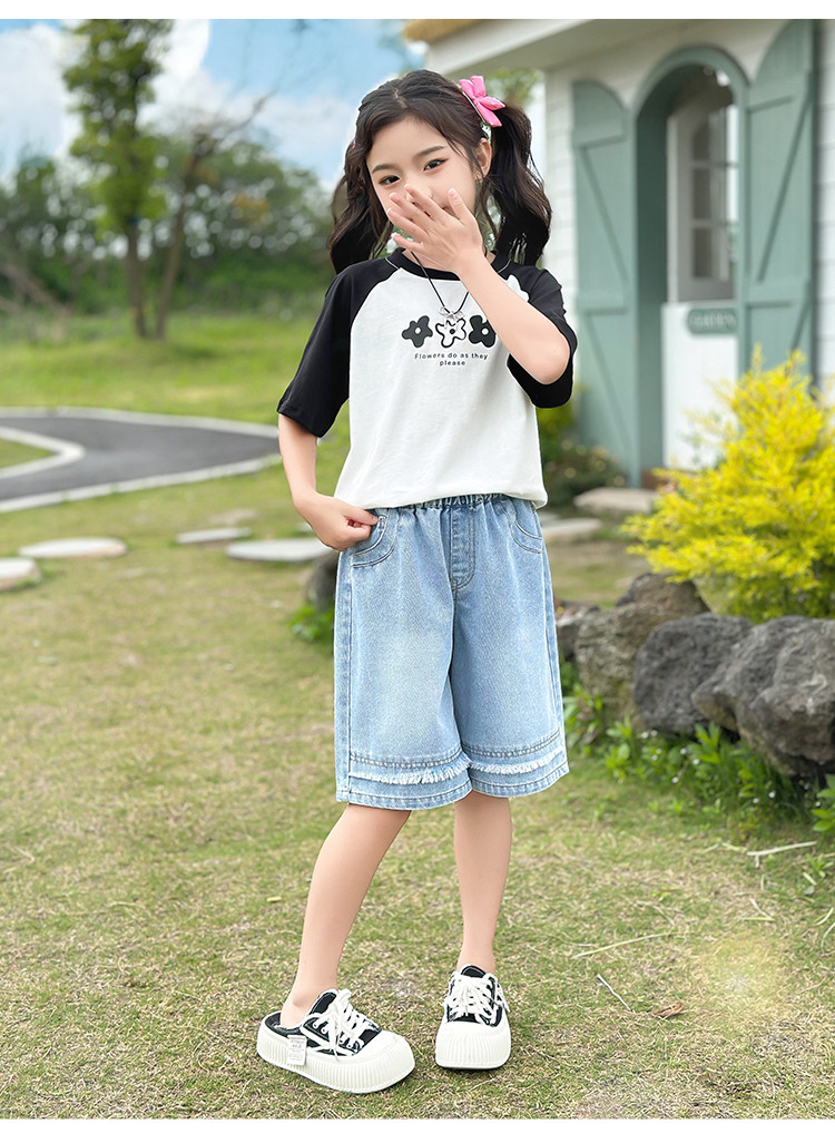 商品名称:女童套装2024夏季洋气中大童儿童薄款透气短袖T恤短裤两件套 370511