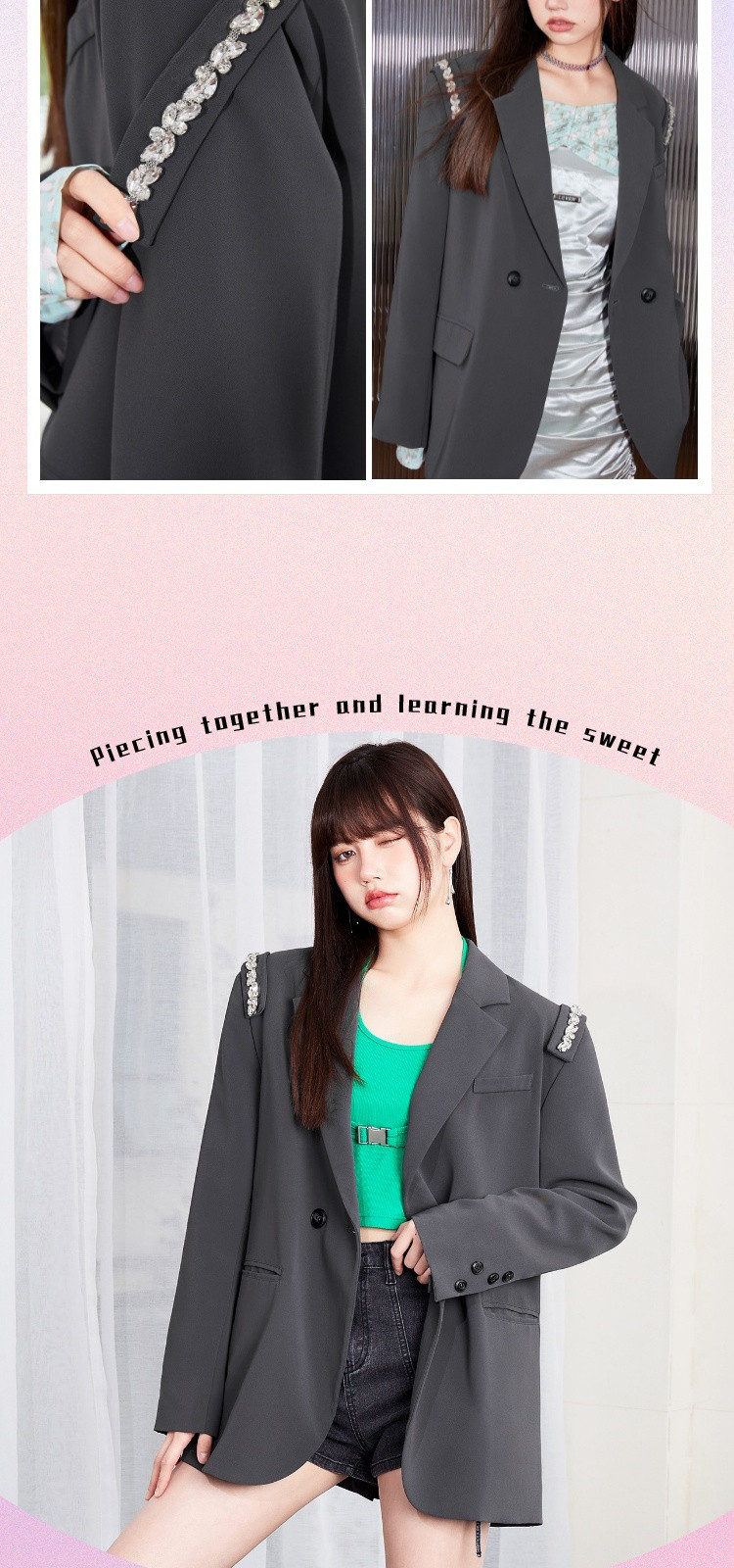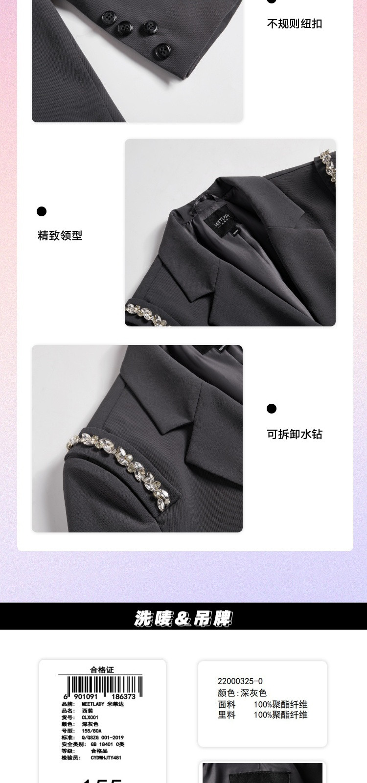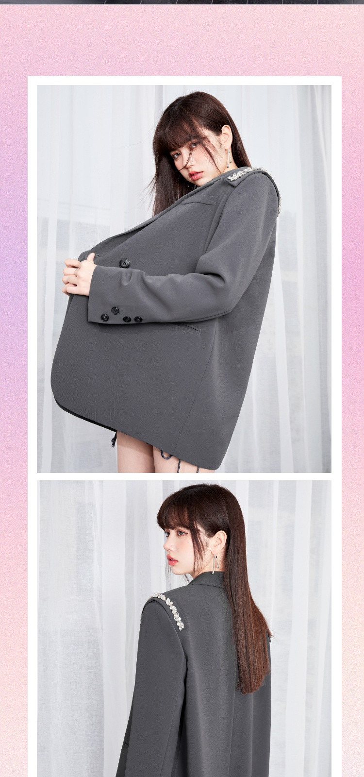 商品名称:【秋季热卖爆】韩版风气质西装外套女可拆卸水钻减龄廓型甜酷上衣 812116