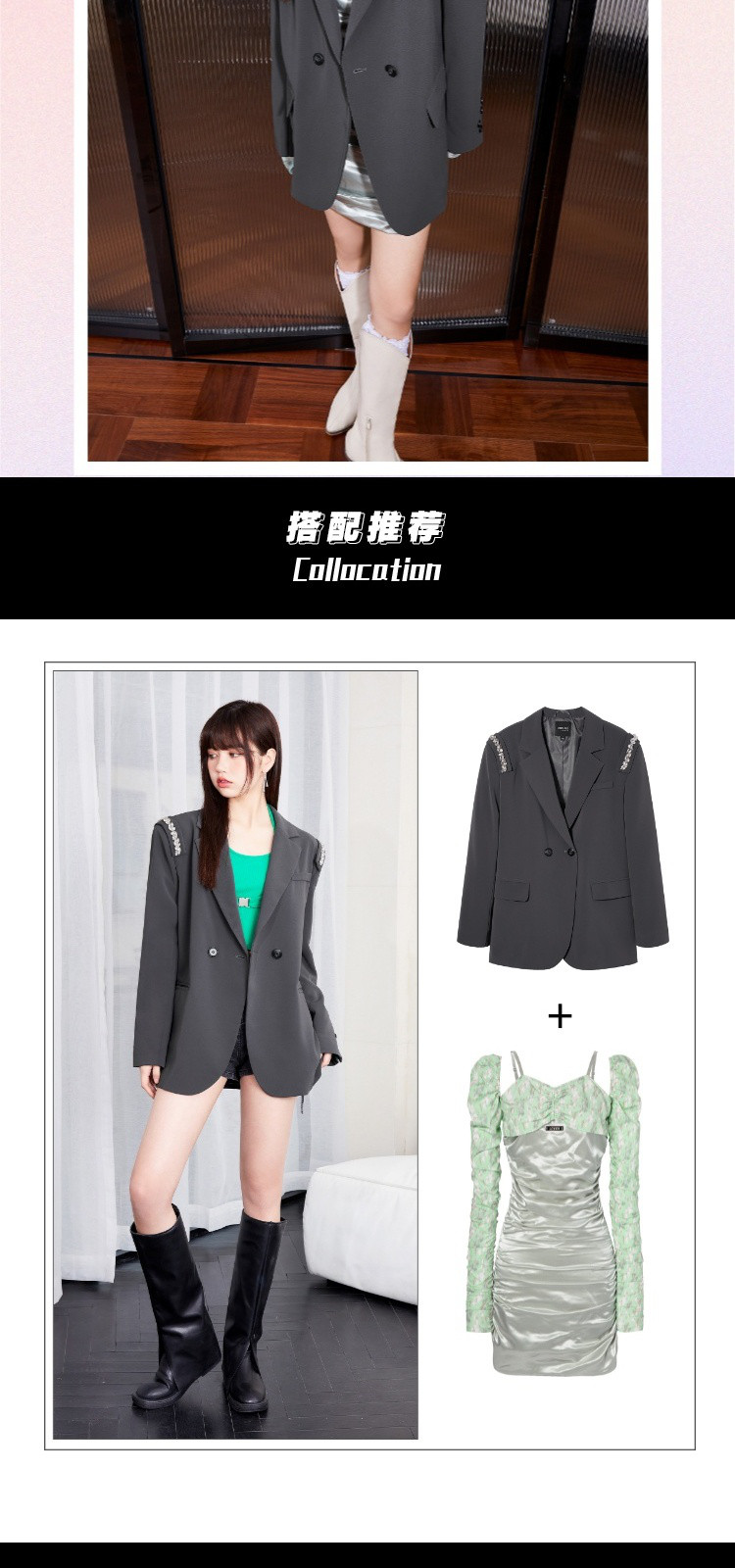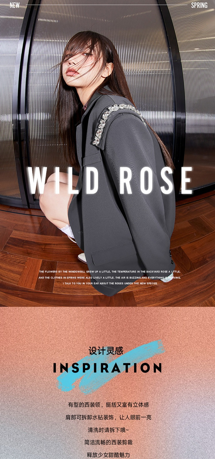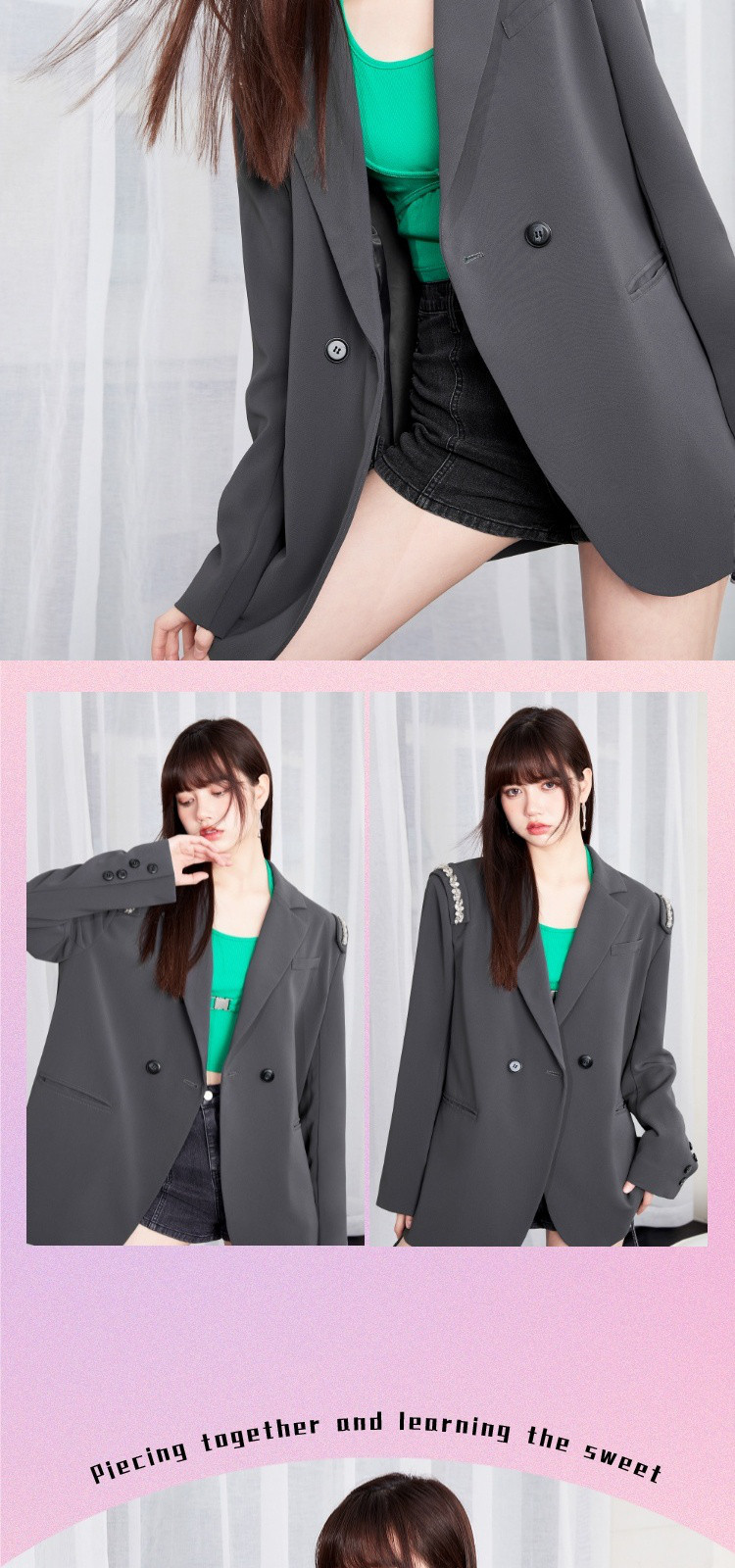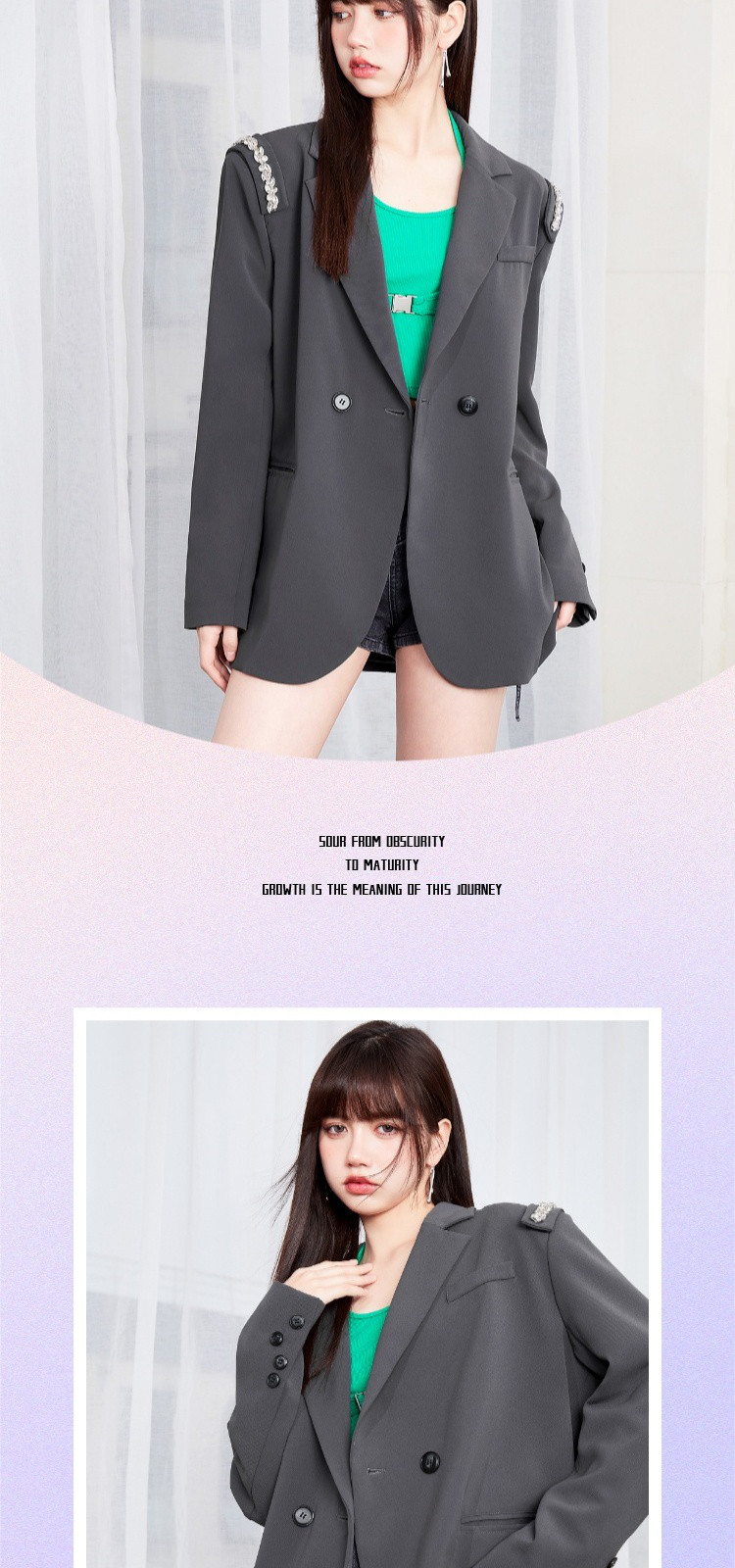商品名称:【秋季热卖爆】韩版风气质西装外套女可拆卸水钻减龄廓型甜酷上衣 812116