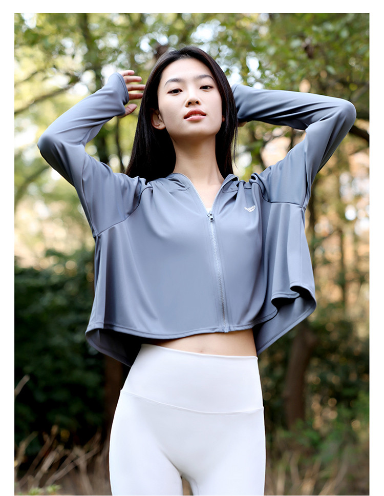 商品名称:防晒衣女防紫外线轻薄透气户外运动短款显瘦大帽檐外套旅行大帽檐 101069