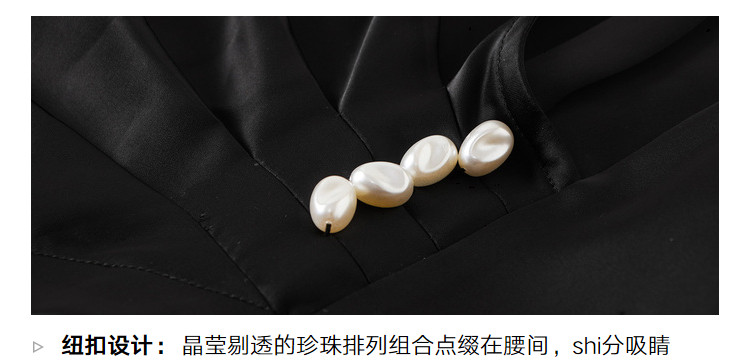 【缎面雪纺衬衫】春秋V领直筒长袖珍珠通勤褶裥衬衣女装上衣 351233