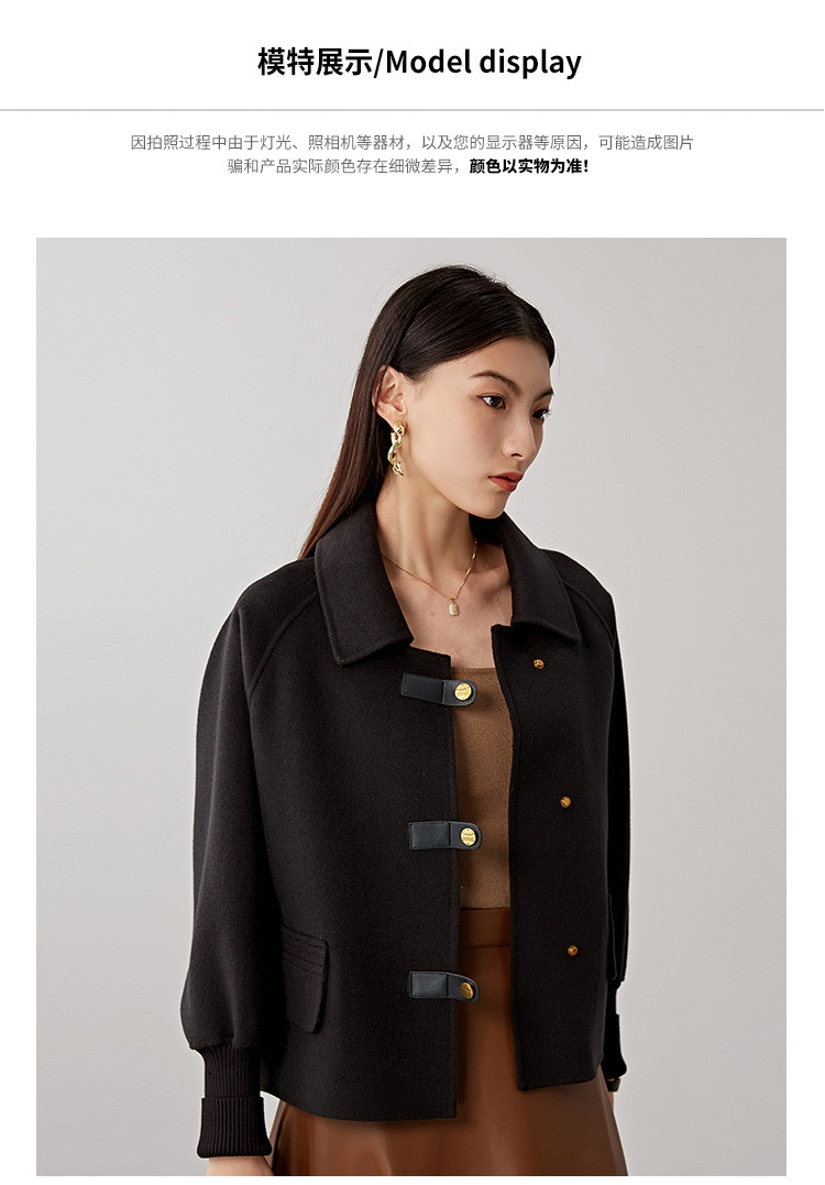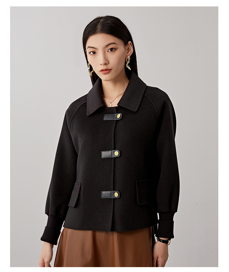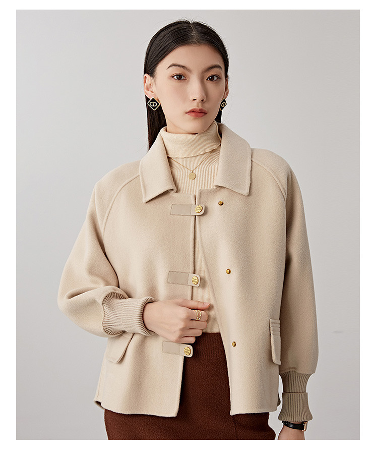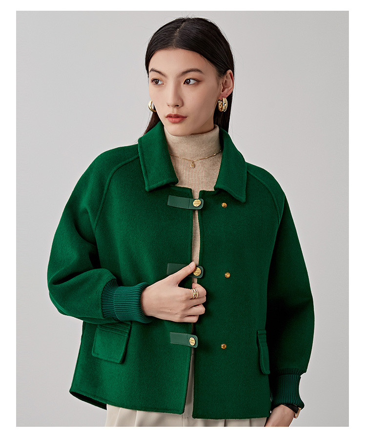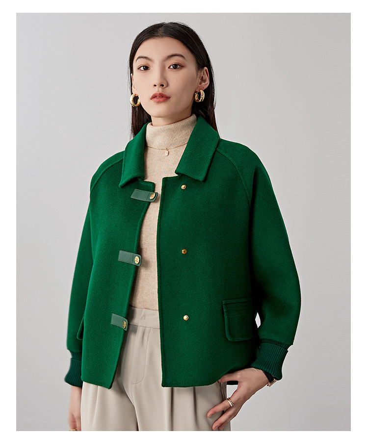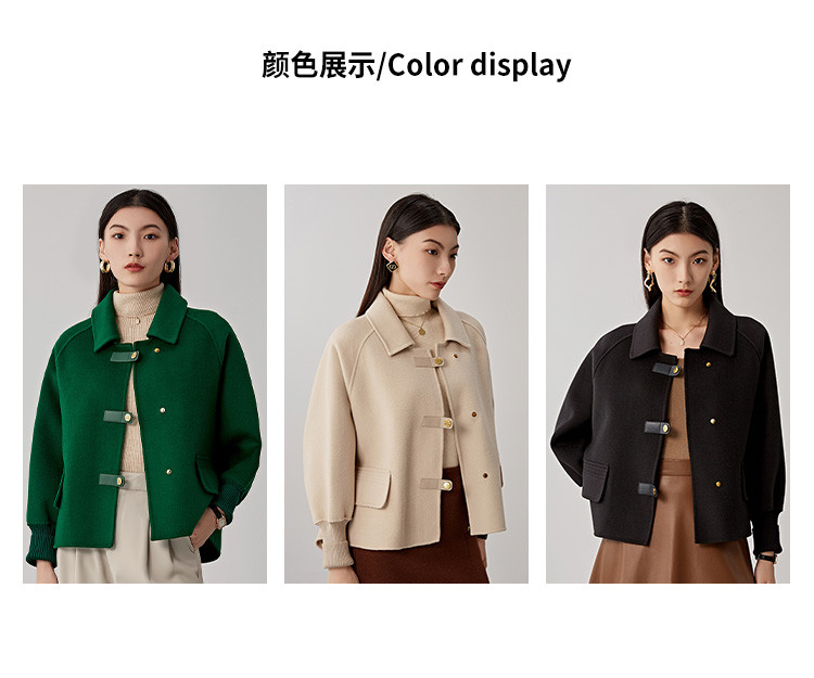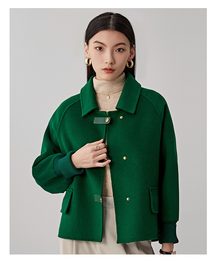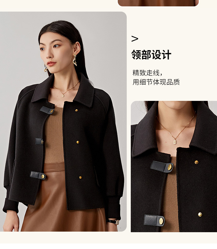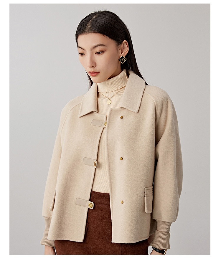 商品名称:春秋小个子羊毛大衣女式100%绵羊毛短款双面呢外套 754655