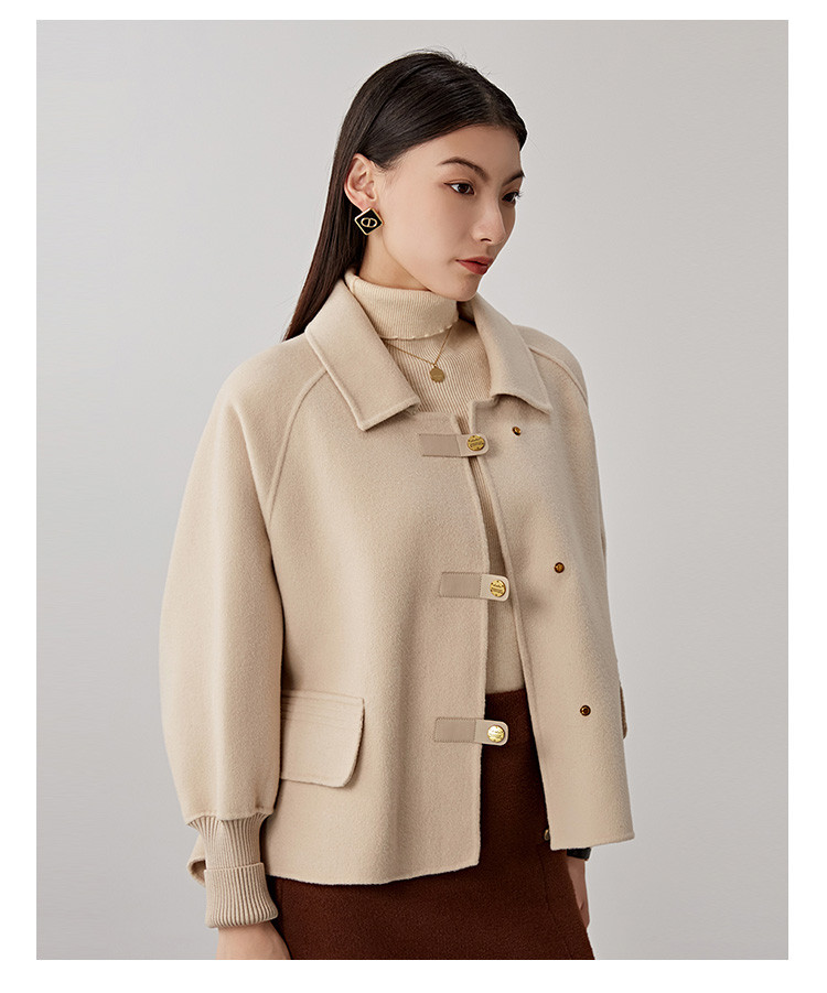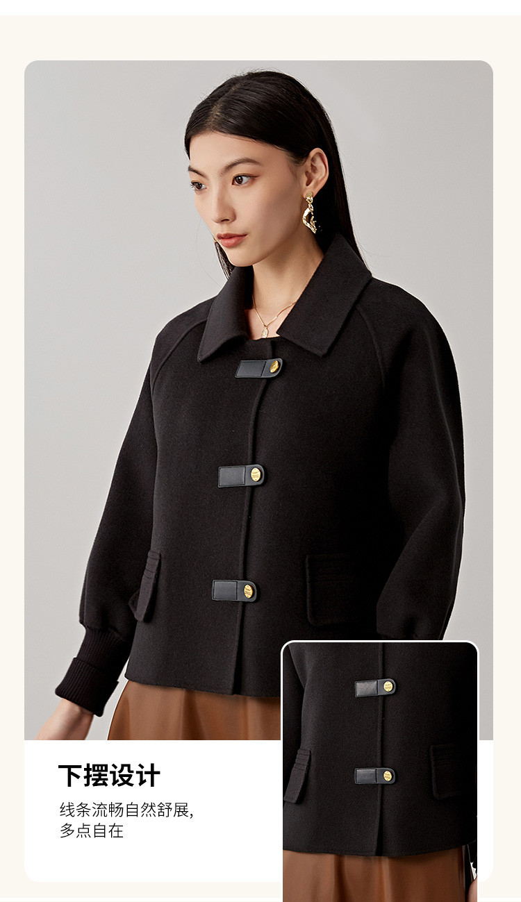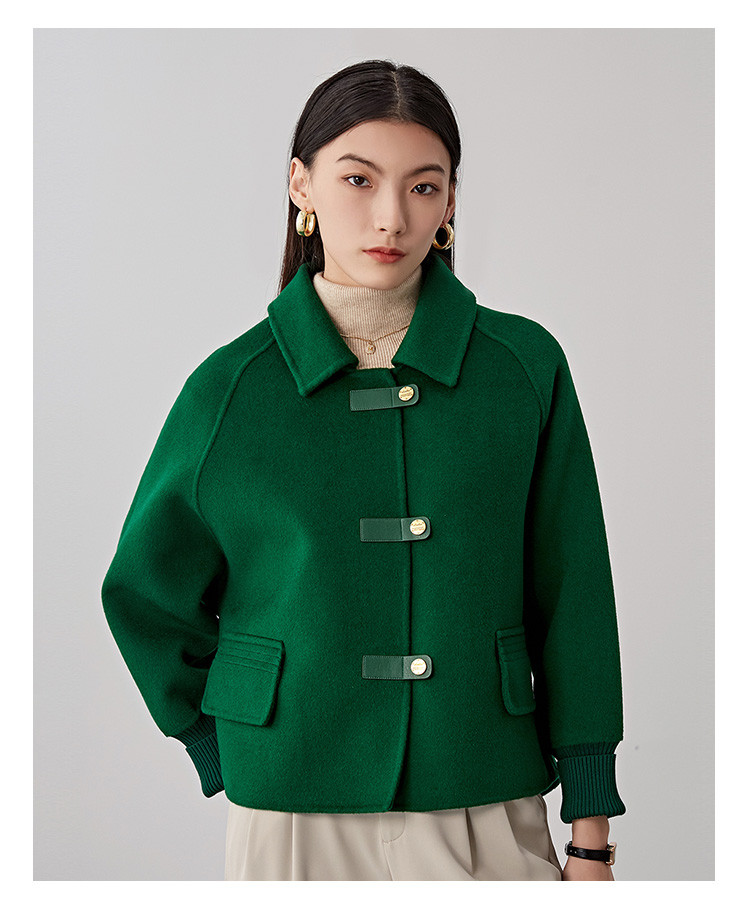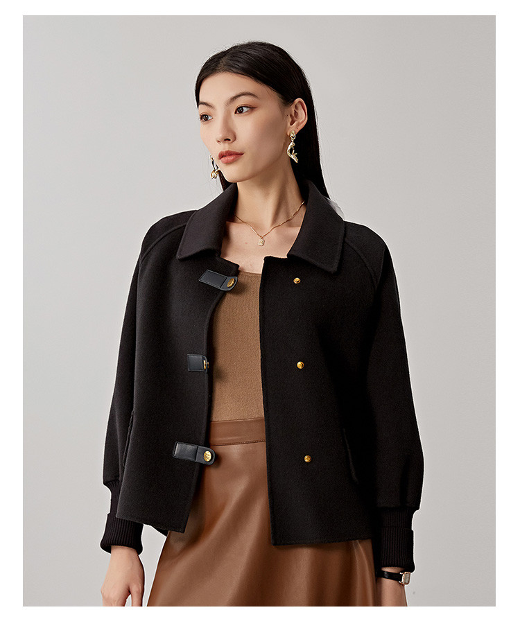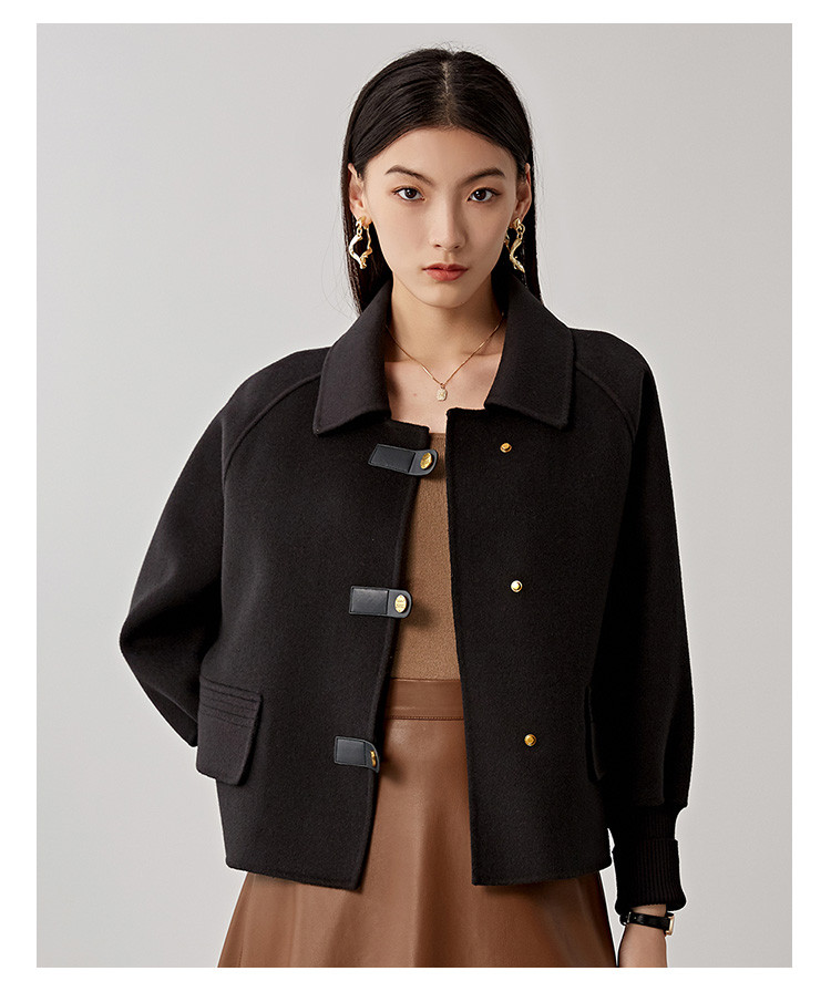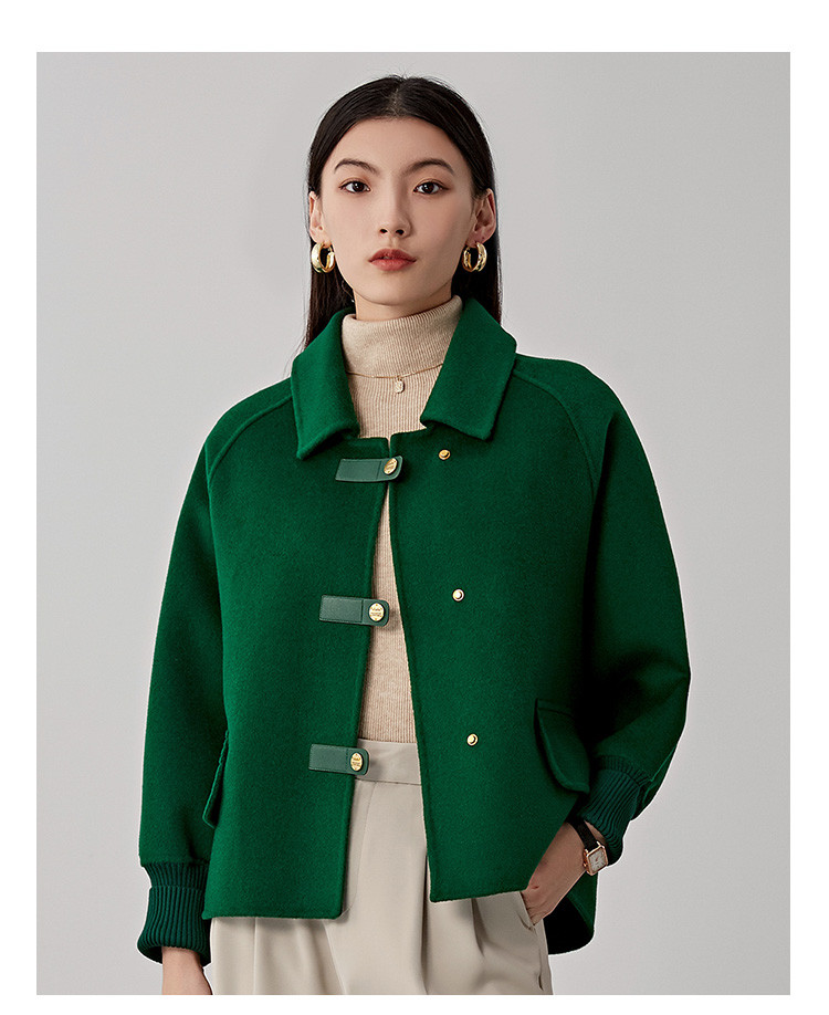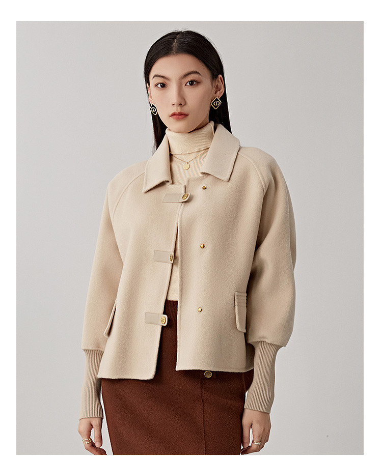 商品名称:春秋小个子羊毛大衣女式100%绵羊毛短款双面呢外套 754655