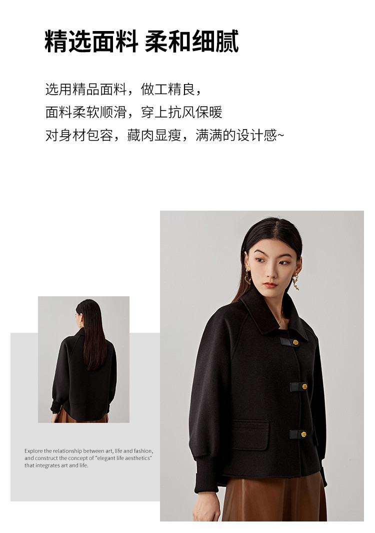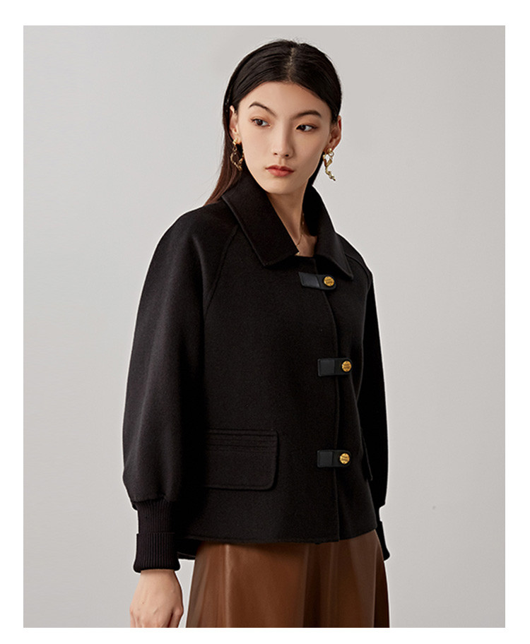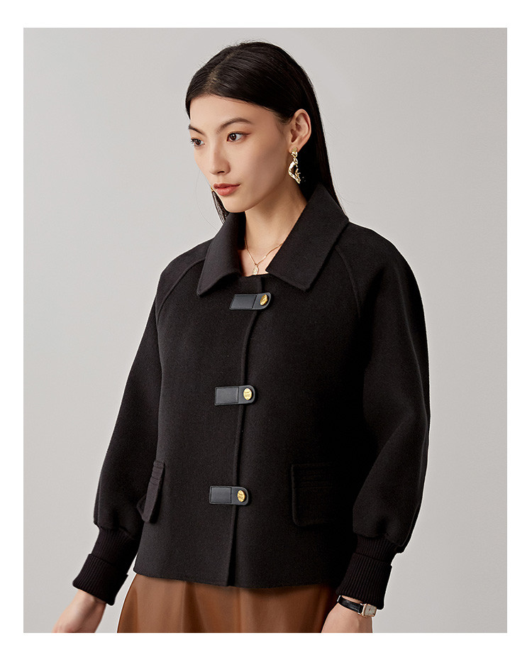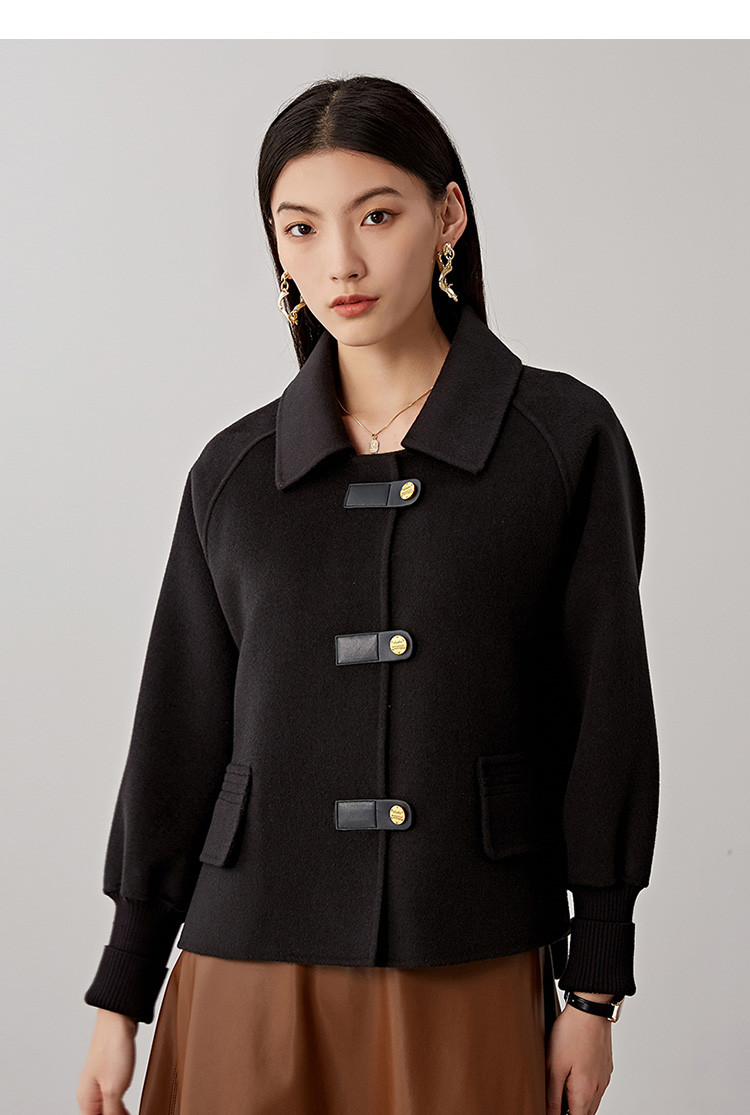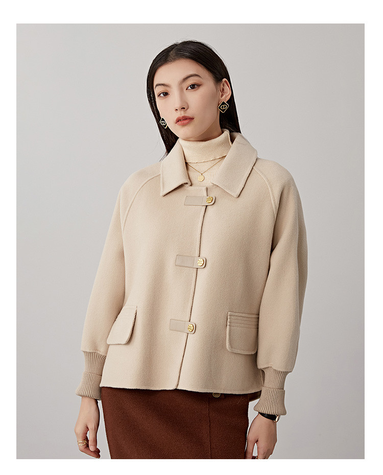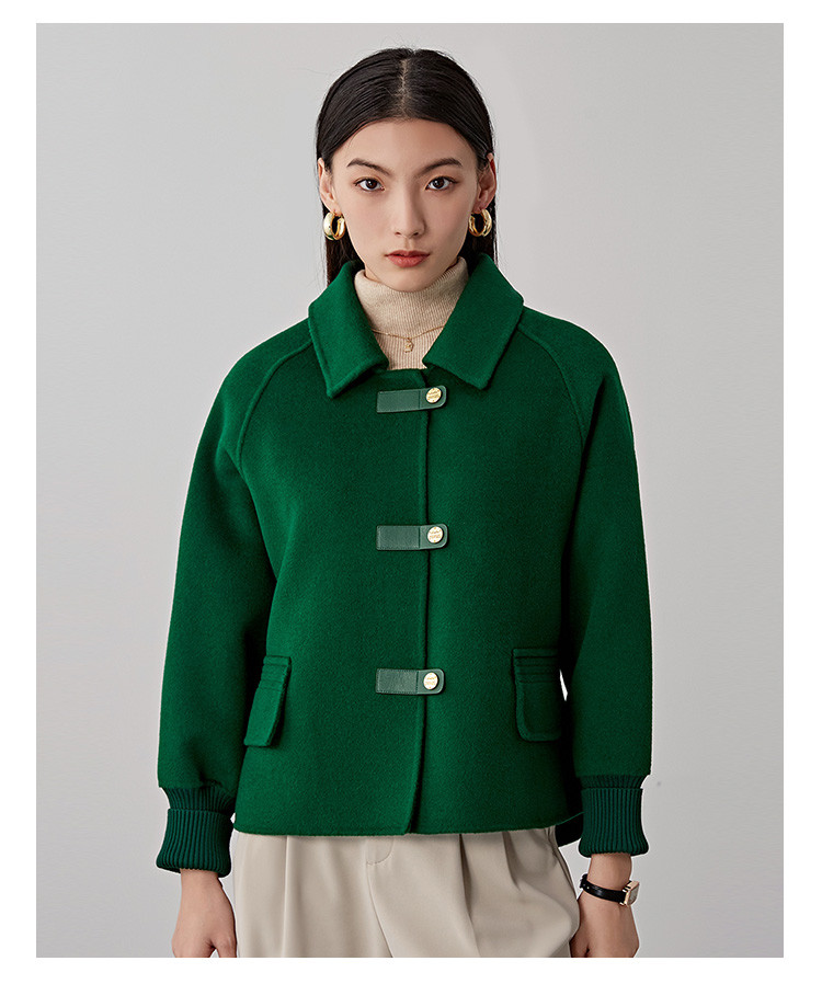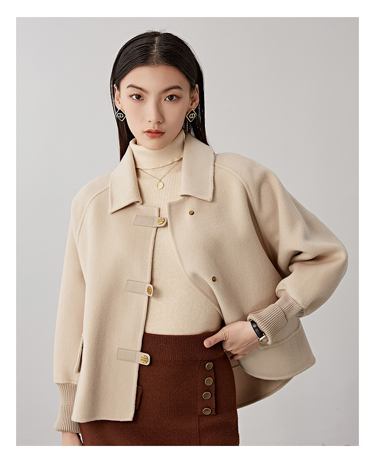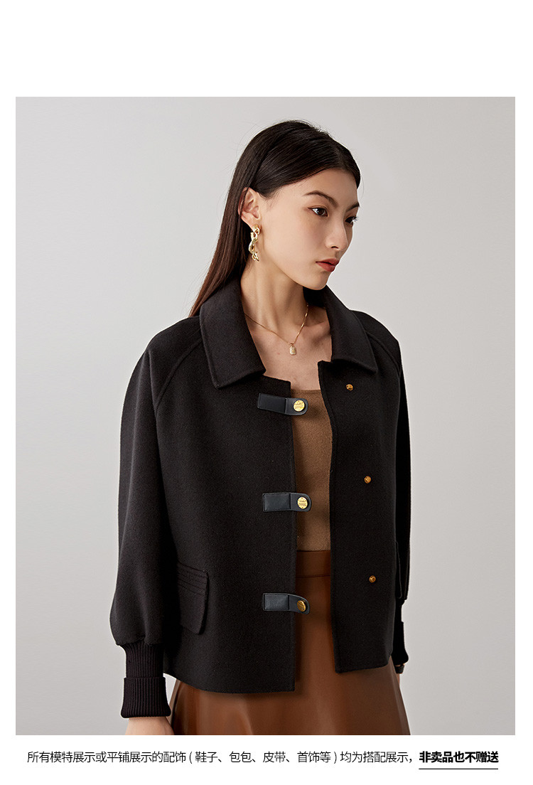 商品名称:春秋小个子羊毛大衣女式100%绵羊毛短款双面呢外套 754655
