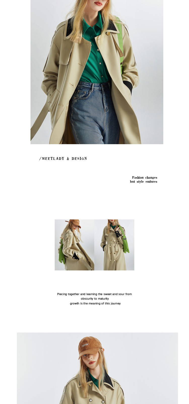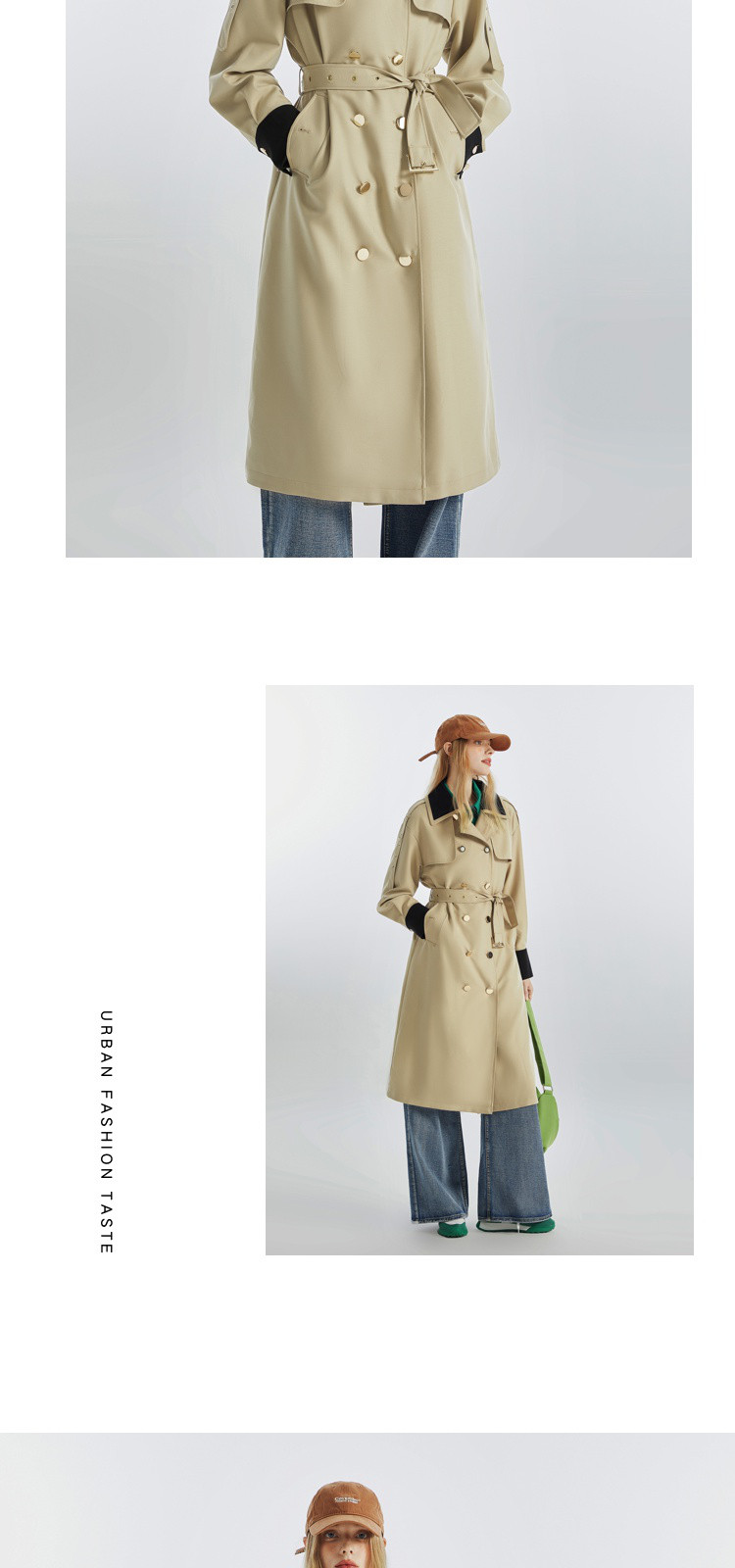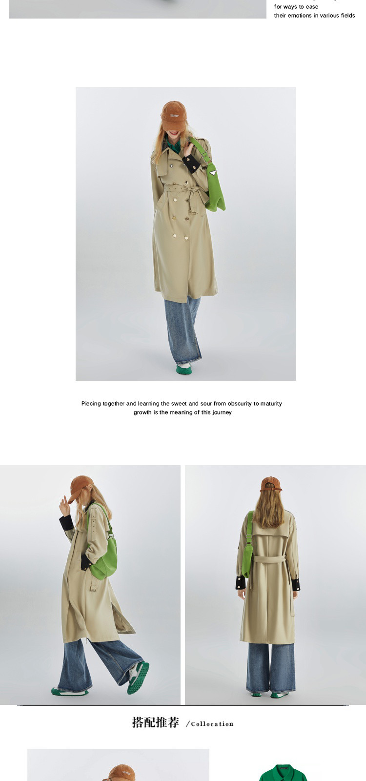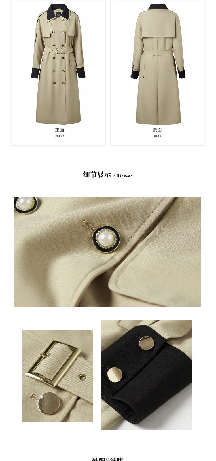 商品名称:【秋装热卖】撞色领口复古韩系腰带风衣外套女高级感小众长款上衣 347156