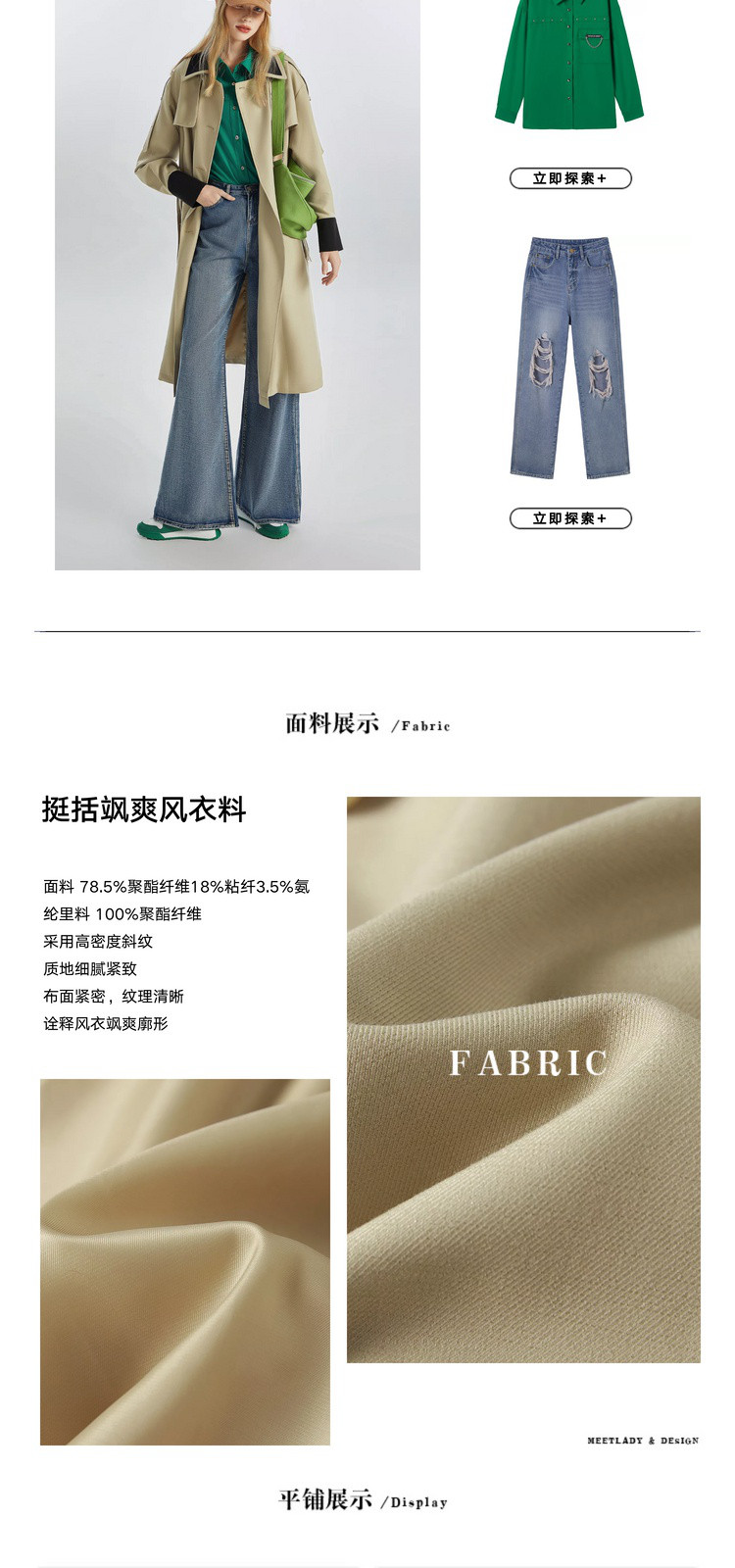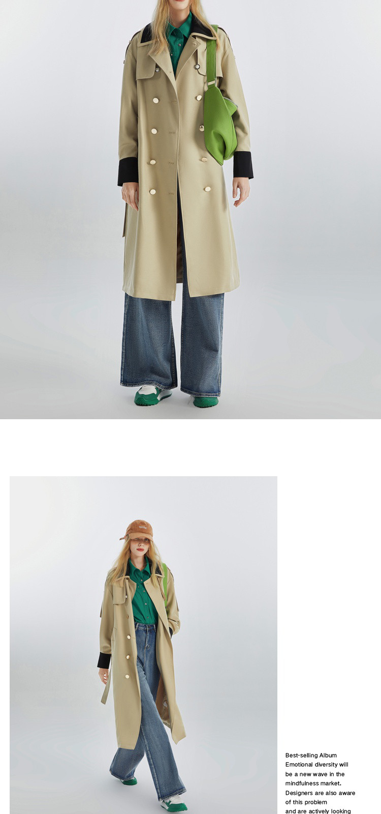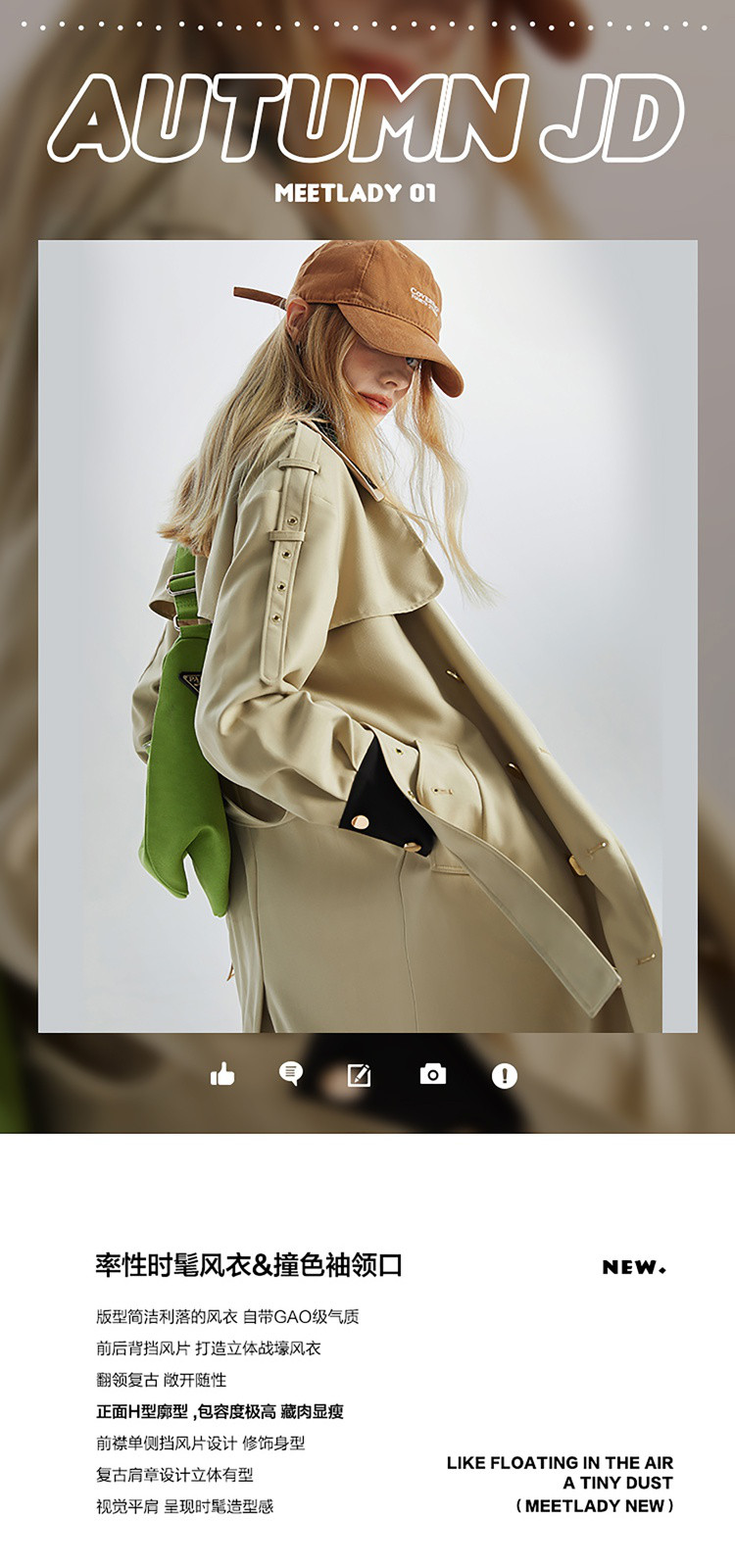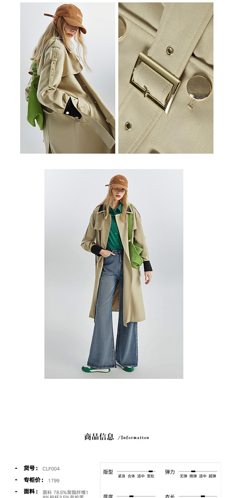 商品名称:【秋装热卖】撞色领口复古韩系腰带风衣外套女高级感小众长款上衣 347156
