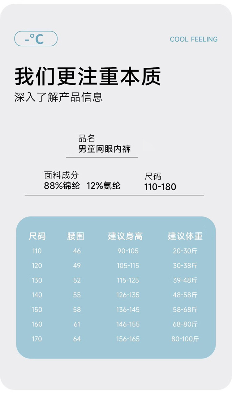 商品名称:【3条装】男童内裤秋季薄款舒适透气学生宝宝四角儿童内裤 373327