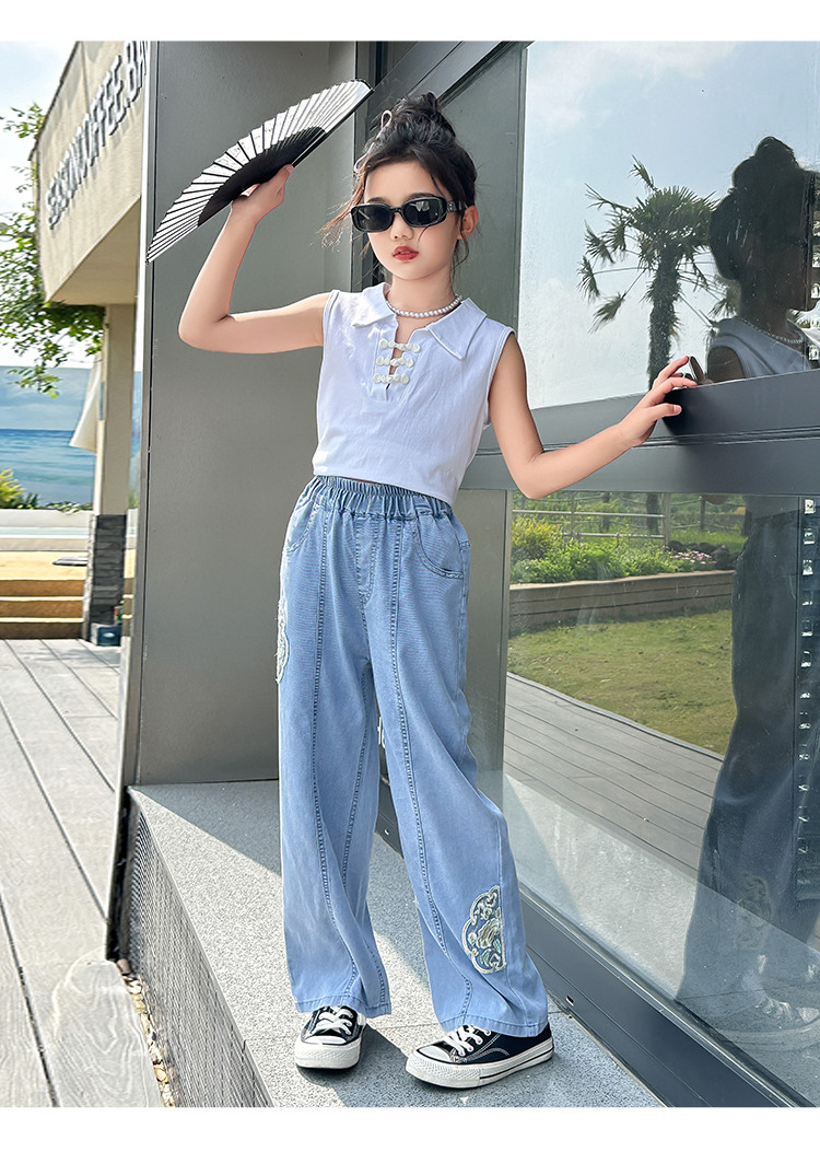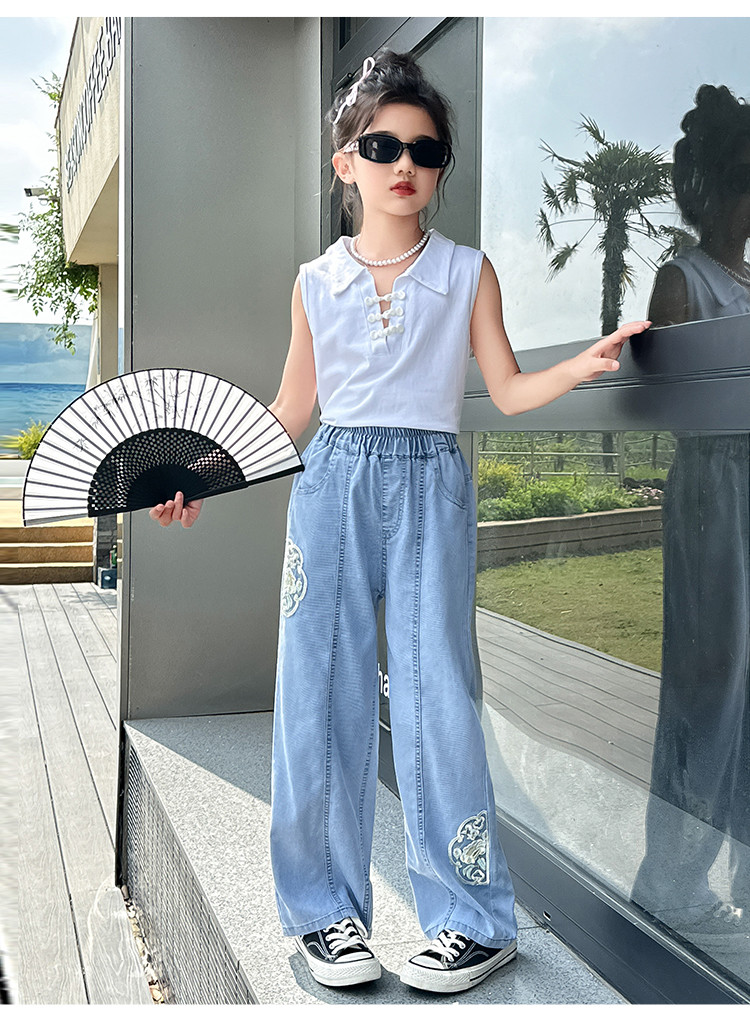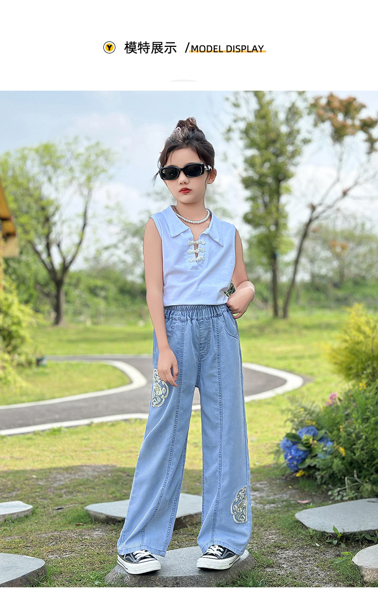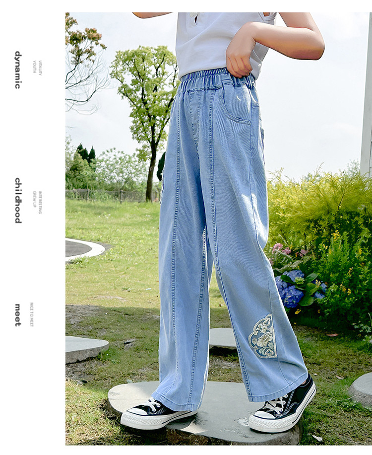 商品名称:女童裤子牛仔长裤初秋款2024中大童儿童洋气宽松水洗牛仔裤子 801999